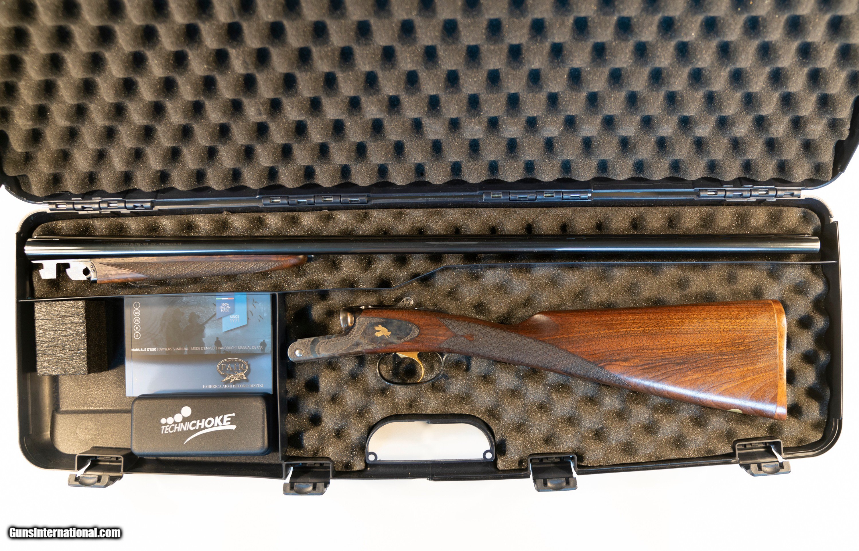 Description: This is Rizzini's Highest grade F.A.I.R (Fabbrica Armi Isidoro Rizzini) side by side - the Prestige Tartaruga Gold with a hard to find 30 inch barrel. Nice wood and engraving and color case hardened. 5 chokes - Cyl, IC, Mod, Imp Mod, and Full. Single trigger-Auto ejectors. Handles & points like a wand and as light as a walking stick. Around 6 pounds. Less than 200 rounds through the barrel on the clays course and 20 or 30 in the woods. Excellent condition. SOLD Shotgun Gauge: 28 Gauge |