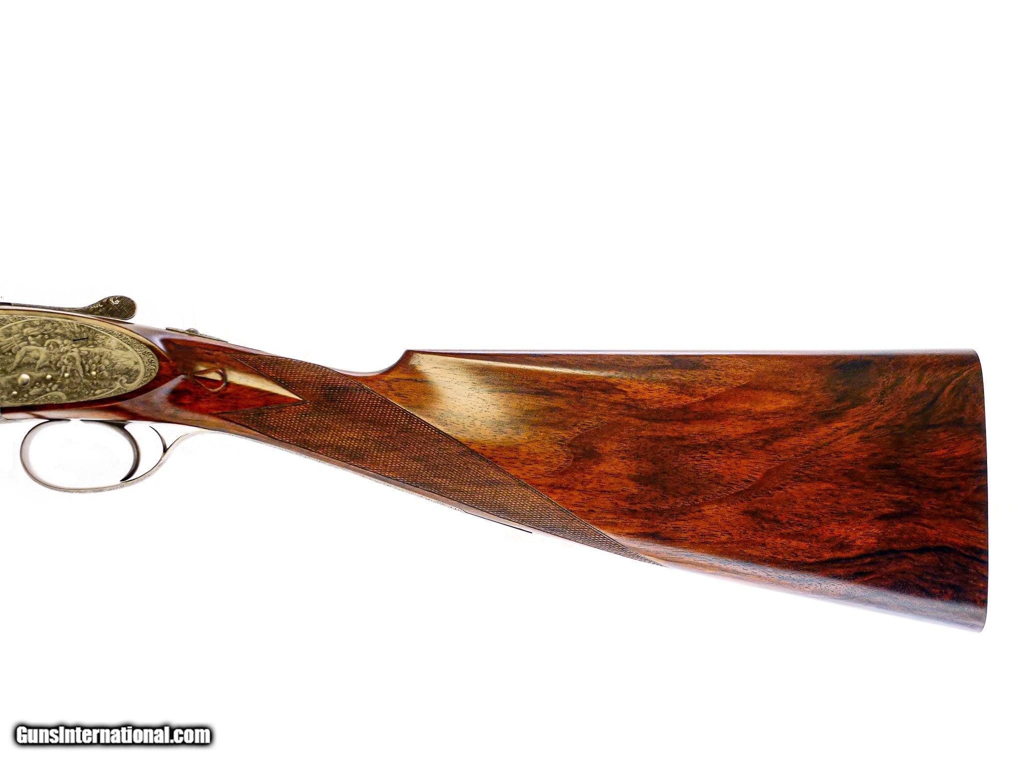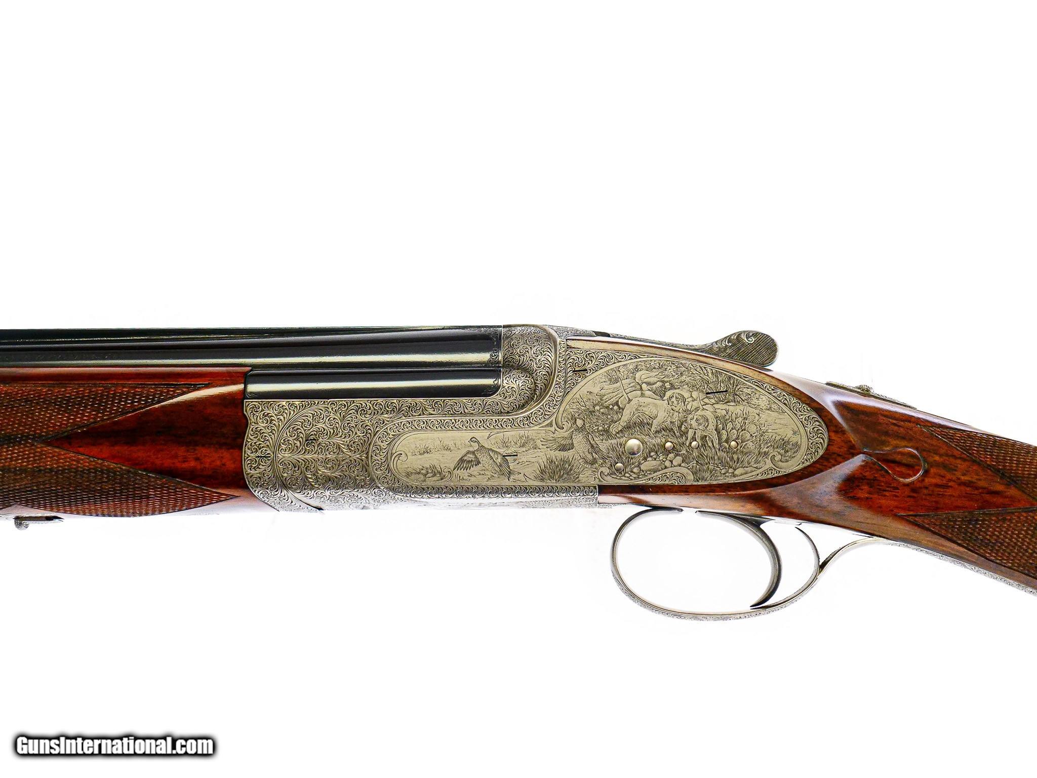 Description: A&S Famars - O/U, 28ga. 26" Barrels Choked M/F. Nicely figured straight grip stock, checkered butt, single trigger, automatic ejectors, ventilated rib, slender field style forend, magnificent full coverage game scene engraving featuring pointers and quail, perfect 100% condition throughout, gun appears unfired, finest Italian workmanship, includes leather factory case and accessories. Inv: 20593 5 lbs. 13 oz. 14 3/8" x 1 ¼" x 2" $32,500.00 CALL 860-225-6581 FOR FURTHER INFORMATION ABOUT THIS GUN & THE INSPECTION PERIOD. SOLD |
