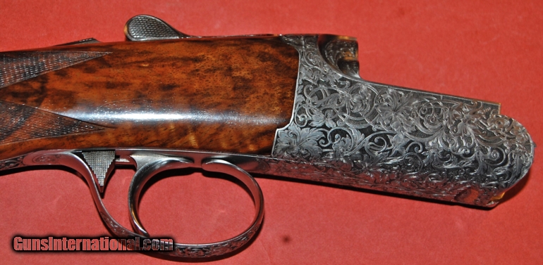 Description: A&S Famars Excaliber round action 28ga.Outstanding floral engraving by Ghidini.29"solid rib barrels with factory installed Briley chokes.New and unfired in the makers case.Super highly figured wood.143/4"LOP over a checkered butt.A super gun at half of the original retail price. SOLD |
