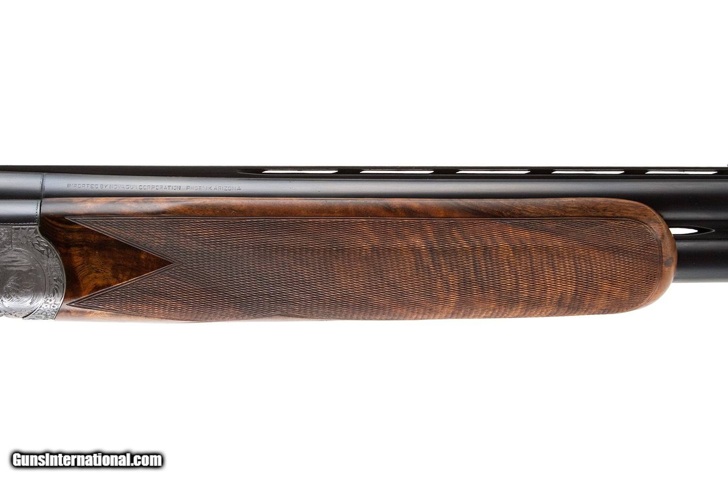 Description: THIS SOCK ON THIS GUN IS BROKEN THROUGH THE WRIST GRECO ENGRAVED 28 1/2" BARRELS WITH BRILEY SCREW CHOKES THE BRILEY SUB GAUGE TUBES HAVE SCREW CHOKES SINGLE TRIGGER EJECTORS FIELD FOREARM PISTOL GRIP ALUMINUM NASCO CASE 8LBS 7 OZ SOLD |