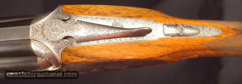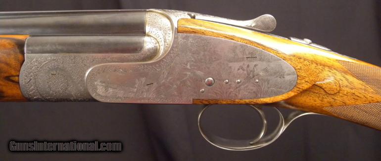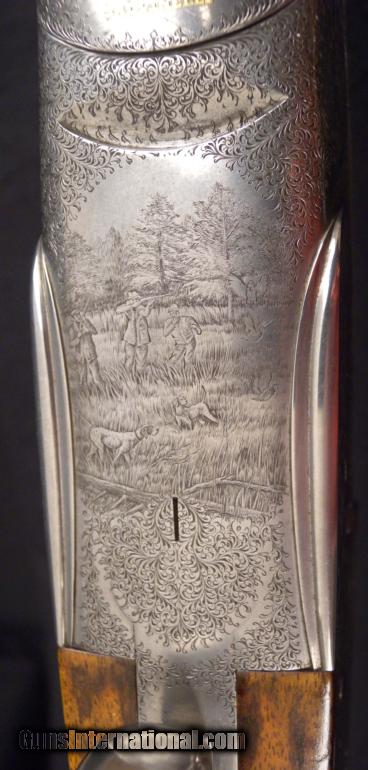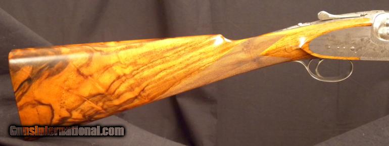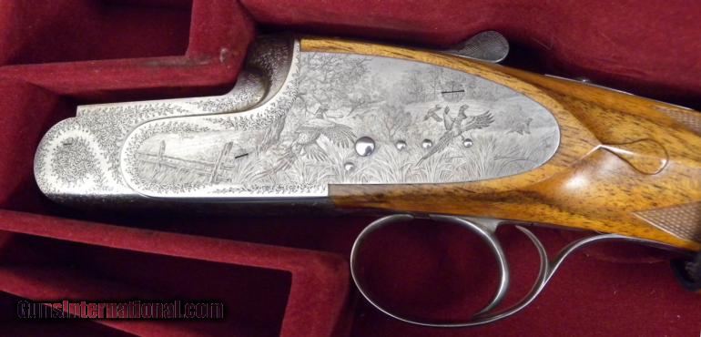 Firearm Specifications: This Shotgun has 27.5" Chopperlump barrels. The Engraving is Rose & Scroll engraved by Inglese Goldanning. There is a Quail Game Scene on one Sidelock and a Pheasant Game Scene o the other side lock. There is also a scene with Men Quail Hunting on the Bottom of the receiver. The Wood is a Straight Style Stock with Exhibition Turkish Walnut Quality 3. Complete with a Solid middle Rib, Ventilated Top Rib, Engraved Long Tail, Manual Safety, and a Nizzoli Case. LOP-15, DAC- 1 3/8", DAH- 2" 5/16", Weight- 6lbs 9oz.