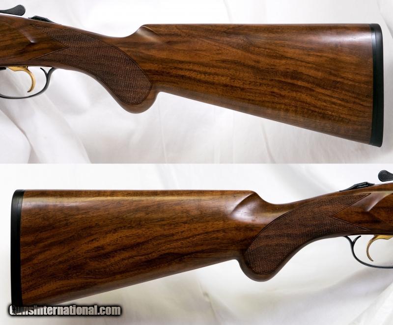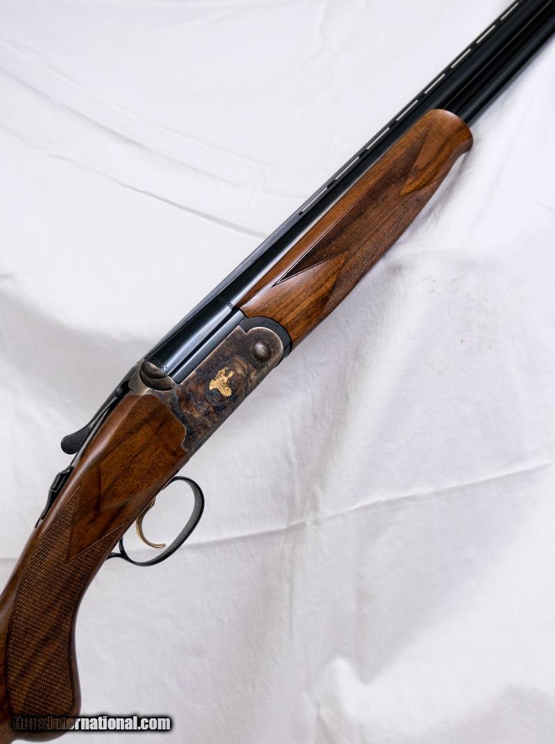 Description: FAUSTI ALBION, Boxlock 12 gauge O/U, 2 3/4" Ch., 28" bbls., Ventilated rib, Five flush choke tubes: IC,LM,M,IM,F, Single selective trigger, Nicely figured select Walnut round knob semi pistol grip stock w/ maker's pad, Schnabel forearm, DC: 1 5/16", DH: 2", Cast at heel: 1/4" OFF, L.O.P.: 14 1/4", Weight: 7 lb. 3 oz., Condition: Very good / Excellent w/ maker's case, Made in Italy circa 2007, Serial #: B41629 (C7118) FIELDSPORT $1195 To see & enjoy the entire inventory of fine shotguns, rifles and handguns, In the FIELDSPORT Gun Room, we invite you to visit us at FIELDSPORTLTD SOLD Manufacturer: Fausti Model: Albion Serial Number: B41629 Chambers: 2 3/4" & 3 Ejectors: Auto ejectors Condition: Very good / Excellent Barrels: 28 Barrel Type: O/U Action: Boxlock Triggers: Single selective trigger Gauge Info: 12 Stock: Nicely figured Walnut round knob semi pistol grip stock Stock Comb: 1 5/16 Stock Heel: 2 Stock Cast: Cast at heel: 1/4" OFF Fore End: Schnabel forearm Butt Pad: Maker's pad LOP: 14 1/4 Rib: Ventilated Finish: Case colored receiver Weight: 7 lb. 3 oz. Manufacture Date: 2007 Chokes: 5 flush chokes: IC,LM,M,IM,F Engraving: Scroll engraving w/ Gold game bird inlays Case: Maker's case Item Location: Michigan |