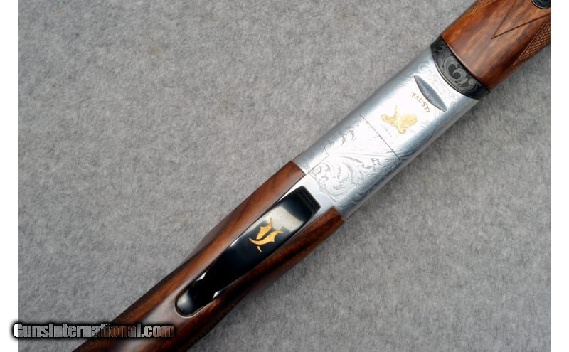 Description: The Fausti over and under shotgun model Caledon is the ultimate result of a refined technical and cosmetic re-elaboration and a long and continues research and designing efforts aimed at creating top quality sporting guns. The gun is an elegant but solid hunting companion featuring prestigious engraving. As with all the Fausti over under shotguns the Caledon features the best locking system with a single oversize block on double lugs, long and soft connection cones for recoil damping, selected walnut woods with ergonomic design, internally-chromed bore and chambers. A Caledon Youth version is also available. Firearm is in Excellent condition and comes with Factory Case and 5 Chokes. 12 Gauge SOLD Metal Condition: Very Good Wood Condition: Walnut Bore Condition: Bright and Shiny Barrels: 28 Triggers: Factory Stock Dimensions: "LOP: 14 1/2"", DTC: 1 1/4"" and DTH: 2 1/4"". Fore End: Checkered Walnut Weight: 7.75 LBS. Sights: Front Metal Bead Item Location: League City, TX |