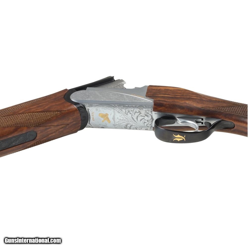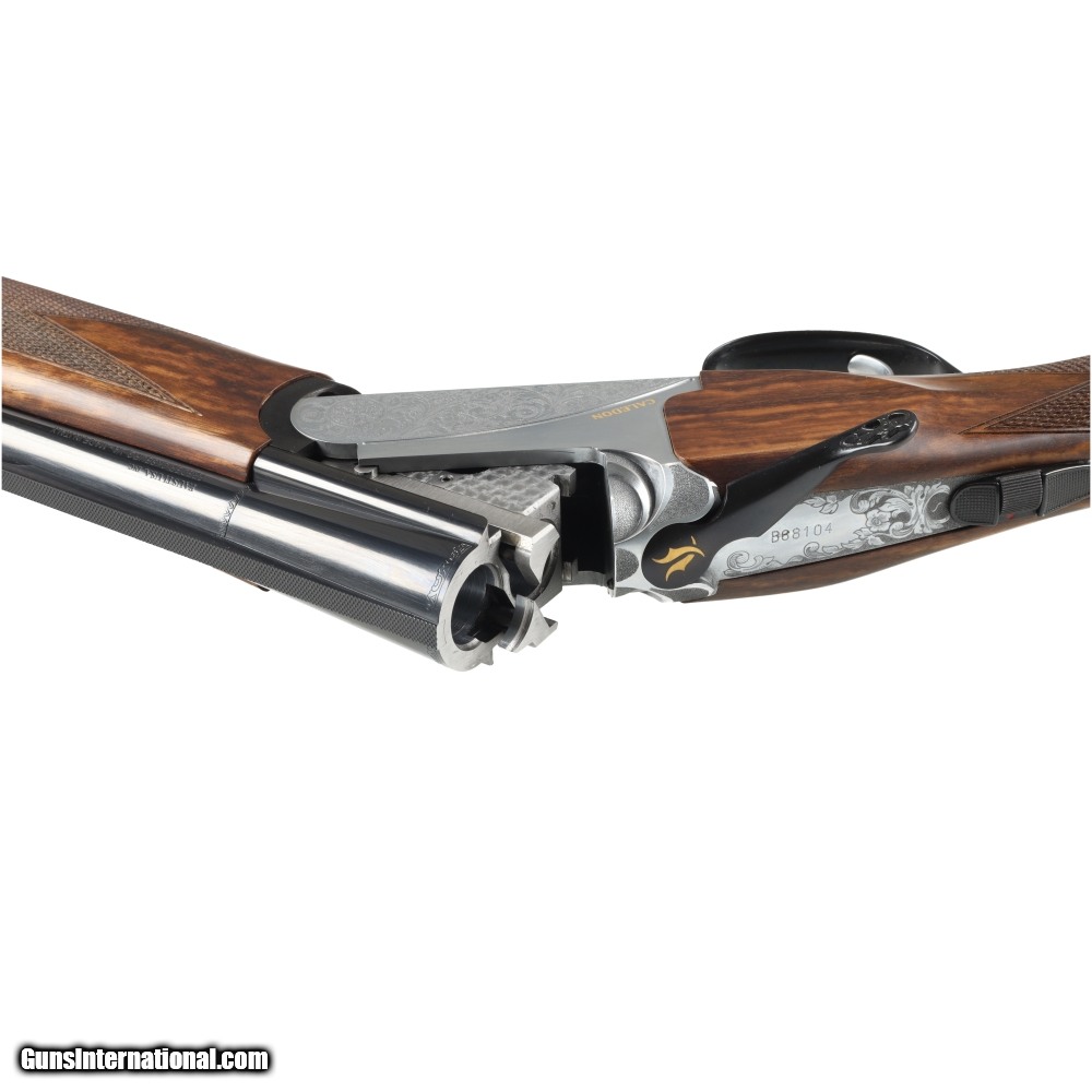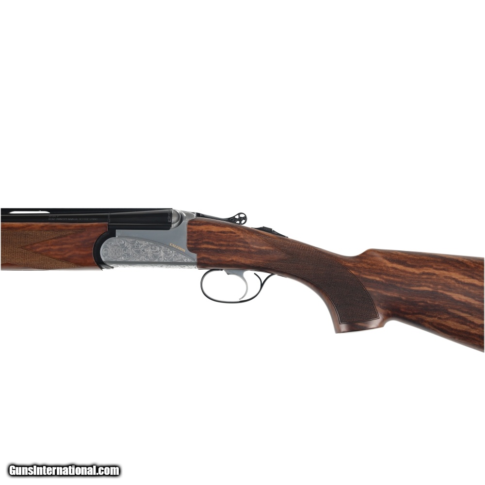Description: The Caledon Over/under shotgun is an elegant combination of form and function. Combining attractive walnut stocks and deep cut laser engraving with finely crafted barrels, strong actions and chrome plating over all internal components has produced a fine shooting adv beautiful shotgun for the field. Manufactured in: Italy Hand: Right Hand Action Finish: Coin Action Description: Over / Under Metal Finish: Original Barrel Length: 28 Inches Barrel Condition: New Stock Finish: Original Stock Condition: New Type of Butt: Factory Pad Pad Thickness: 5/8" Grip: Pistol Forend: Checkered Cast Amount: 3/16" Extra Barrels: No. SOLD Manufacturer: Fausti Model: Caledon Feild Chambers: 3" Magnum Ejectors: Yes Condition: New Metal Condition: New Action: Over / Under Triggers: Single Gauge Info: 20 Gauge Stock Comb: 1 1/2 Stock Heel: 2 3/8 Stock Cast: Off Fore End: Checkered Butt Pad: 5/8 LOP: 14 1/2 Rib: Matted Vent Rib Finish: Original Weight: 6.3 lbs Chokes: 5 Factory Chokes Extras: No. Case: Maker's Case |