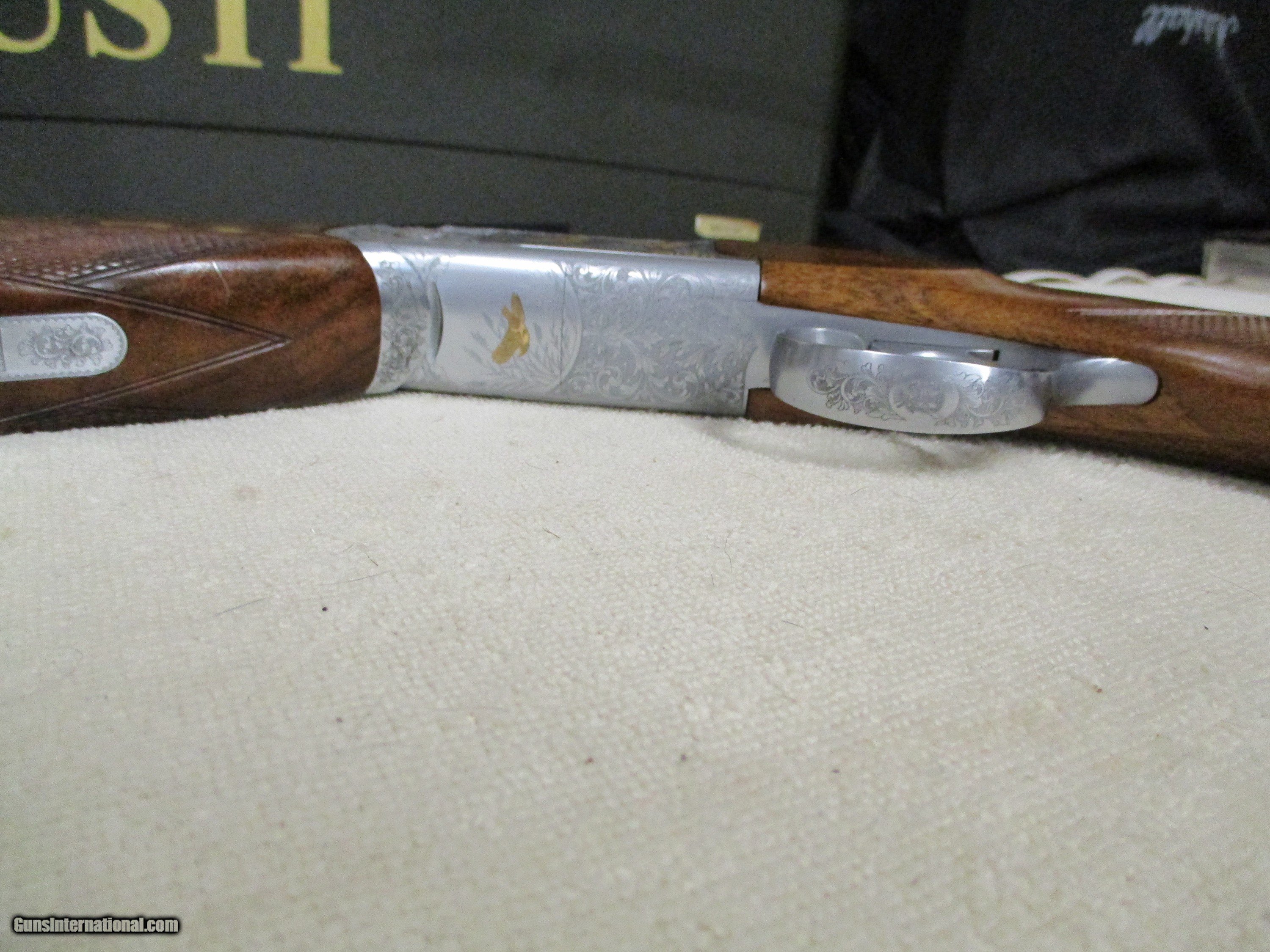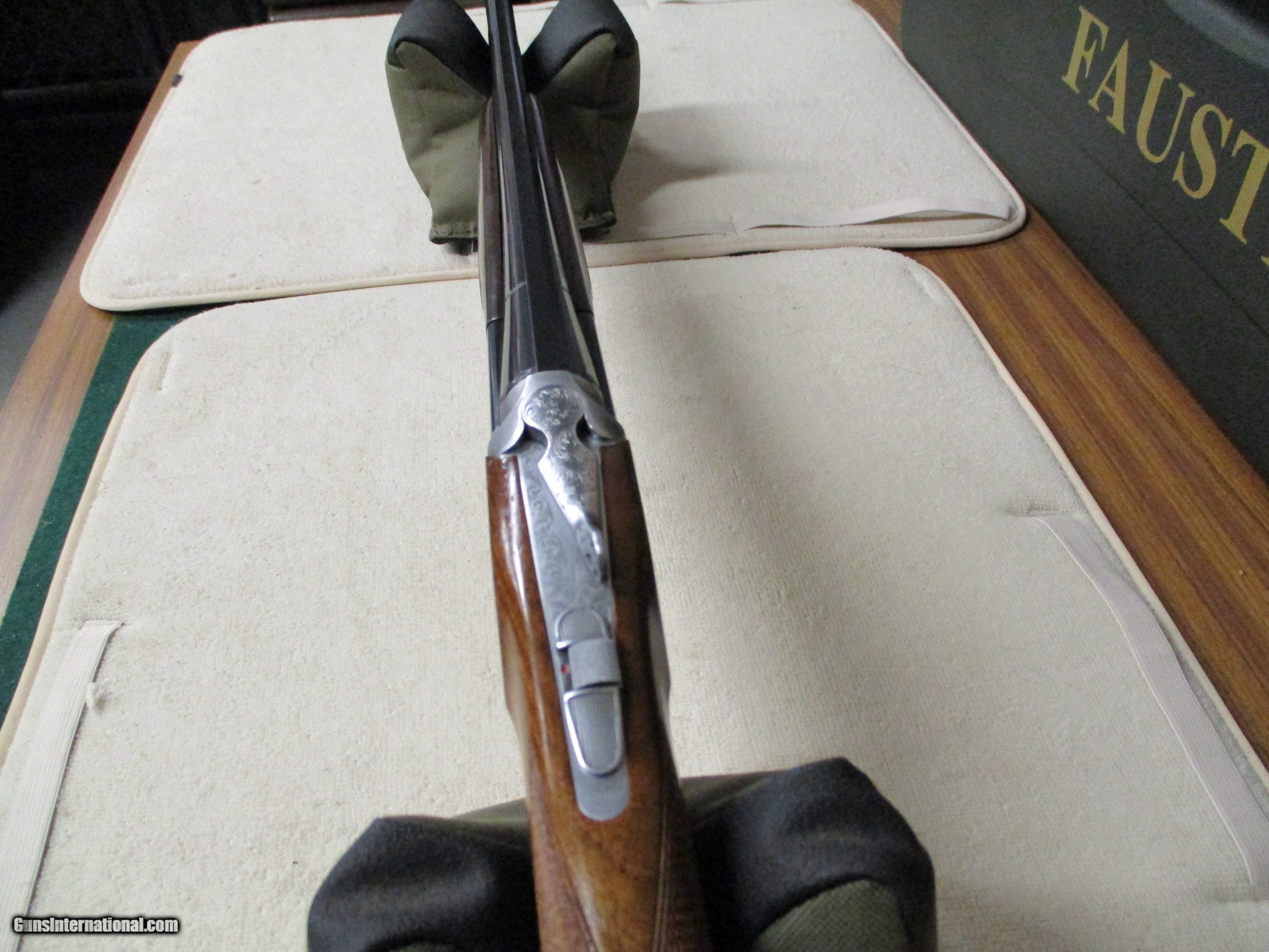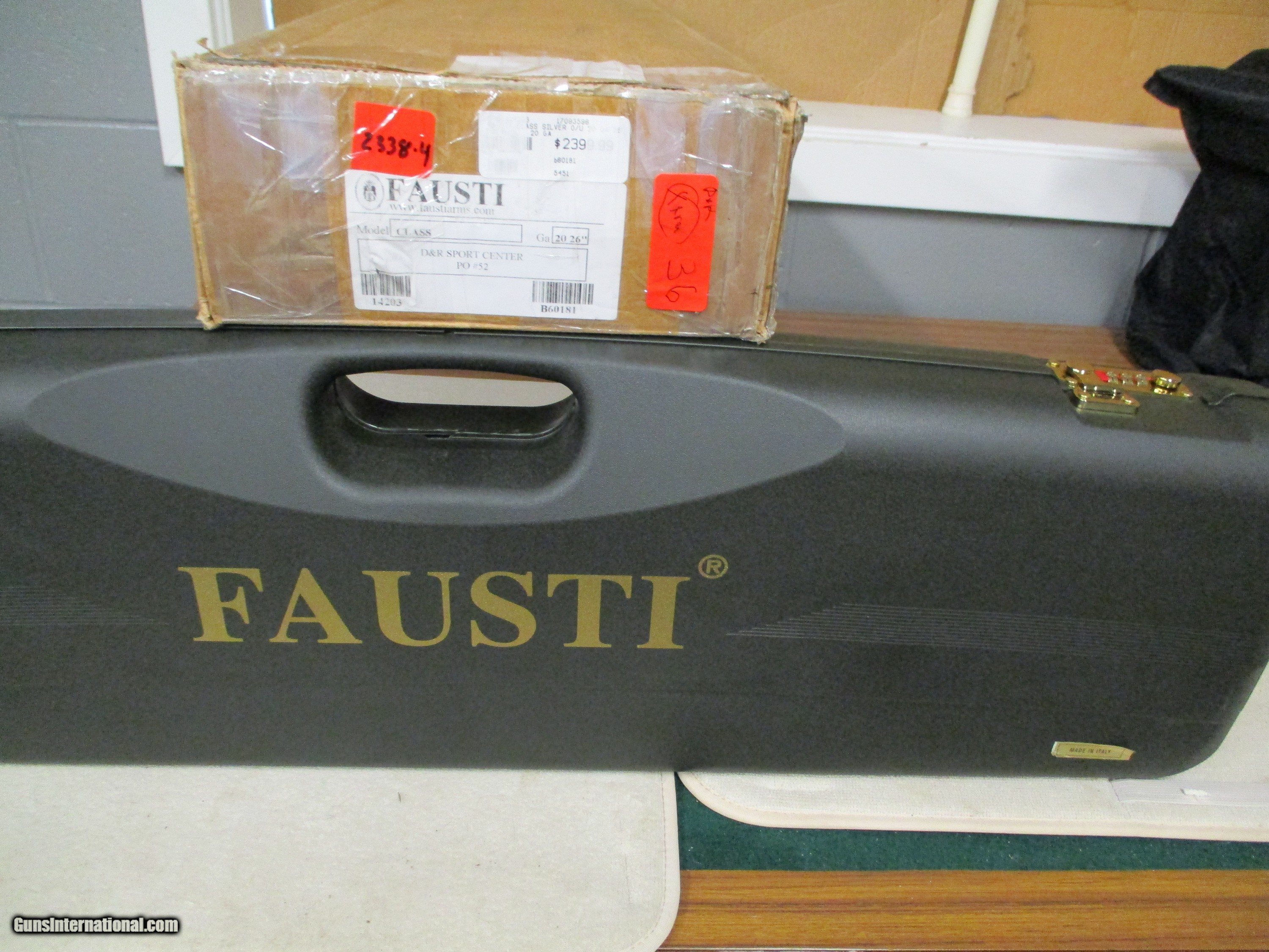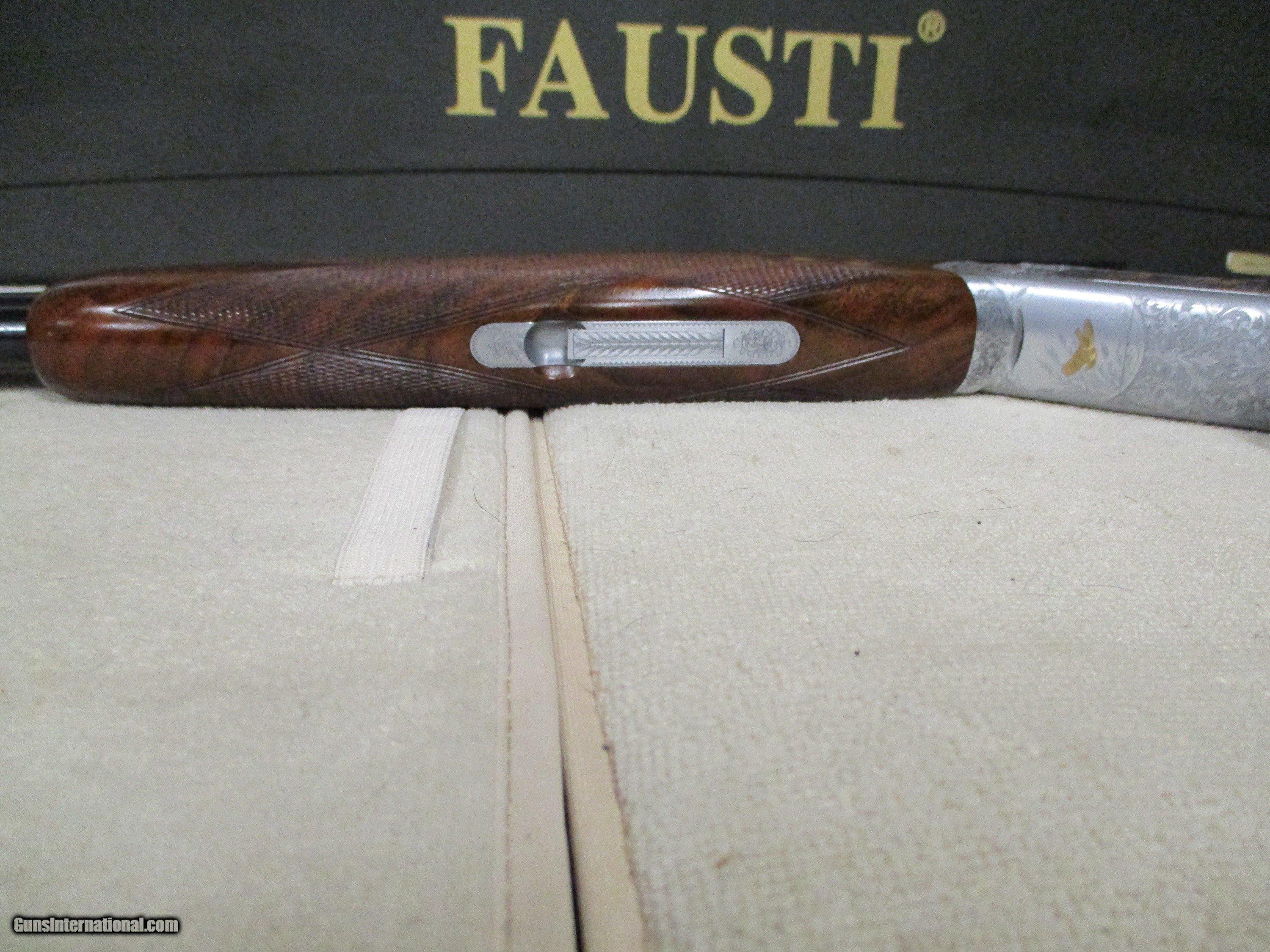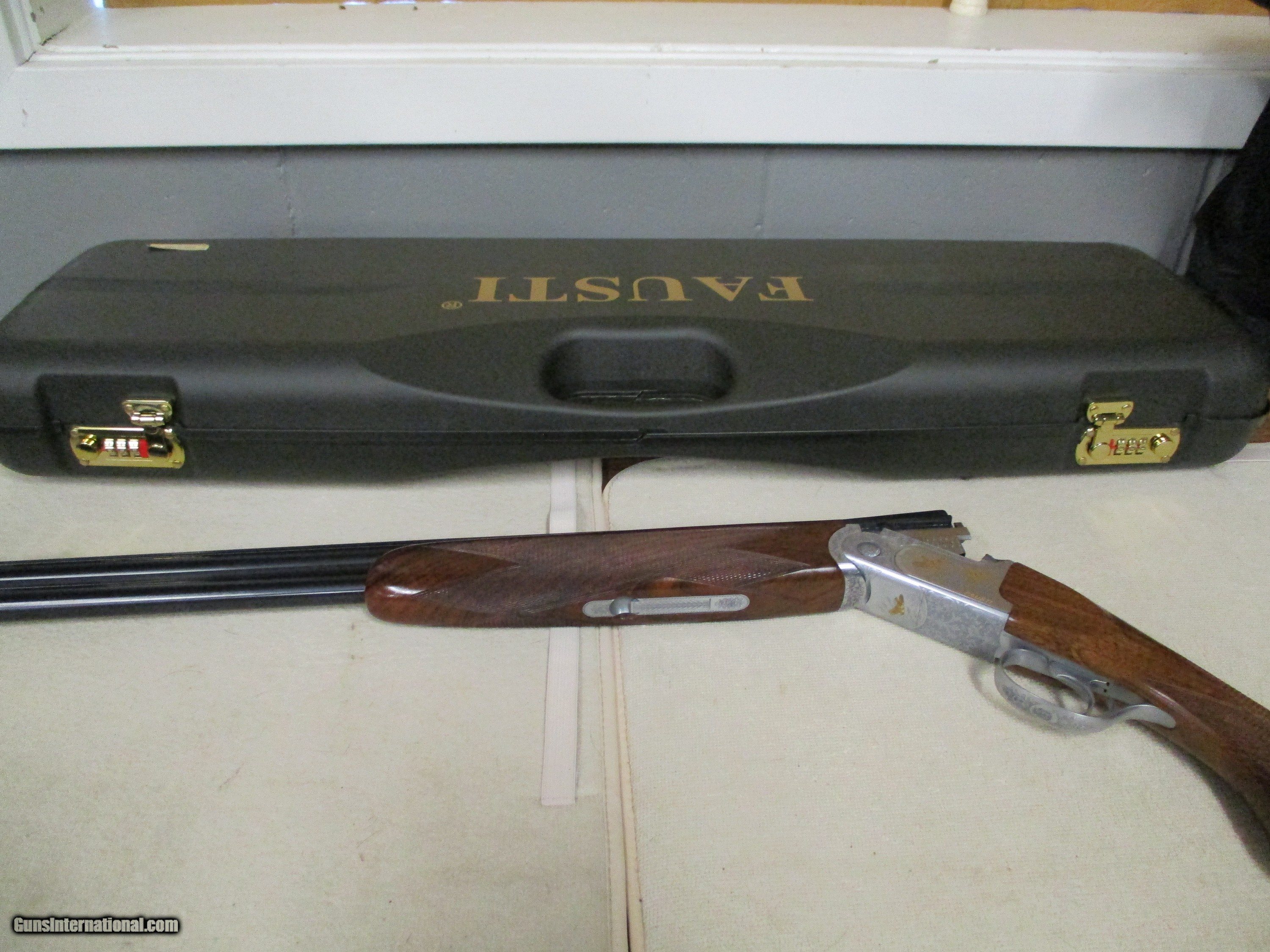 Description: Fausti "Class" 20ga O/U Shotgun with Prince of whales pistol grip, Gold inlay of Quail and pheasants on nickel Reciever. Comes with 5 chokes and wrench, owners manual, Fausti Hard Case. Only have one box of shells through her. Like new. SOLD Manufacturer: Fausti Model: Class Barrel Length: 26 in. Condition: Excellent Metal Condition: Excellent Wood Condition: Excellent Bore Condition: Excellent Barrels: o/u Barrel Type: o/u Triggers: 1 Gauge Info: 20 Butt Pad: yes Chokes: 5 Engraving: Gold Inlay Case: Fausti hardcase and box Item Location: Michigan |