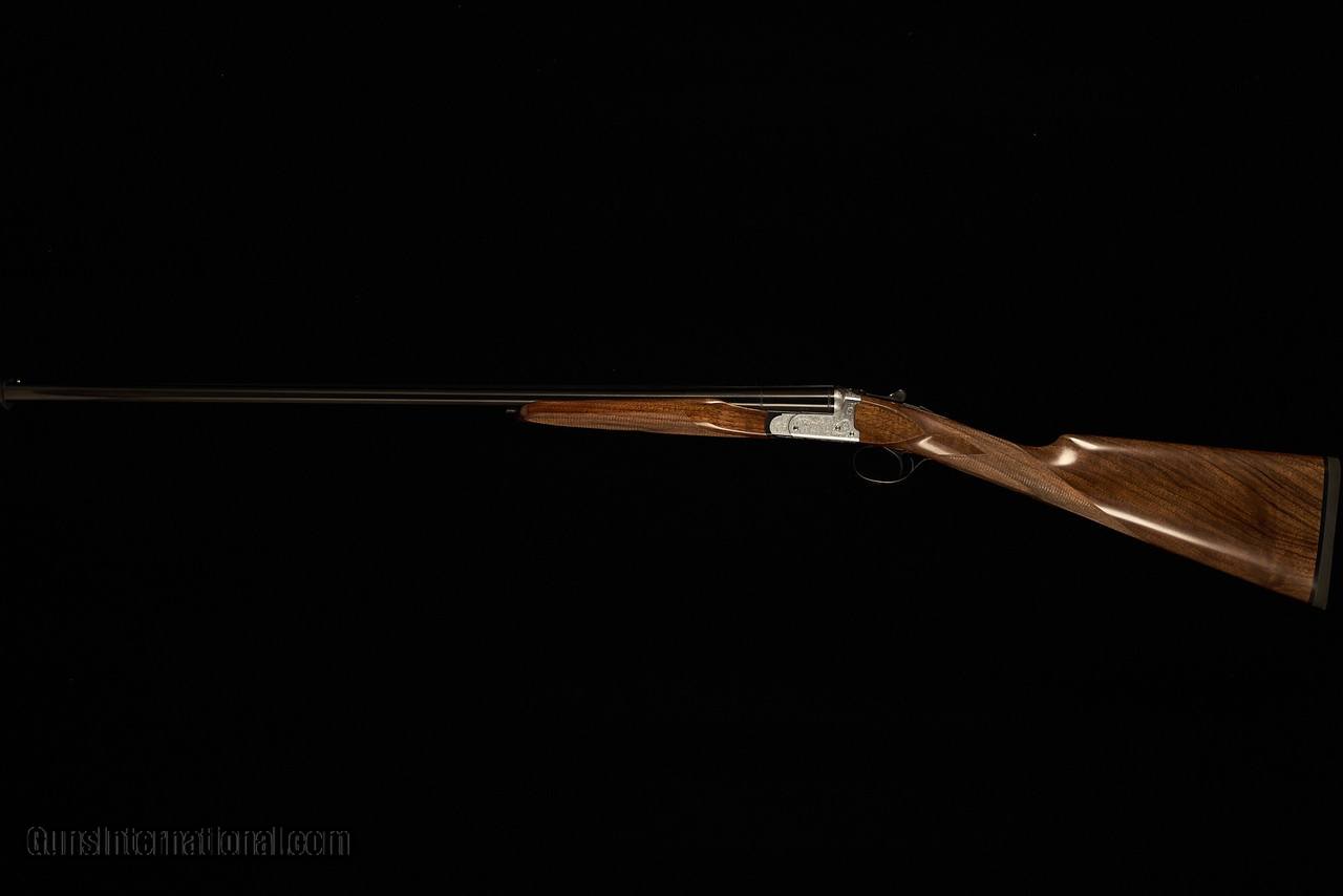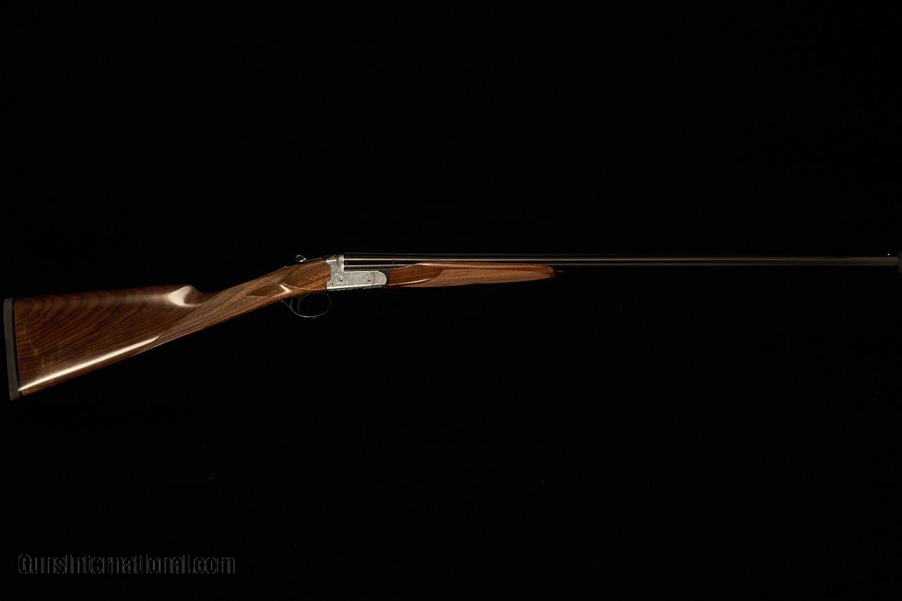 Description: Fausti DEA in 28ga. Barrels are 28" with screw-in chokes. Rib is flat (non-swamped) with machine texturing for glare reduction. Front bead is brass. Action features a nickeled finish over medium scroll engraving with 95% coverage. Trigger is mechanical and non-selective. Trigger guard is blued with gold Fausti logo on long tang. Stock and forearm are of English/Turkish walnut with straight grain and moderate figure. Wood finish is semi-gloss oil. Checkering is actually hand-cut. Recoil pad is thin rubber and perfectly fit. Forearm latch is the Anson rod design which protrudes from the front of the forearm wood, thus eliminating possible snags on field gloves. Forearm is semi-beavertail which keeps the hand free of hot barrels, while maintaining classical styling. This gun is lively at just over 5 1/2lbs, but swings smoothly with the balance point exactly on the hinge pin. Gun comes complete in factory case with accessories. Manufacturer: Fausti Caliber Info: 28 Gauge Barrels: 28 Action: Side by Side Triggers: Single Selective Gauge: 28 Gauge Stock Comb: 1 1/2 Stock Heel: 2 1/4 Stock Cast: 1/8" off LOP: 14 5/8 Rib: Solid Cross Filed Weight: 5.1 Chokes: Interchangeable Price: 5,105.00 Contact Seller |