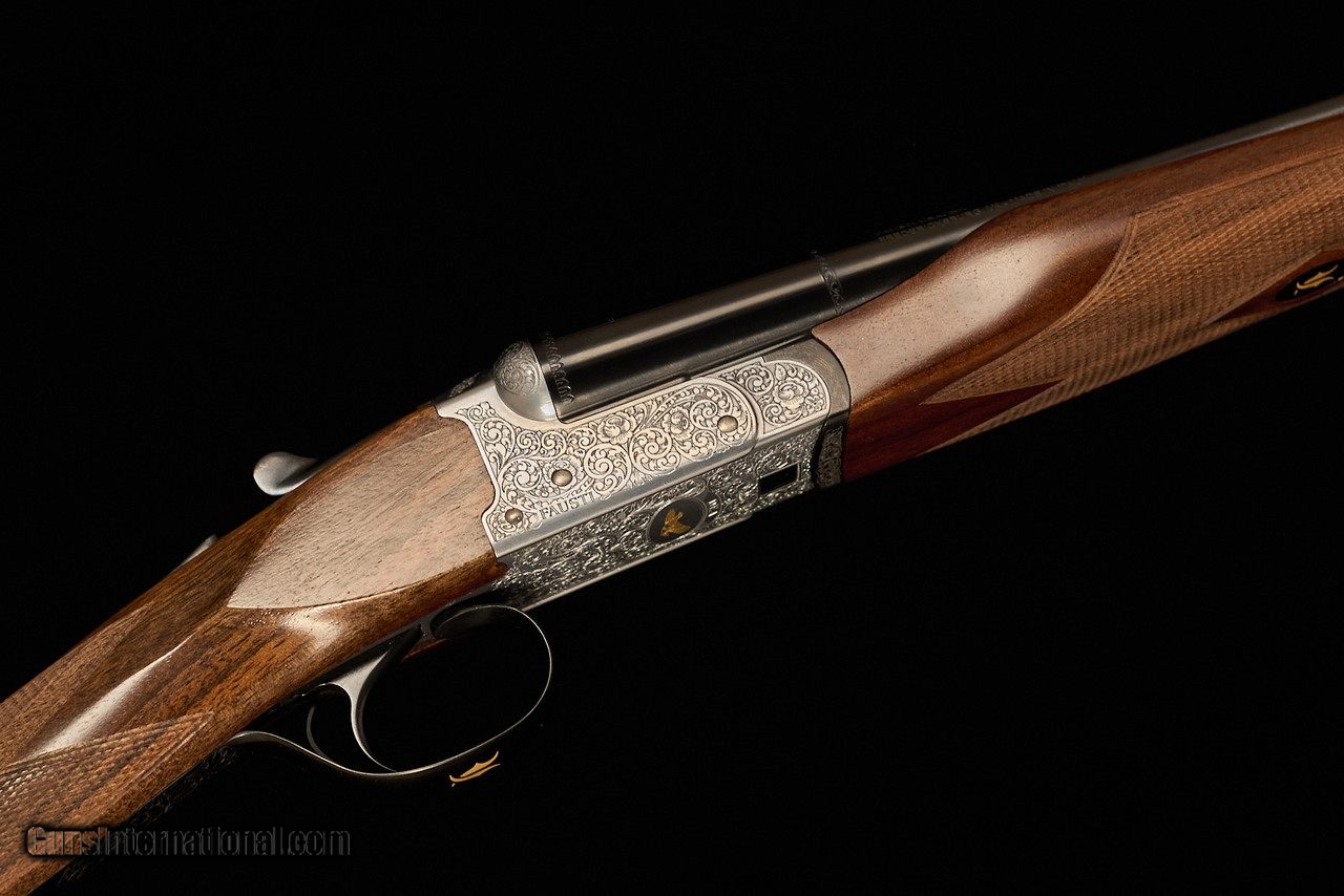This gun is lively at just over 5 1/2lbs, but swings smoothly with the balance point exactly on the hinge pin. Gun comes complete in factory case with accessories.