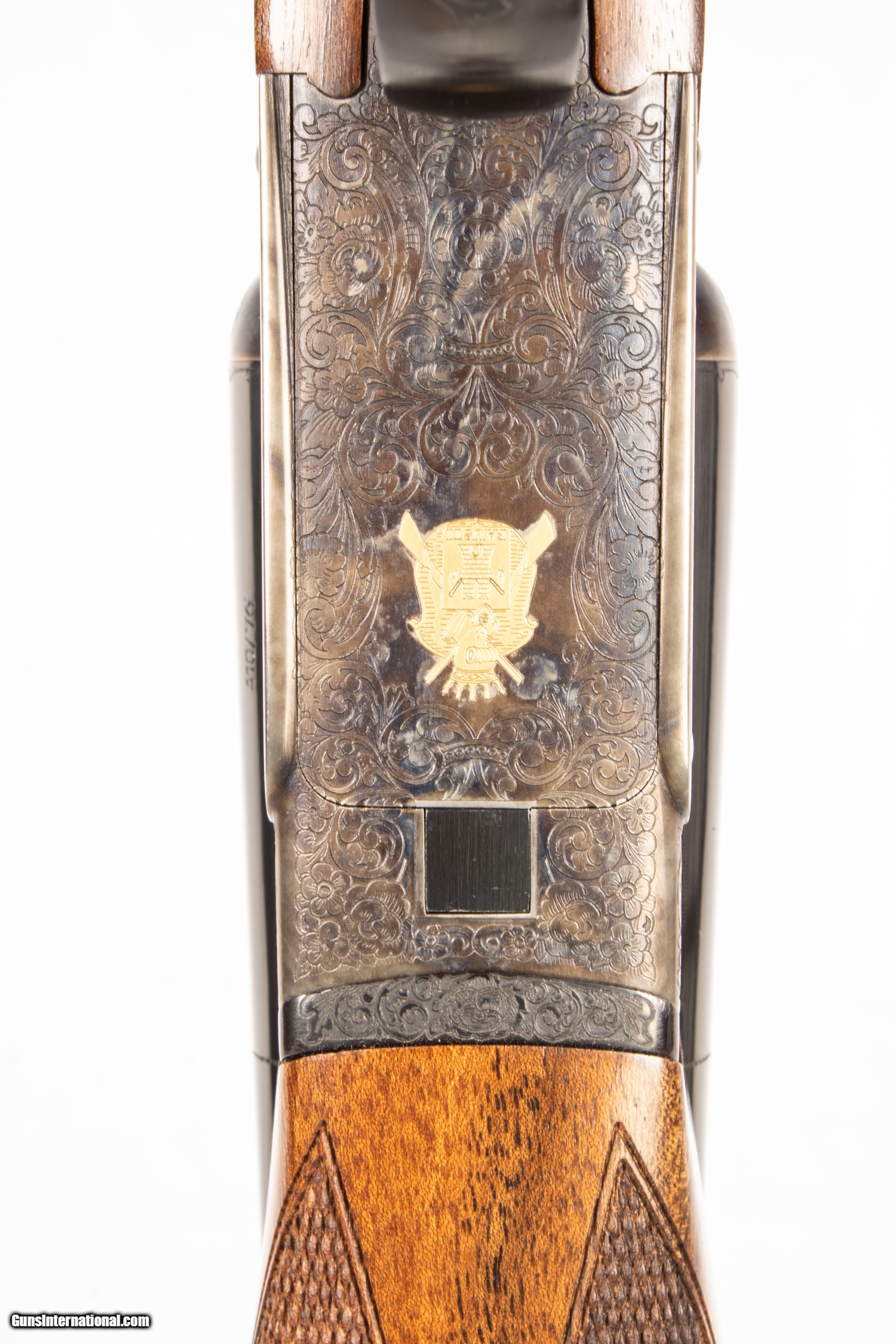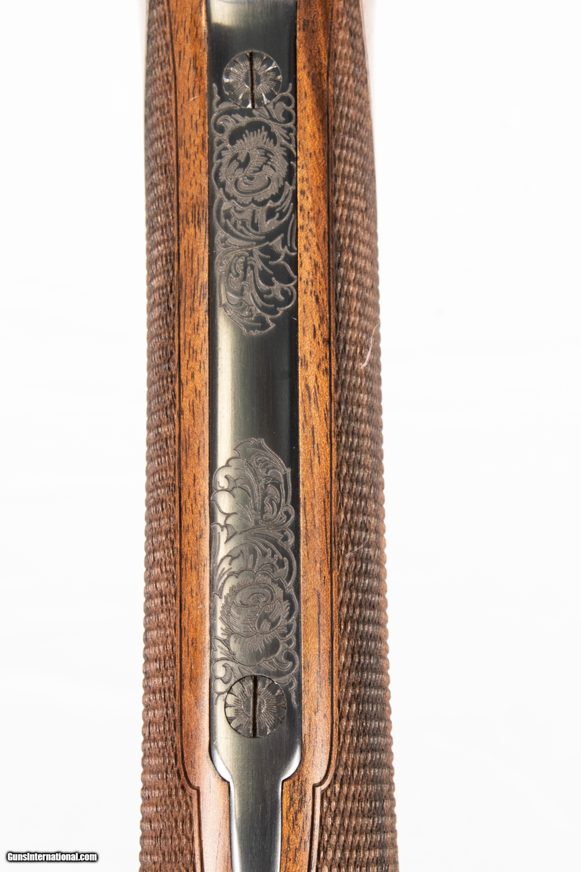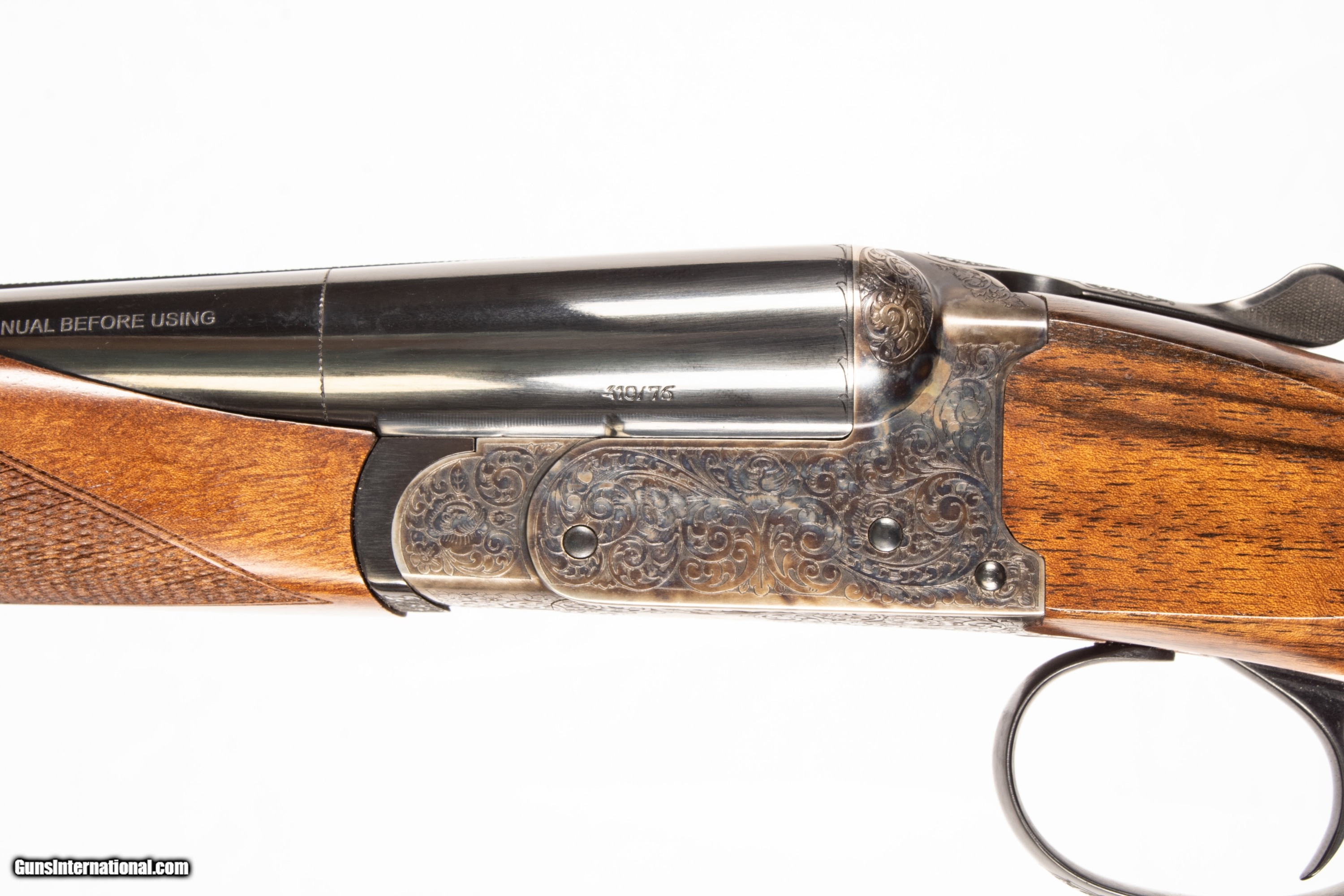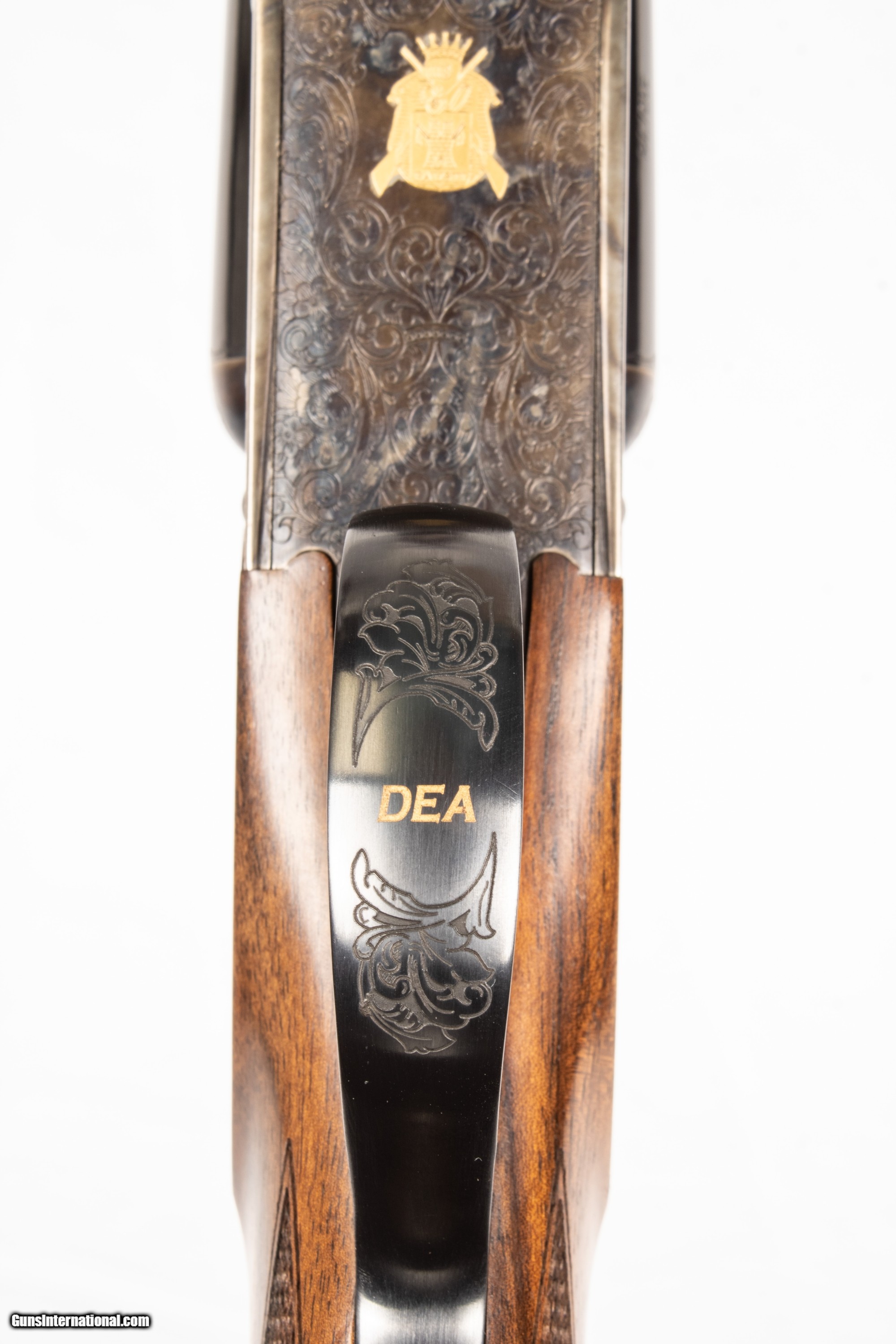 Fausti DEA Small Frame chambered in 410 GA with 28 inch barrels and a bright & shiny bore. This firearm comes with full and modified chokes a LOP of 14 1/2 inches and comes with hand finished gold inlayed engravings on the sides and top oil finished stock that is made of AAA+ grade Walnut with hand checkering. This firearm is in excellent condition and is covered by Dury's Lifetime Warranty.