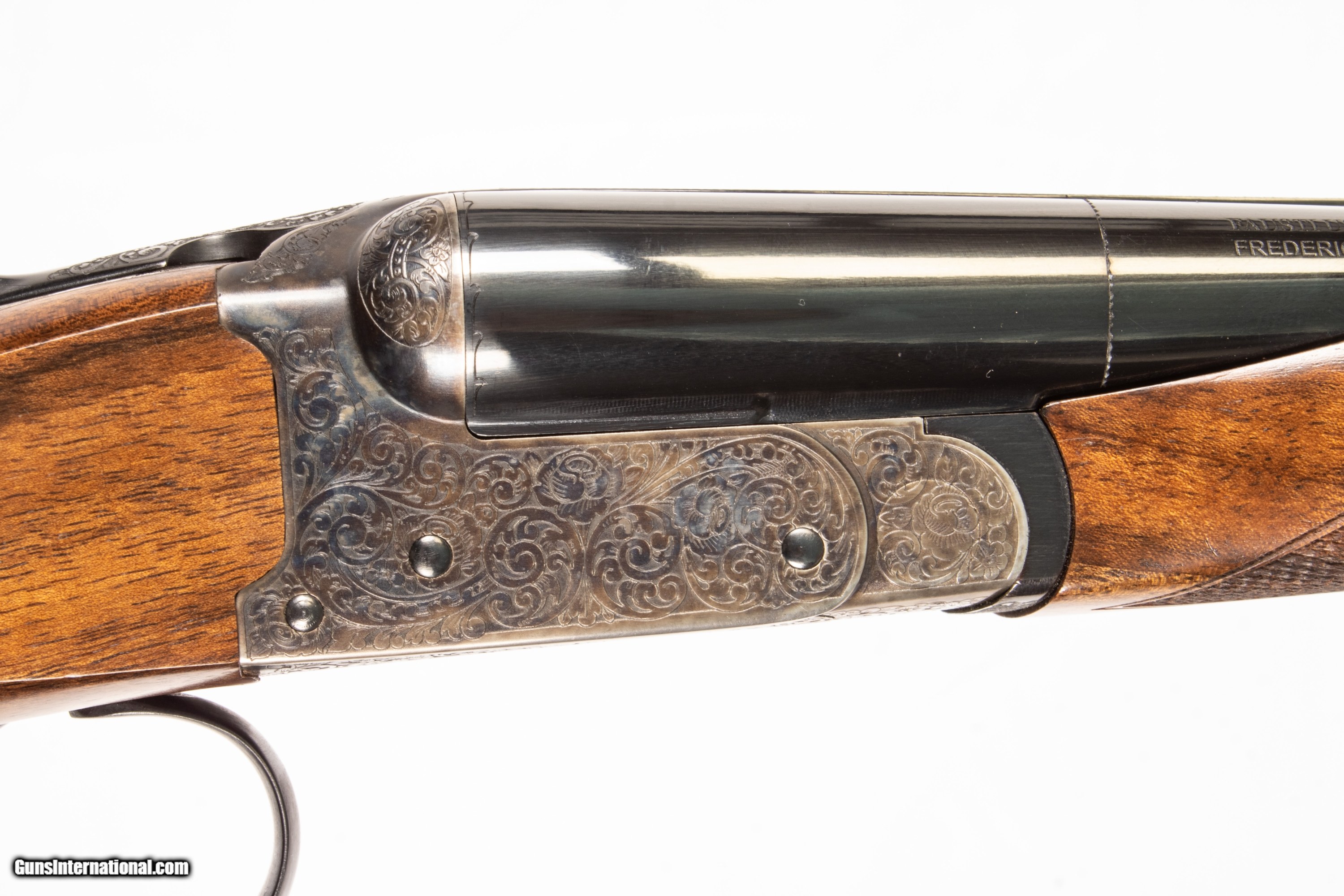Description: Fausti DEA Small Frame chambered in 410 GA with 28 inch barrels and a bright & shiny bore. This firearm comes with full and modified chokes a LOP of 14 1/2 inches and comes with hand finished gold inlayed engravings on the sides and top oil finished stock that is made of AAA+ grade Walnut with hand checkering. This firearm is in excellent condition and is covered by Dury's Lifetime Warranty.