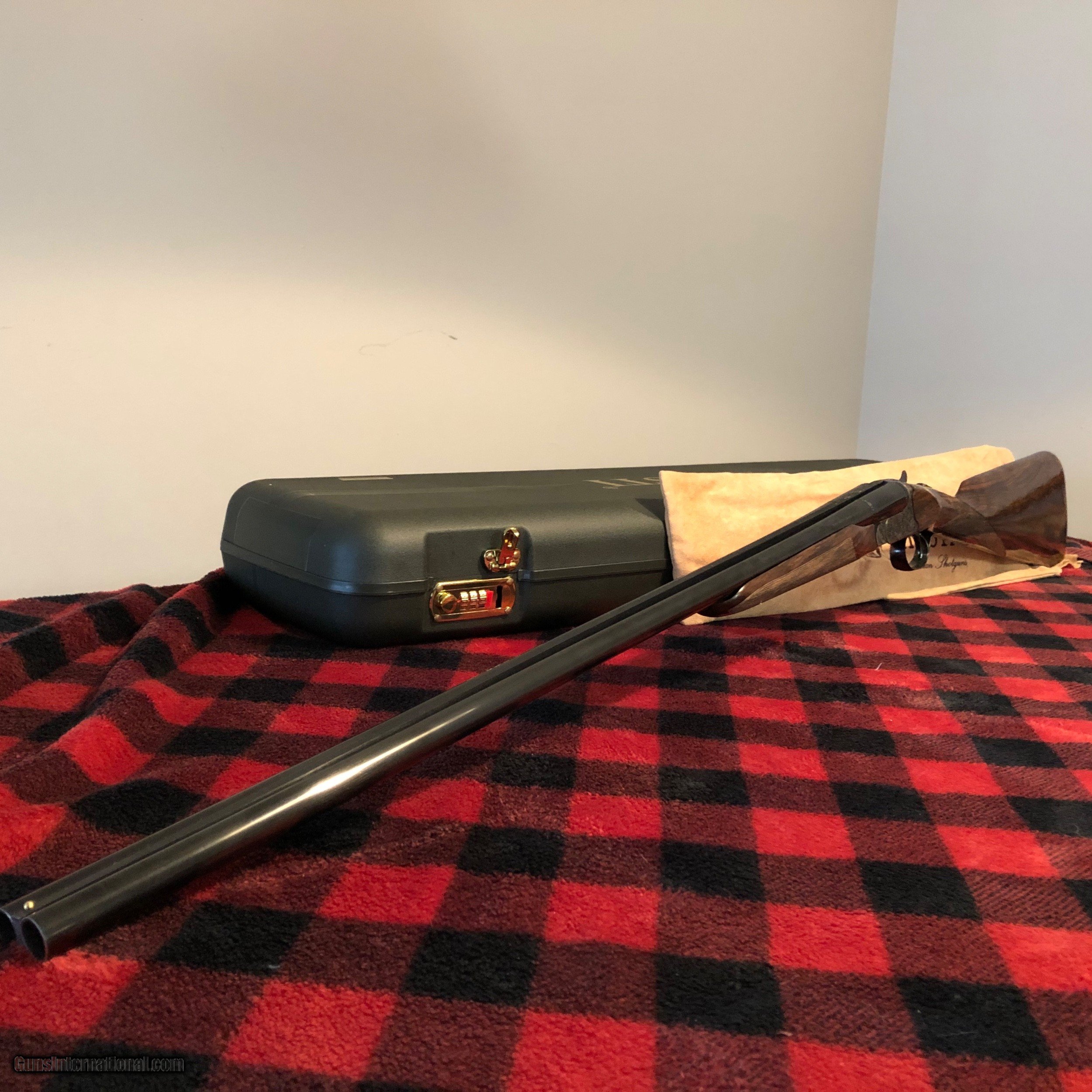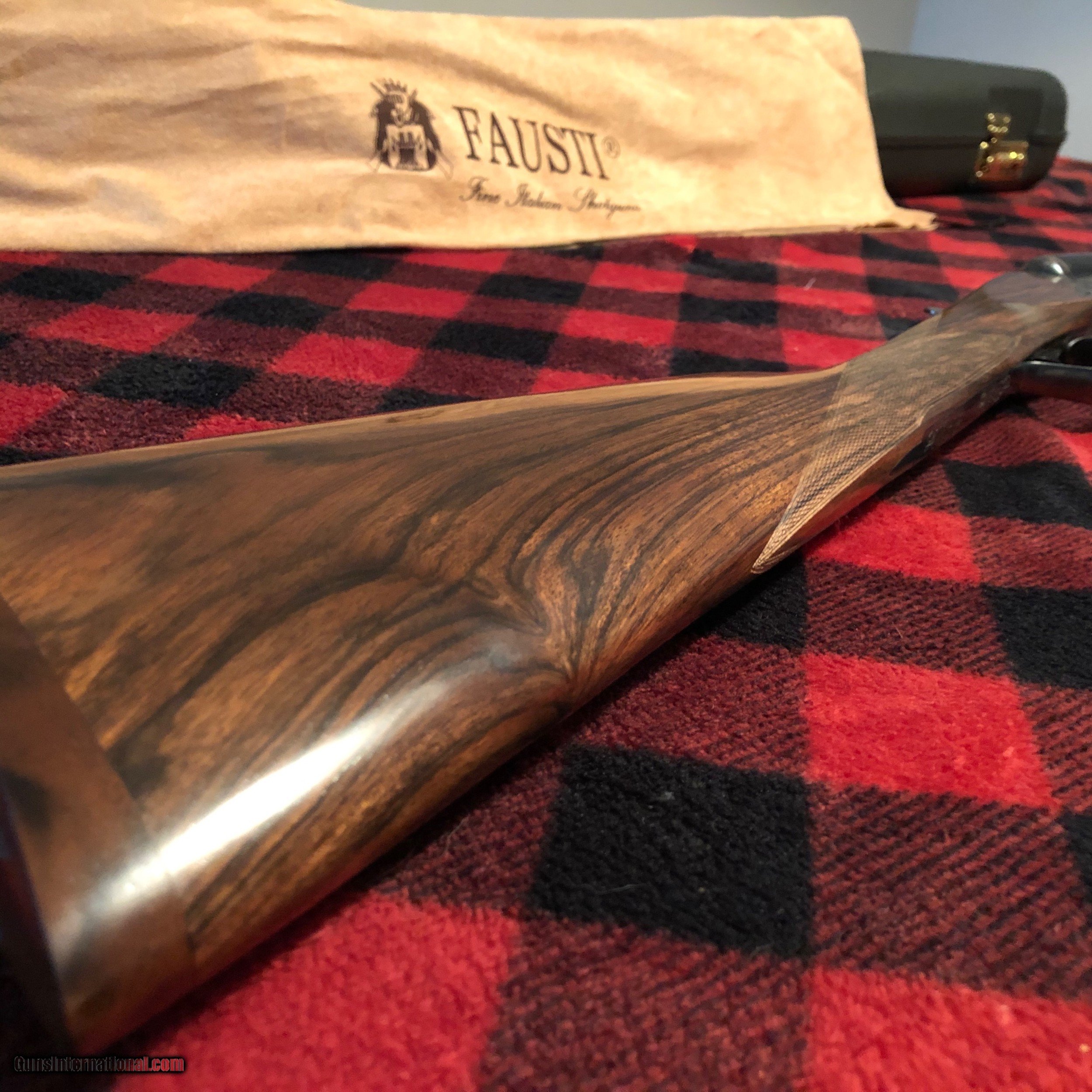 Description: NEW UNFIRED FAUSTI DEA SXS 28 gauge. Single trigger with beautiful straight grip AAA Walnut Stock with a hand rubbed oil finish. No bllemishes or handling marks. Case colored receiver with light scroll engraving. 28 inch barrels are choked IC/M, auto ejectors. Petite and light, the gun weighs under 5 lbs. I have a 16 gauge in this same gun and the swing is smooth, not whippy due to being so light. True Baby Frame. I also have RBLs and Parker Repros. The fit and finish on this gun is superior to the RBL and equal to my Parker Repro 16/20. The DEA I am selling has killer wood and has been put togther just for the photos. Take advantage of a great sxs at a great price. Paid $4,380.00 Purchased from Fausti USA, Virginia Selling for house closing costs. LOP 14 3/8", DAH 2 1/2",DAC 1 1/2" neutral cast. Gun ships in Fausti hard case. Buyer pays $35.00 for shipping and insurance. SOLD |
