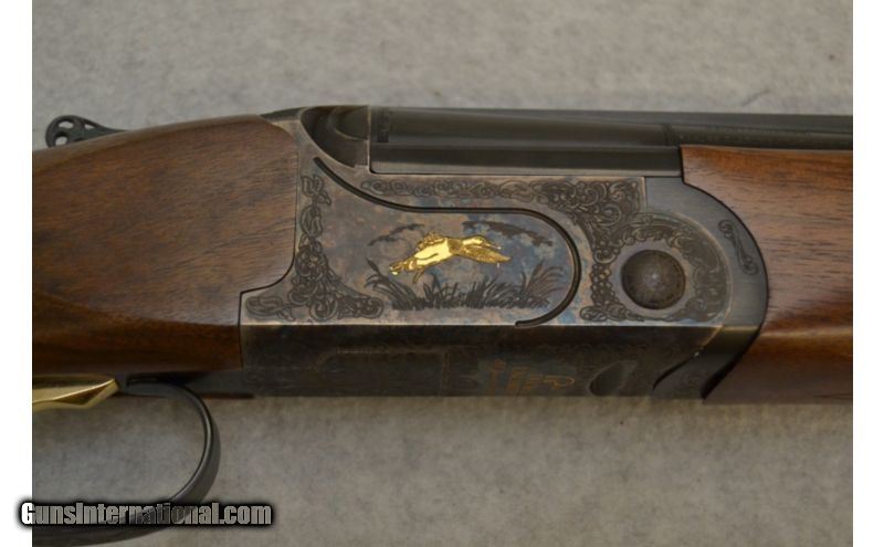 Description: This special edition Fausti was done for the Ducks Unlimited 80th Anniversary. Features include a color case hardened receiver engraved with waterfowl scenes and the ducks have been inlaid with gold. Framing the scene is a sort of floral pattern.Overall condition of this shotgun is very good to excellent. Metal condition is excellent with no signs of corrosion and very few if any handling marks. Wood condition is almost as good as the metal with some minor handling marks. SOLD Caliber Info: 12 Gauge Chambers: 3" Shells Metal Condition: Very good to excellent Wood Condition: Very good to excellent Bore Condition: Bores are bright with great shine Barrels: 28" Ventilated rib barrels Triggers: Gold colored single selective trigger with textured surface Stock: Turkish walnut stock with diamond pattern checkering Stock Dimensions: 14" LOP; 2 1/4" DAH; 1 3/4" DAC (center); 1 1/2" DAC (front) Fore End: Turkish walnut fore end with side panel diamond pattern checkering Butt Pad: Black rubber Weight: 7lbs 12oz Sights: Brass front bead Chokes: Modified, improved cylinder, improved modified, full, & skeet choke tubes included. Chokes are marked "NO STEEL SHOT". Extras: Includes the factory case, a total of 5 choke tubes, and the storage/transport socks. Item Location: Green Bay, WI |