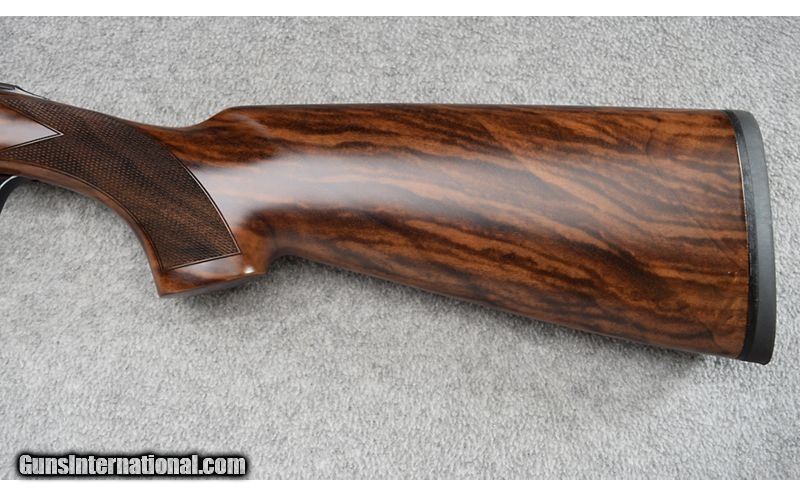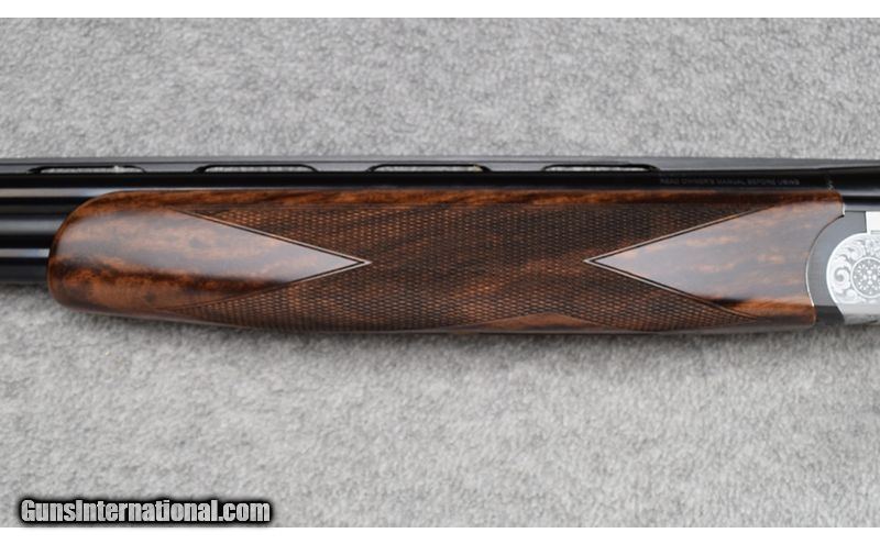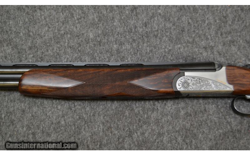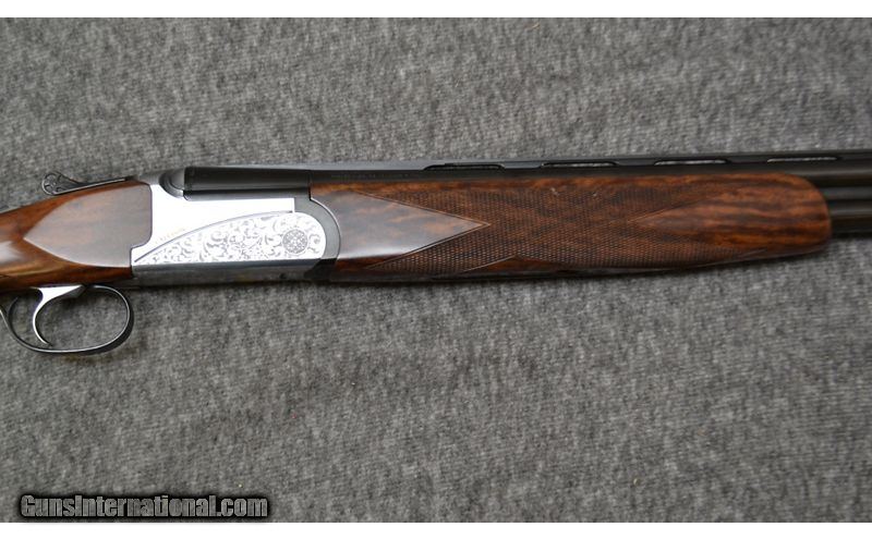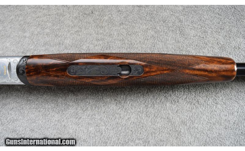 Description: This Italian beauty is in excellent overall condition showing little use. A+ oil finished Walnut has beautiful figure and shows no marks of any kind. Coin finished receiver is beautifully engraved with gold accents. Forend release is also engraved. Bores are excellent! This is a beautiful gun! Complete with case, manual and 5 total chokes. 20 Gauge SOLD Chambers: 3 Metal Condition: Excellent Wood Condition: Excellent Bore Condition: Excellent Barrels: 28" Vent Rib Triggers: Single - Selective Safety Stock Dimensions: 14 1/2" LOP Fore End: Grade A+ Oil Finished Walnut Stock Butt Pad: Black Rubber Butt Pad Weight: 6 lbs. Sights: Single Front Bead Chokes: Full/Full Screw in Choke Tubes Item Location: Wheeling |