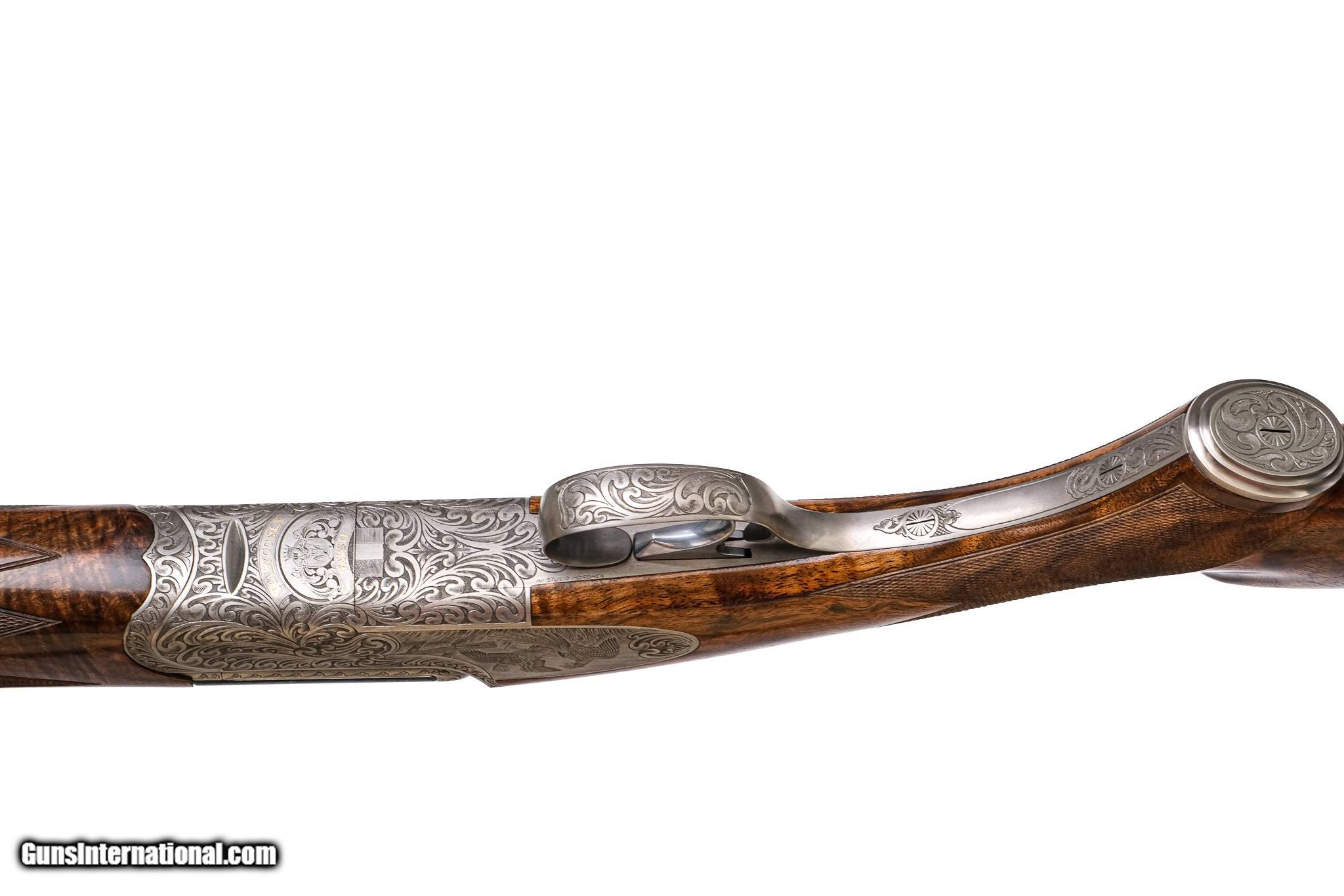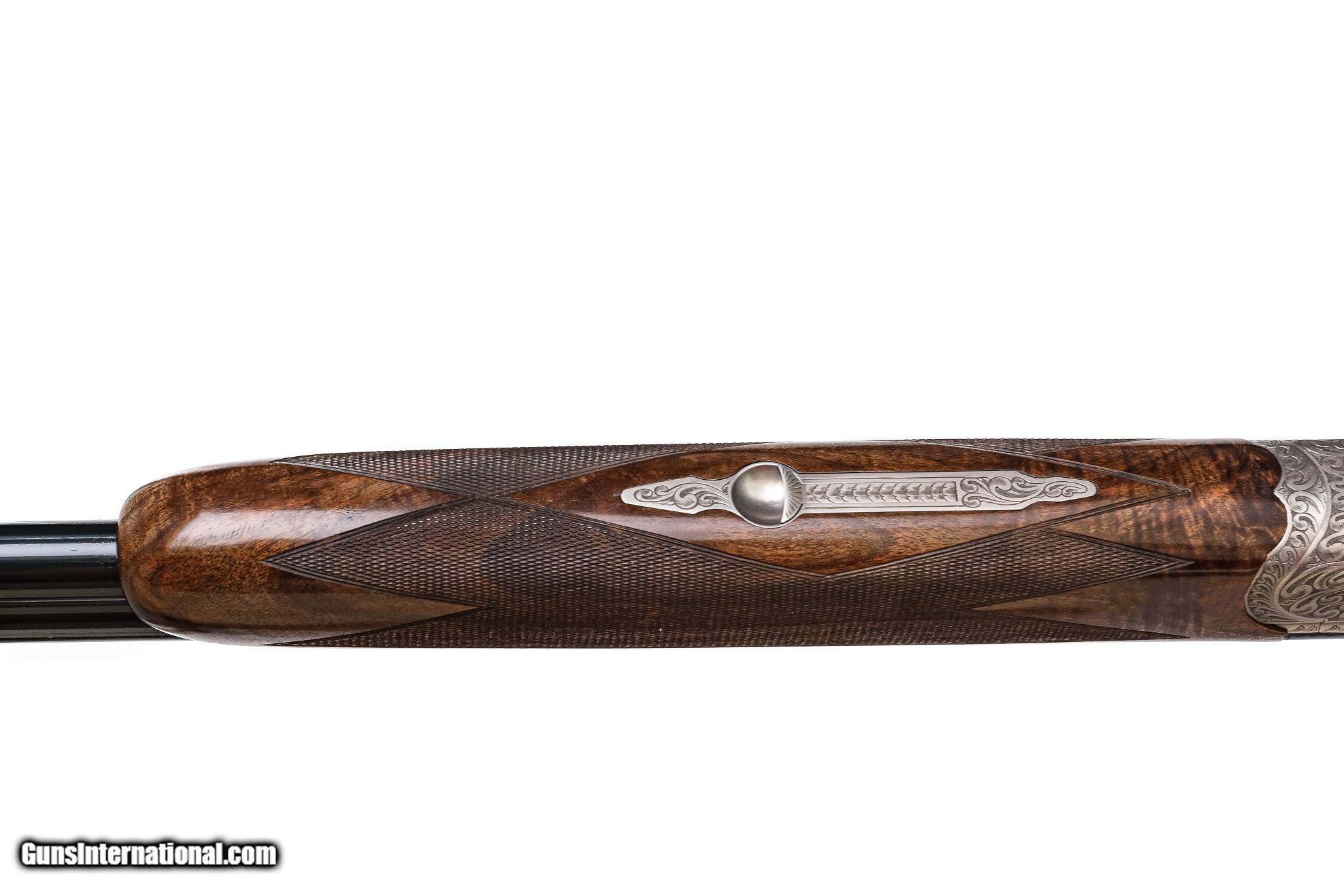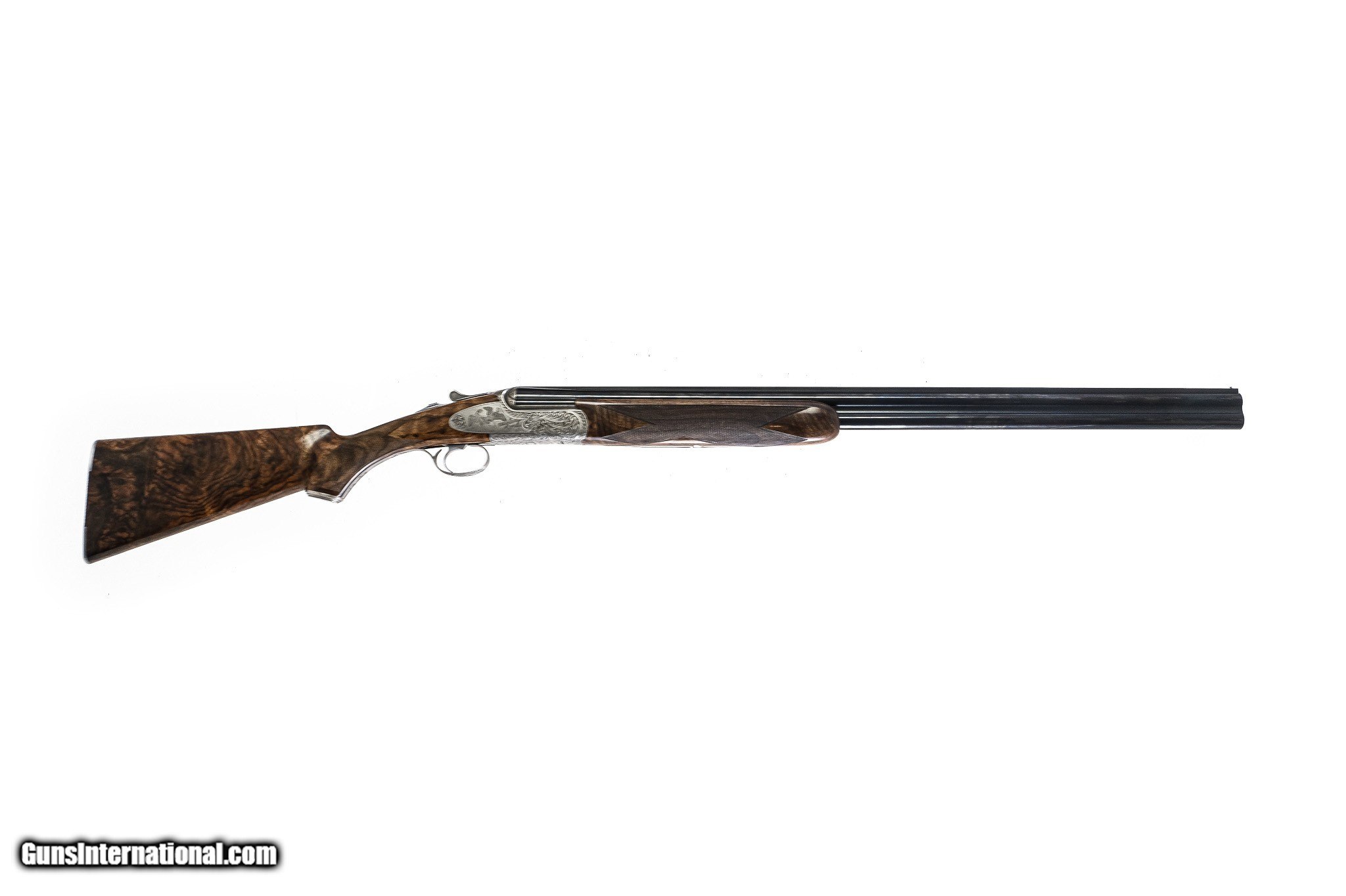 Description: Fausti - Italyco SLX Roundbody, O/U, 16ga. 28 ¾” Barrels Choked IC/F. Beautifully figured wood, heel and toe plates, field forend, single selective trigger, solid game rib, long tang metal capped Prince of Wales grip, stunning and elegant roundbody action featuring highly detailed game vignettes of cock pheasant in flight surrounded by lovely full coverage ornamental scroll over a coined finish, cased, appears unfired, available for immediate delivery. S & H - $50.00. Inv: 77358 6 lbs. 6 oz. 13 ½” x 1 ½” x 2 ¼” $8,999.00 SOLD |