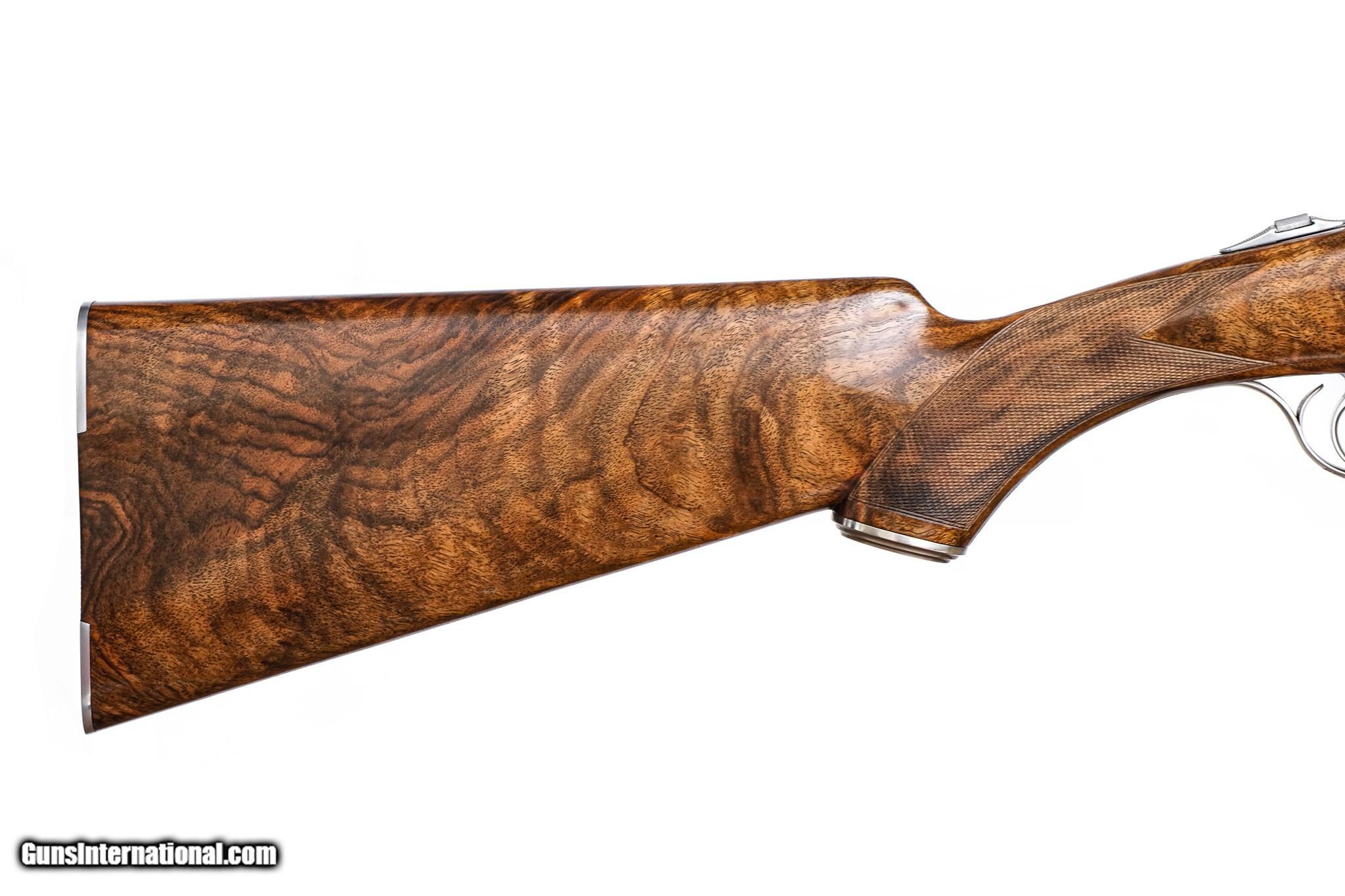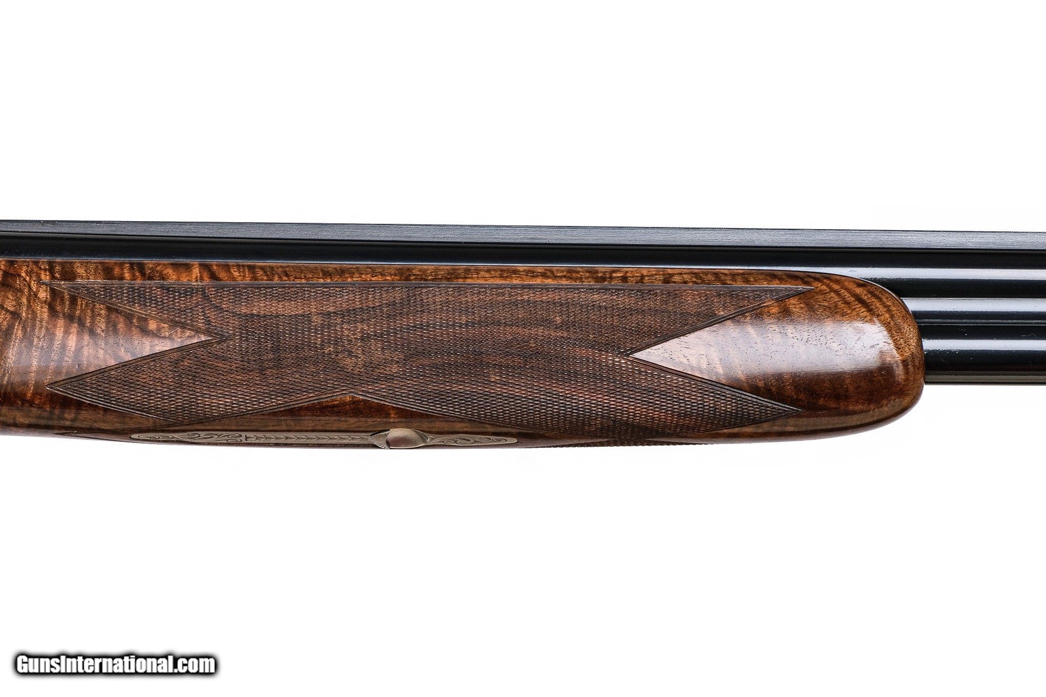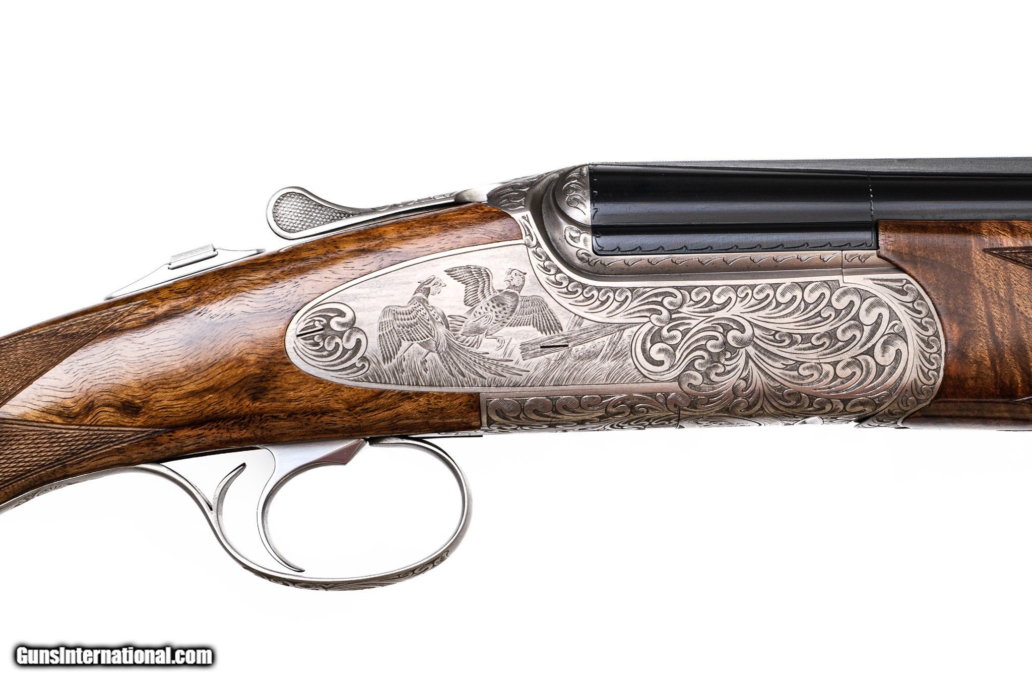 Description: Fausti - Italyco SLX Roundbody, O/U, 16ga. 28 ¾” Barrels Choked IC/F. Beautifully figured wood, heel and toe plates, field forend, single selective trigger, solid game rib, long tang metal capped Prince of Wales grip, stunning and elegant roundbody action featuring highly detailed game vignettes of cock pheasant in flight surrounded by lovely full coverage ornamental scroll over a coined finish, cased, appears unfired, available for immediate delivery. S & H - $50.00. Inv: 77358 6 lbs. 6 oz. 13 ½” x 1 ½” x 2 ¼” $8,999.00 SOLD |