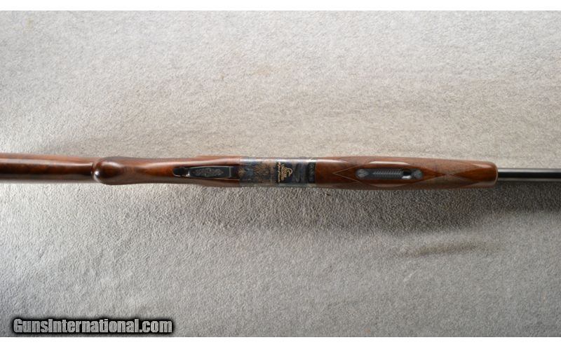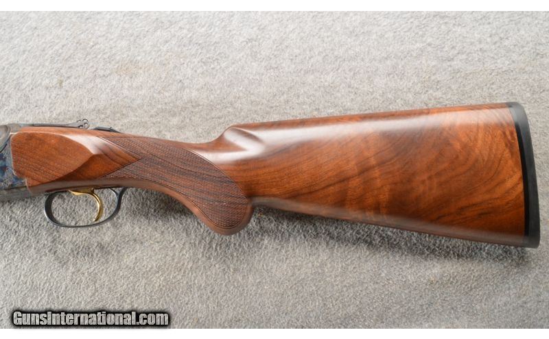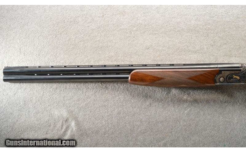 Description: 12 Gauge SOLD Chambers: 3 inch over/under with ejectors. Metal Condition: Excellent. Wood Condition: Excellent. Barrels: 28 inch blue with a vent rib. Triggers: Single gold color. Stock Dimensions: 14 1/4 inch LOP. Fore End: Matching checkered walnut. Butt Pad: Black rubber butt pad. Sights: Single brass front bead on the vent rib. Chokes: Screw in, comes with a full set of 5. Item Location: Chesterfield, MI |