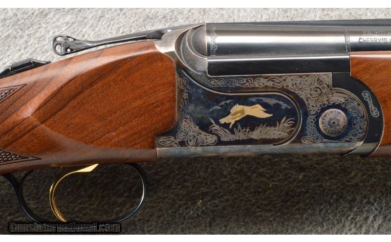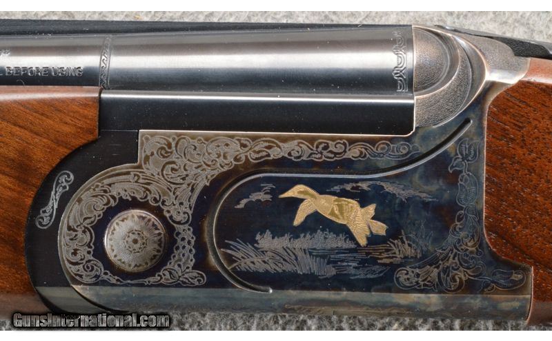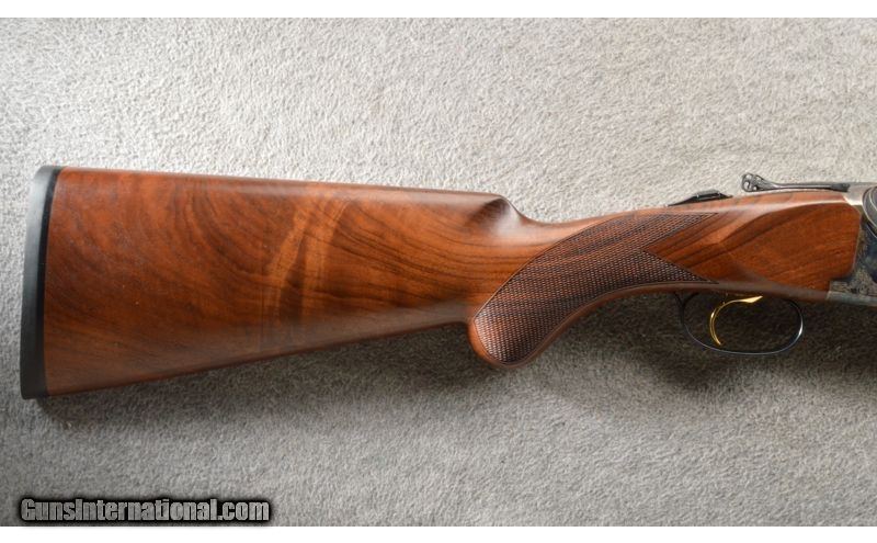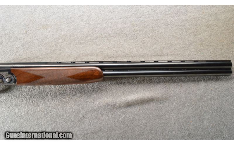 Description: 12 Gauge SOLD Chambers: 3 inch over/under with ejectors. Metal Condition: Excellent. Wood Condition: Excellent. Barrels: 28 inch blue with a vent rib. Triggers: Single gold color. Stock Dimensions: 14 1/4 inch LOP. Fore End: Matching checkered walnut. Butt Pad: Black rubber butt pad. Sights: Single brass front bead on the vent rib. Chokes: Screw in, comes with a full set of 5. Item Location: Chesterfield, MI |