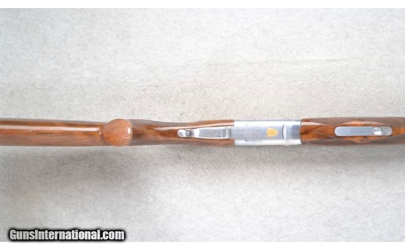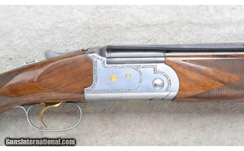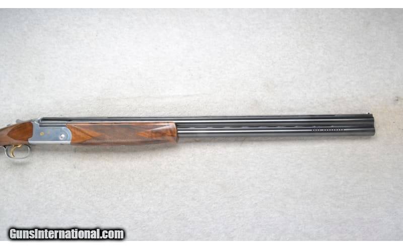 Description: This Fausti Model Sporting Clays is an over and under shotgun in 12 Ga. It has 30 inch ported and ventilated rib barrels with ejectors. A white bead front sight and a brass bead middle sight. With 3 inch chambers the gun is NOT provided with choke tubes. It has a SST. The butt stock is a checkered grip walnut pistol grip. The forearm is a checkered grip walnut. The receiver is lightly engraved and has golden clays in flight. 12 Gauge SOLD Chambers: 3 inch. Metal Condition: Good. Top barrel has a little light freckling. Wood Condition: Good. Some light handling marks and a little surface finish wear. Bore Condition: Bright and shiny. Barrels: 30 inch ported and ventilated rib barrels with ejectors. Triggers: SST Stock Dimensions: 14 3/8 inches. Fore End: Checkered grip walnut. Butt Pad: Black rubber recoil pad. Weight: 7 Lb. 14 Oz. Sights: White bead front. Brass middle bead. Chokes: NO CHOKE TUBES provided. Item Location: Richfield, WI |
