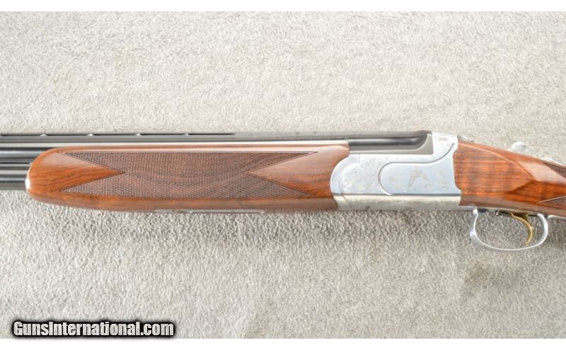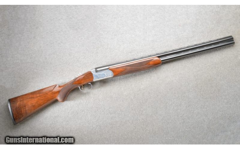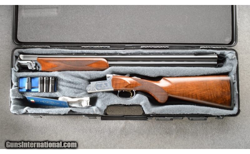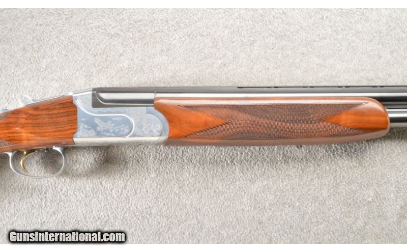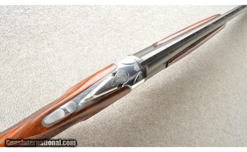 Description: Fausti Volo O/U shotgun chambered in 3", 12 Gauge. This example features: 28" vent rib barrels and a front bead sight, a Kersten cross bolt, ejectors, single selective gold trigger and a manual safety. The coin finished receiver is scroll engraved with Woodcock and a Grouse in flight. Nice checkered walnut stock with a Prince of Wales grip. This was a Cabela's Exclusive shotgun (the big gold "C" on the trigger-guard). The shotgun is in excellent condition and comes with the factory hard case, five flush chokes "CYL, FULL, IMP CYL, IMP MOD, MOD" and a choke wrench. 12 Gauge SOLD Chambers: 3" chambers. Metal Condition: "99% blued finish. No rust, scrapes or dents. The coin finished receiver is in perfect condition. Wood Condition: 99% remaining with a few faint surface marks. Bore Condition: Bright smooth bores. Barrels: 28" barrels. Triggers: Single selective gold trigger. Stock Dimensions: LOp 14.25". Fore End: Checkered. Butt Pad: Factory rubber. Weight: 7.25 lbs Sights: Bead. Chokes: Removable. Item Location: Owatonna, MN |