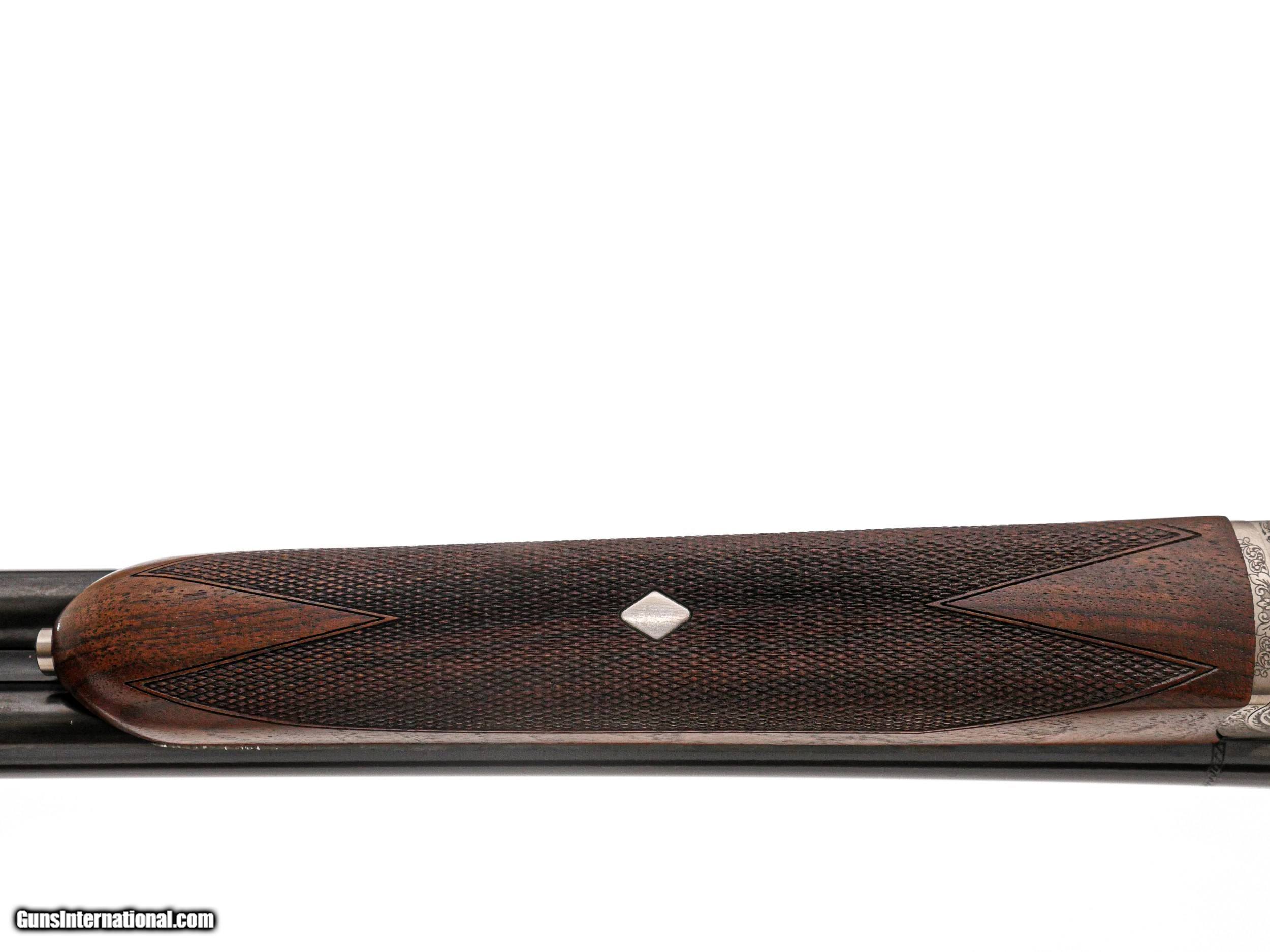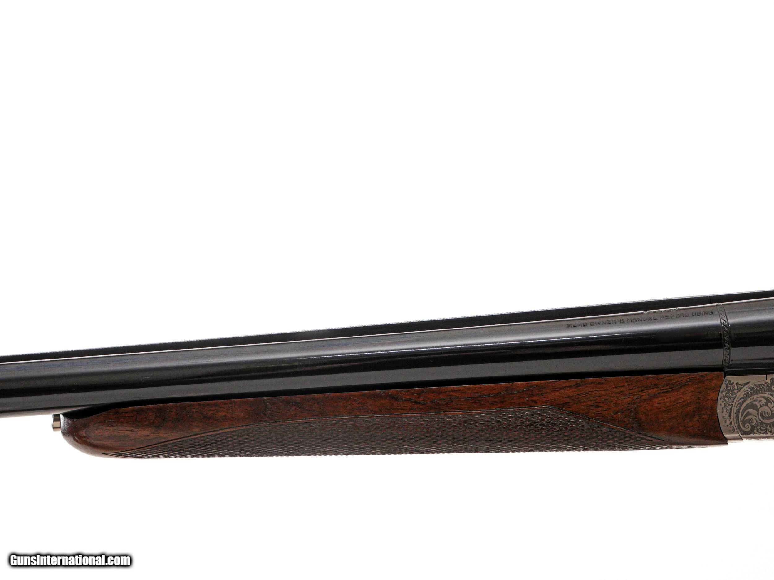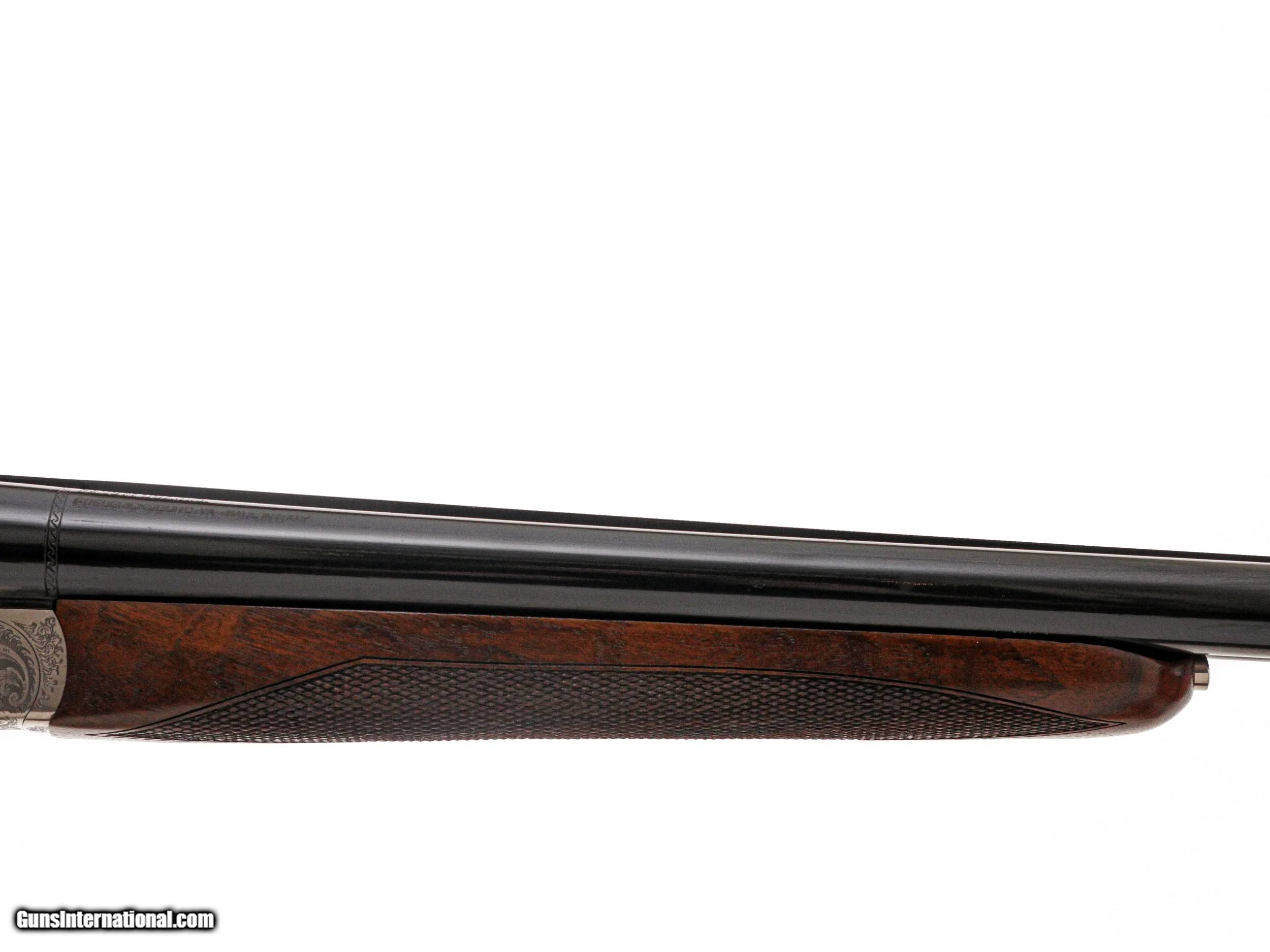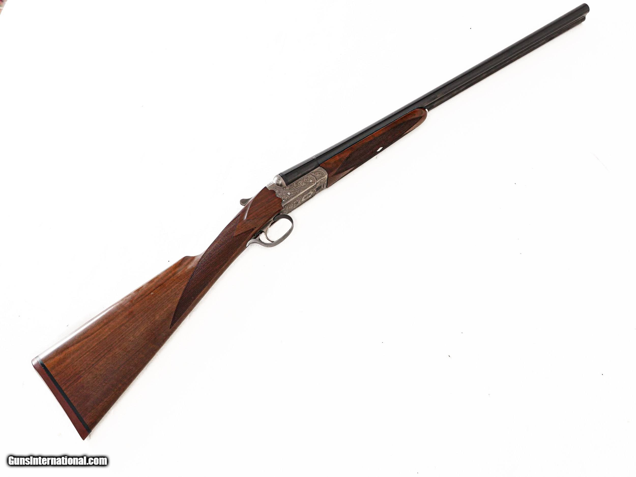 Description: Fausti - SxS, 20ga. 26" Barrels. Screw-in chokes, nicely figured straight grip stock, single trigger, auto ejectors, splinter forend, game rib, thin factory recoil pad, full coverage ornamental scroll engraving over a coin finish, 99% gun, includes factory box. Inv: 50270 6 lbs. 4 oz. 14 ½” x 1 1/2” x 2 3/8” $1,399.00 SOLD |
