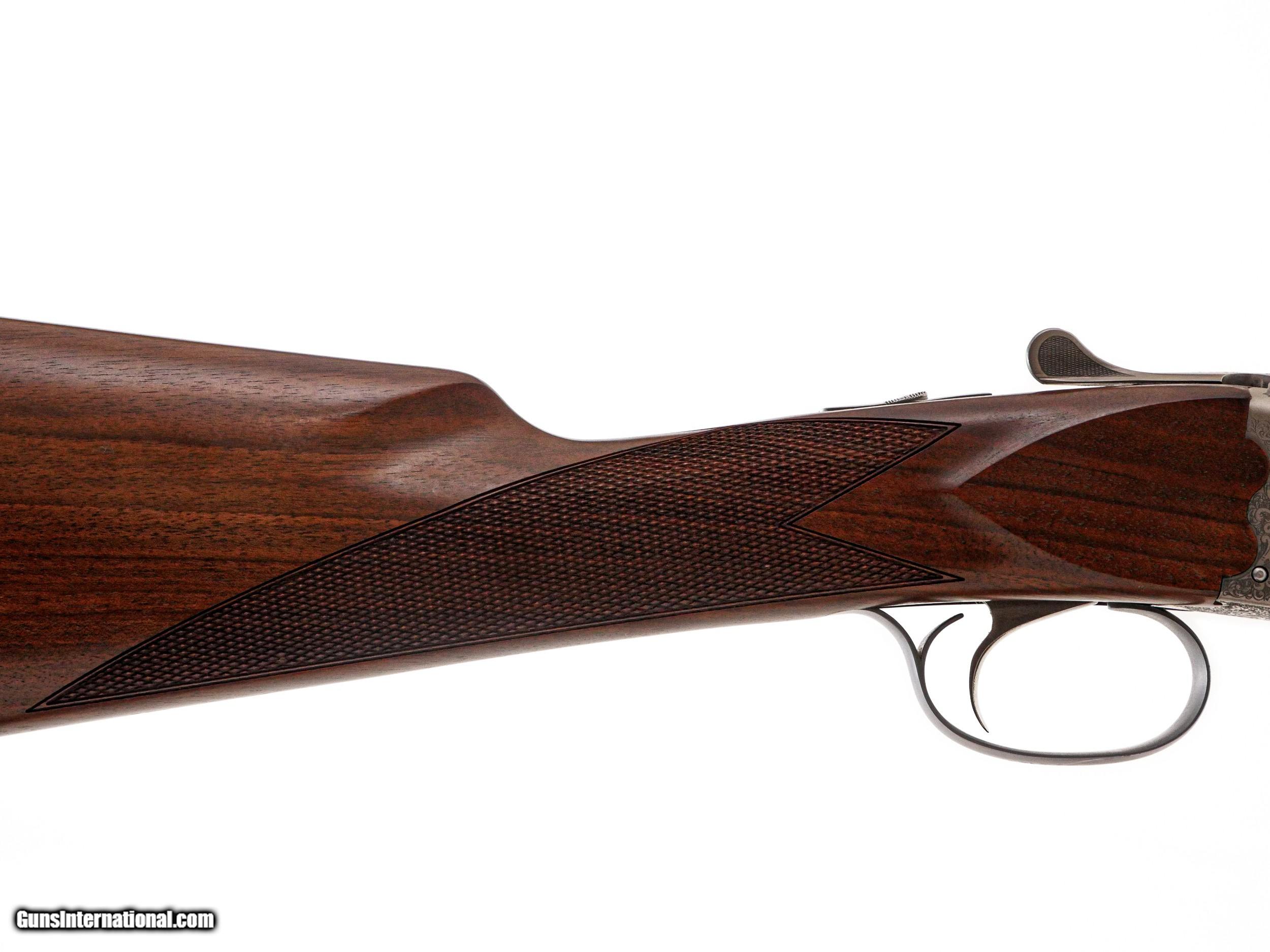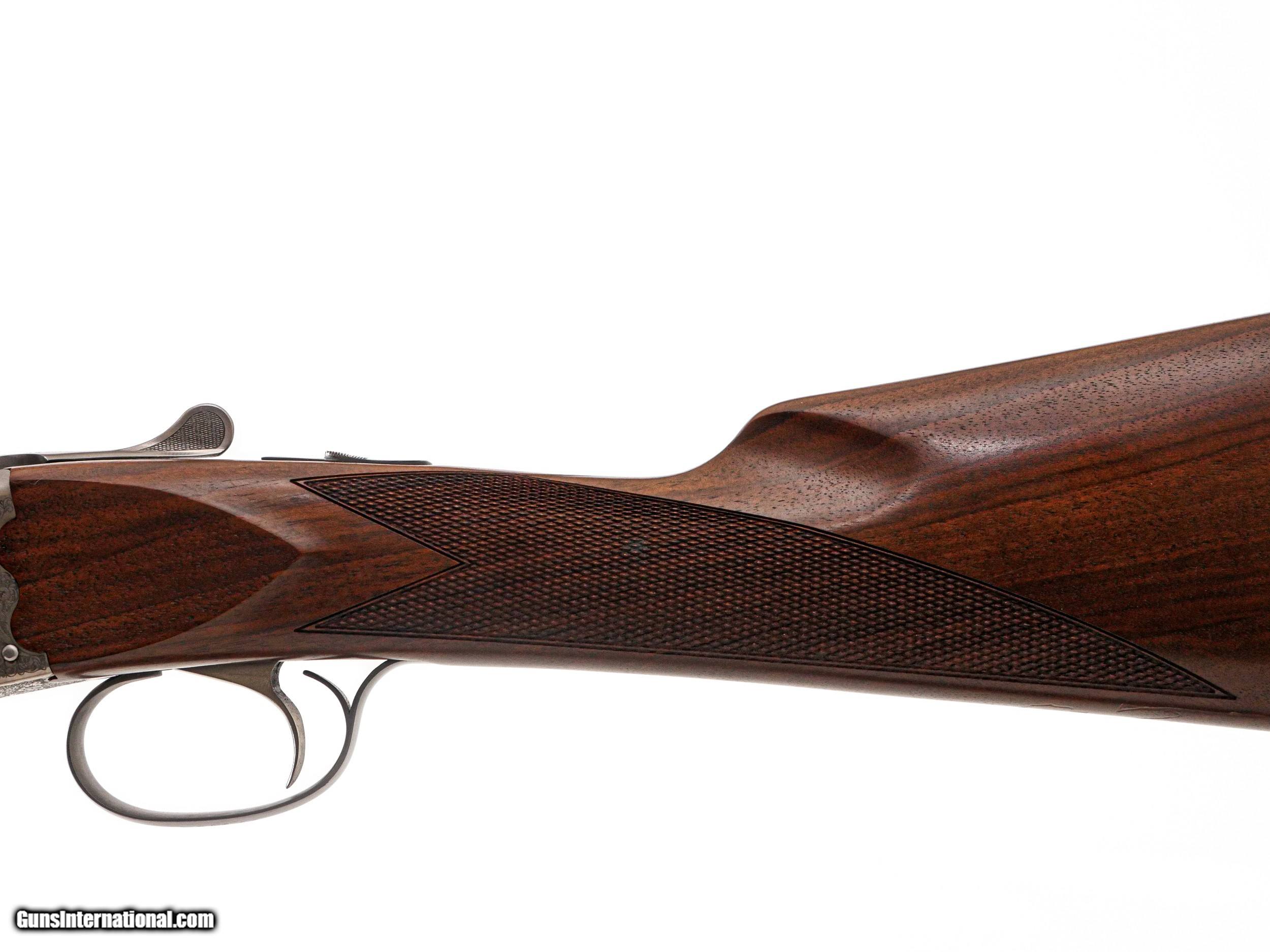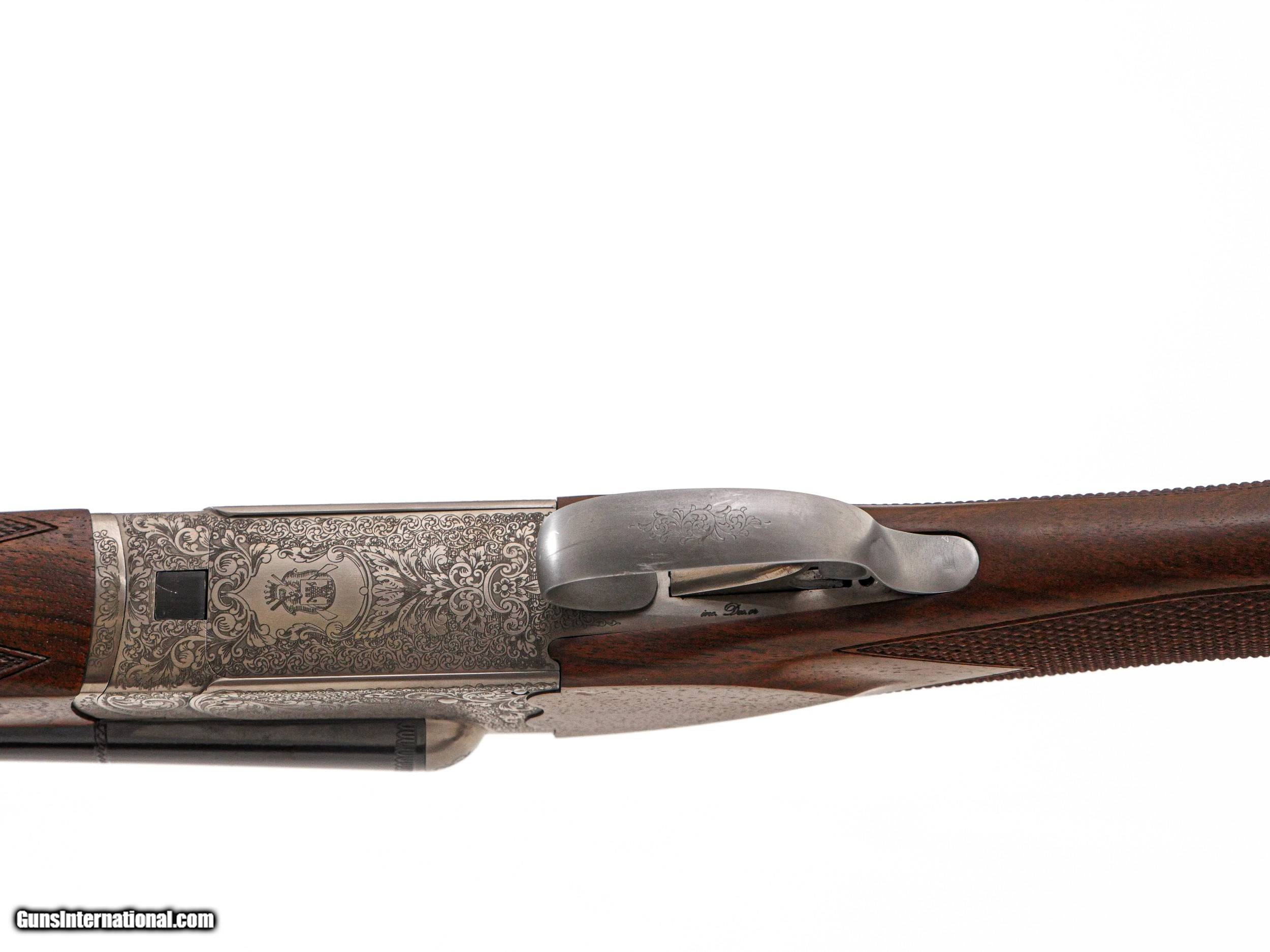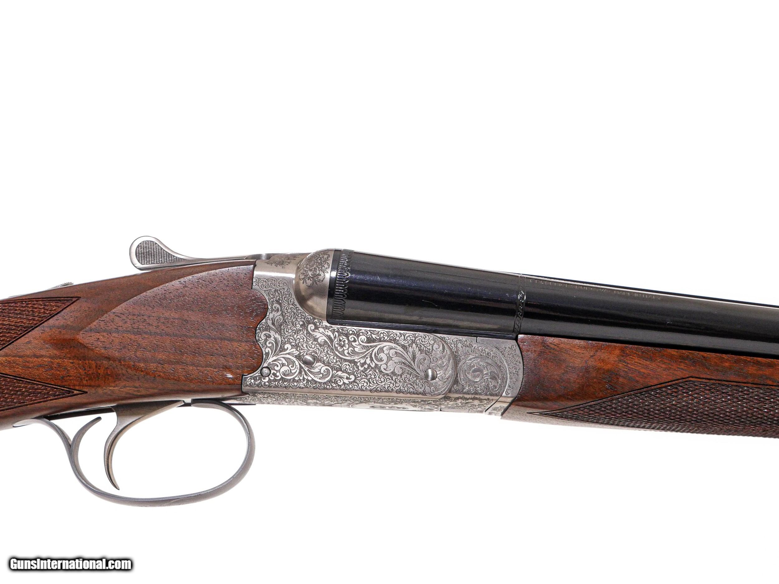 Description: Fausti - SxS, 20ga. 26" Barrels. Screw-in chokes, nicely figured straight grip stock, single trigger, auto ejectors, splinter forend, game rib, thin factory recoil pad, full coverage ornamental scroll engraving over a coin finish, 99% gun, includes factory box. Inv: 50270 6 lbs. 4 oz. 14 ½” x 1 1/2” x 2 3/8” $1,399.00 SOLD |