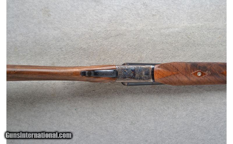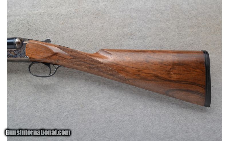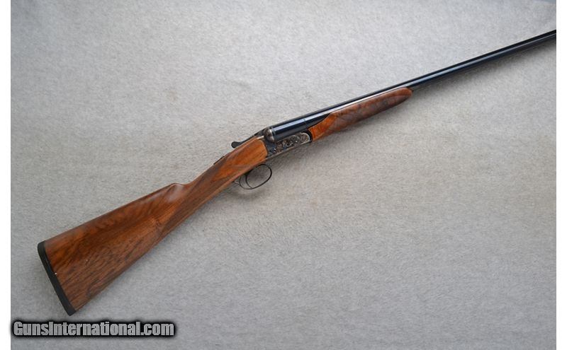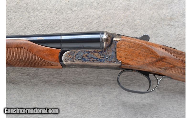 Description: This Fausti Model Verona is a Side by Side 12 gauge shotgun. It has 28 inch barrels with ejectors and a solid rib. A brass bead front sight. The butt stock is a checkered grip walnut straight grip. The forearm is a checkered grip walnut beavertail style. The case colored receiver is nicely engraved with scroll and has game birds in flight and a dogs head profile. 12 Gauge SOLD Chambers: 3 inch. Metal Condition: Excellent Wood Condition: Excellent with some minor handling marks. Bore Condition: Bright and shiny. Barrels: 28 inch barrels with ejectors and a solid rib. Triggers: Single Stock Dimensions: LOP 14 1/4 inches. Fore End: Checkered grip walnut beavertail style. Butt Pad: Black rubber recoil pad. Weight: 6 lb, 14 oz. Sights: Brass front bead. Chokes: "Tubes. Comes with 5 - F, IM, M, IC & Skeet. Item Location: Richfield, WI |