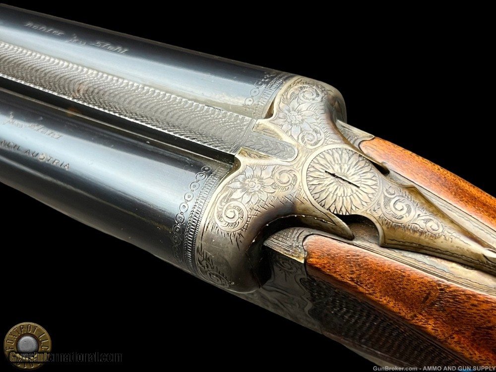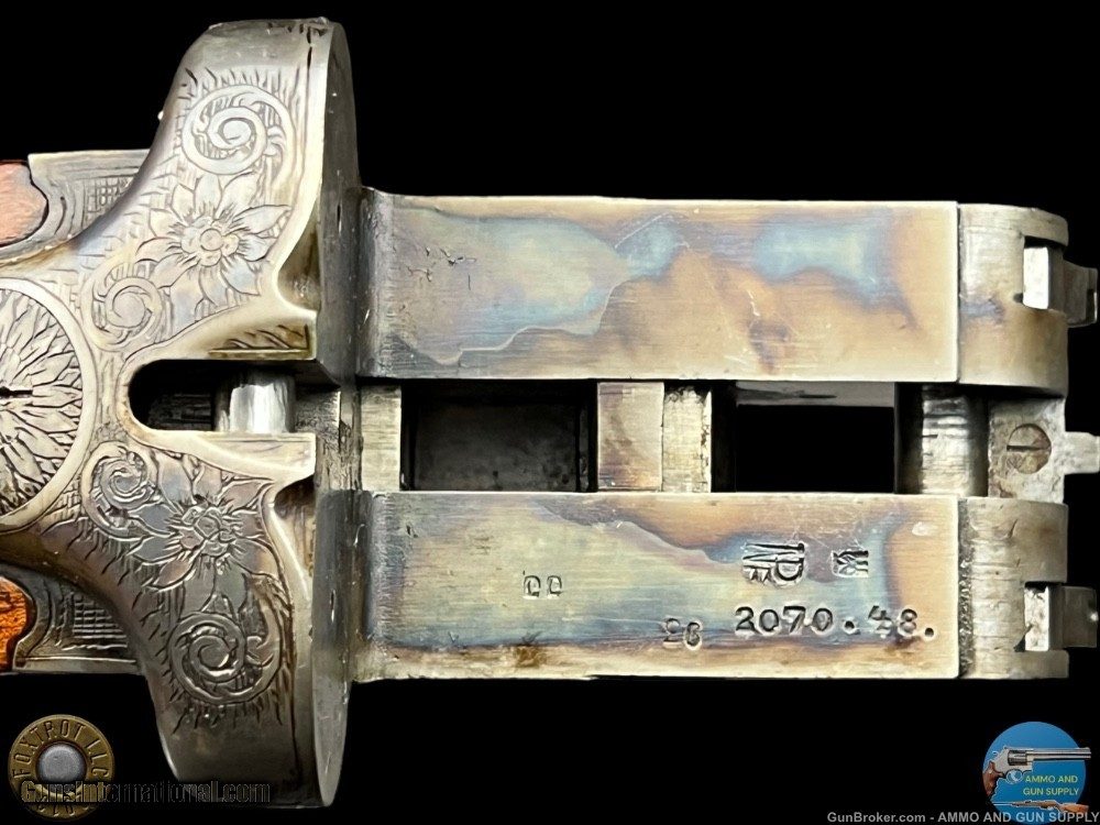 Description: FERLACH GUILD 12 GAUGE SxS MANUFACTURER - FERLACH GUNMAKERS GUILD - FERLACH AUSTRIA MODEL - SIDE BY SIDE SHOTGUN ACTION - BOXLOCK WITH EJECTORS SN - 2070.48 BARREL LENGTH - 28" GAUGE - 12 GAUGE 2.75" CHOKED - MODIFIED / FULL - .010" / .030" OF RESTRICTIONS CAPACITY – 2 DAC - 1.625" DAH - 2.5" LOP - 14.375" WEIGHT - 6 lb 5.2 oz SIGHTS - MATTED SOLID TAPERING RIB WITH SILVER FRONT BEAD PRODUCED - 1948 - .48 DATE CODE - CURIO & RELIC ELIGIBLE Step into the realm of timeless elegance with the Ferlach Guild 12 Gauge Side-by-Side Shotgun, a true masterpiece from the esteemed Ferlach Gunmakers Guild of Austria. Crafted with meticulous attention to detail and unparalleled expertise, this shotgun embodies the pinnacle of European gunmaking tradition. With its boxlock action adorned with graceful ejectors, this shotgun represents the epitome of reliability and precision engineering. The serial number, 2070.48, whispers tales of its origin, dating back to its birth year in 1948, marked by the distinguished .48 date code—a testament to its rich heritage and storied past. Standing proud with a 28" barrel length, this shotgun is chambered for 12 gauge 2.75" shells, offering versatility and power suited for a variety of hunting pursuits. The chokes, modified and full, ensure optimal performance in any hunting scenario, providing versatility and precision with every shot. As your fingers trace along the matted solid tapering rib, your eyes are drawn to the silver front bead, a beacon of precision guiding your aim towards your target with unwavering accuracy. But it's not just its performance that captivates the senses. The beauty of this shotgun lies in its exquisite aesthetics, starting with the exhibition-grade walnut stock that exudes a sense of refinement and sophistication. The checkering on the pistol grip, side panels, and forend not only enhances grip but also adds a touch of artistry to its design—a testament to the skilled hands that crafted it. As you shoulder the shotgun, the leather-covered hard rubber recoil pad ensures comfort and control, allowing you to focus on the thrill of the hunt without distraction. But perhaps the most captivating aspect of this shotgun lies in its intricate engravings, a symphony of artistry and craftsmanship that tells a story of nature's splendor. Adorning the action with floral and scroll borders, the engraving sets the stage for the breathtaking game scenes that adorn its surface. On the left side, three majestic pheasants take flight, their graceful forms captured in stunning detail. Below, two snipes wade through the marshlands, their presence adding a touch of serenity to the scene. On the right side, two hares dart through the underbrush, their agility and speed immortalized in the engraver's art. In every detail, from its performance to its aesthetics, the Ferlach Guild 12 Gauge Side-by-Side Shotgun is a testament to the timeless allure of fine craftsmanship and the enduring spirit of the hunt. With every shot, it invites you to experience the thrill of the chase and the beauty of the natural world in all its glory. FLAT $50 S/H/I. 4%CREDIT CARD FEE APPLIES. FOXTROT IS A LICENSED FFL DEALER WITH MANY POSITIVE FEEDBACKS SO BUY WITH CONFIDENCE! SOLD Curio/Relic: Yes Shotgun Gauge: 12 Gauge |