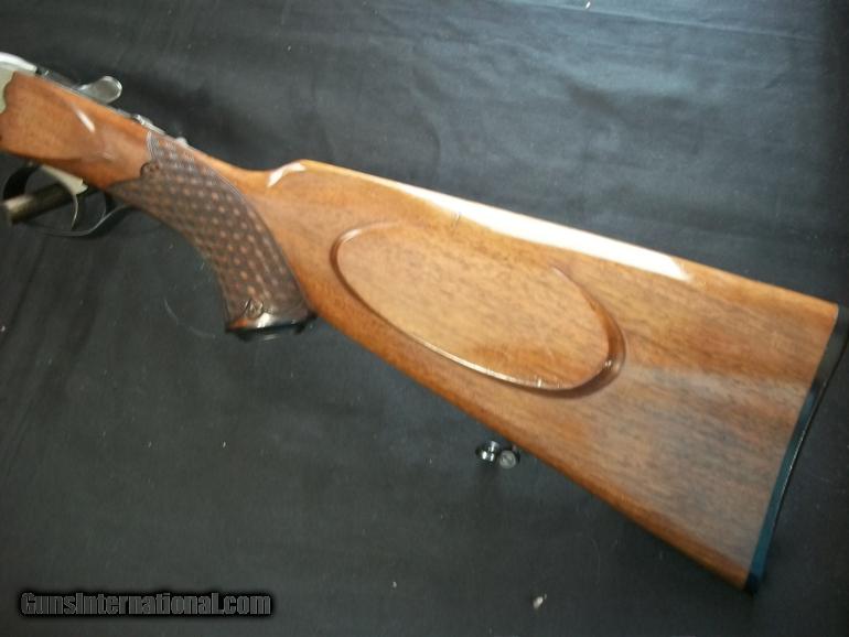 Description: by Josef Hambrusch, (Master Gunmaker), 28 1/2" swamp rib, bbls choked M/IC, single select trigger,extractor, full coverage exitic gamescenes of phesants, ducks & rabbit, gorgeous PG stock,,exquisite diamond cut skipline checkering, European cheekpiece, factory sling swivels, 6 lbs.7ozs, this little shotgun looks inas new condition overall, lightest of handling SOLD |