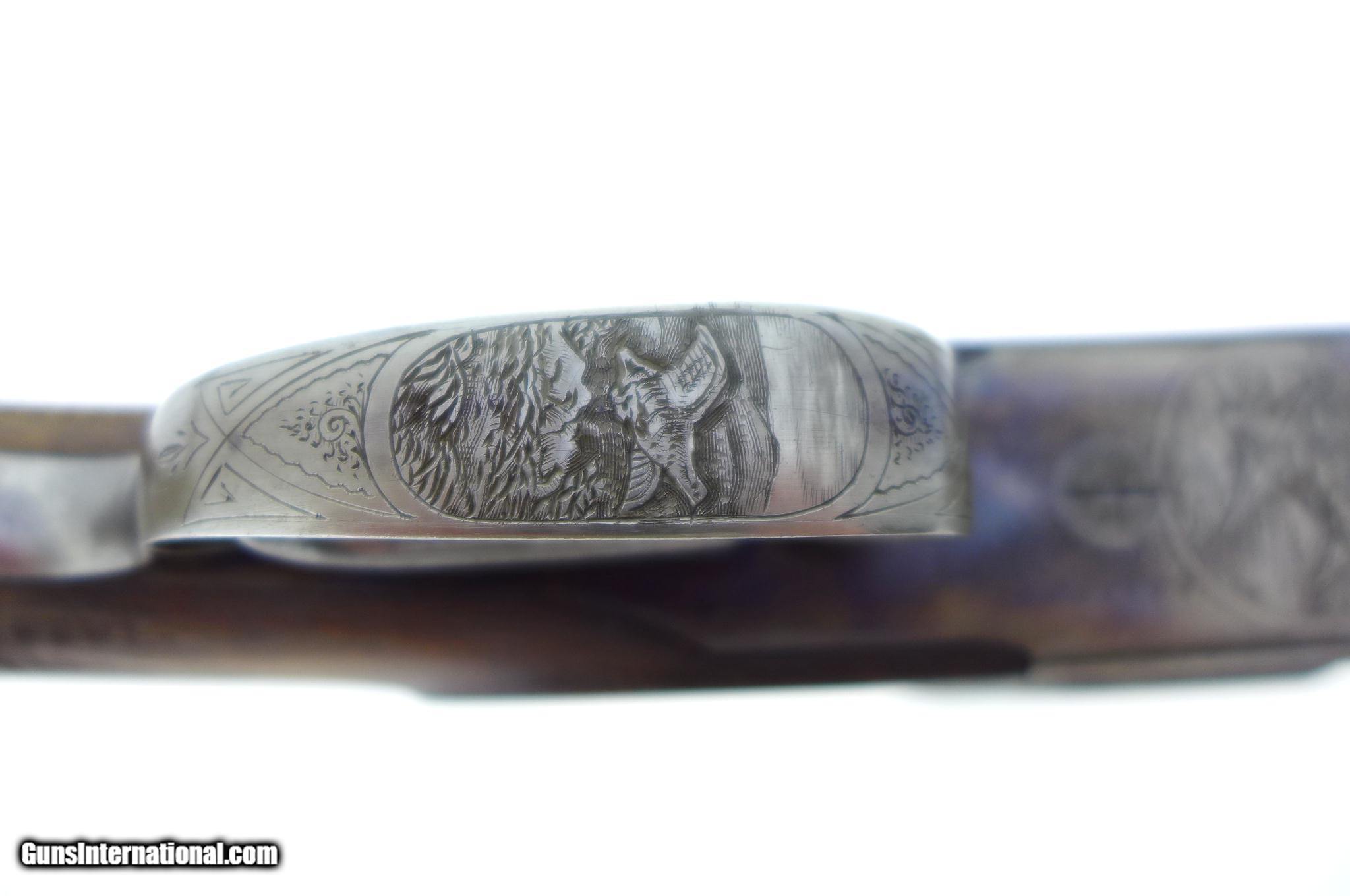 Description: AUGUSTUS FINE ANTIQUITIES GmbH SWITZERLAND VINTAGE AUSTRIAN OVER UNDER SHOTGUNS MADE BY JOSEF HAMBUSCH (1928-2017) ONE OF THE BEST GUNMAKERS IN FERLACH. 12GA 70MM MIRROR BRIGHT BORE, FINE WALNUT STOCK WITH SLIGHT HARLINE SPLITTING AT BOXLOCK SIDE. DOUBLE GREENER, EXTRACTORS, NICE HUNTING ENGRAVING ON RECEIVER. ABOUT 90% BLUE METAL FINISH, OAL=1120MM, LOP=340MM, BARRELS=710MM, H. OVER COMB=42MM, H. OVER HEEL=71MM, WEIGHT=2.8KG ! TOP BARREL=EF CHOKE, LOWER BARREL=F CHOKE. PRICELESS OLD WORLD CRAFTSMANSHIP. TOTAL COST OF SWISS EXPORT, US IMPORT, CUSTOM FEES AND US (CONTINETAL) DOMESTIC SHIPPING IS USD 495. MY US IMPORTER MMB IMPORTS LLC IS GOING TO COLLECT ALL FUNDS FOR THIS TRANSACTION. CREDIT CARDS (+ 3% charge),USPS M.O. PAYMENTS AND CASHIER'S CHECKS WELCOME! By buying this item you acknowledge and agree to the following: a. you have reviewed the description and photos provided; b. you have asked any and all questions PRIOR to ; c. you have used your knowledge and experience in making this buying decision d. you understand the item may be import marked and avarage import time is 8 weeks; e. you understand that the described item is being sold "as is" and that this sale is final with no returns or refunds. PLEASE NOTE: It is the responsibility of the buyer to know and abide by the Gun Laws in your State ! SOLD Manufacturer: J. Hambusch Ejectors: No Metal Condition: Excellent Bore Condition: EXCELLENT Gauge Info: 12GA 70MM Stock Comb: 42MM Stock Heel: 71MM LOP: 340MM Weight: 2.80KG Proof:Nitro: Yes |