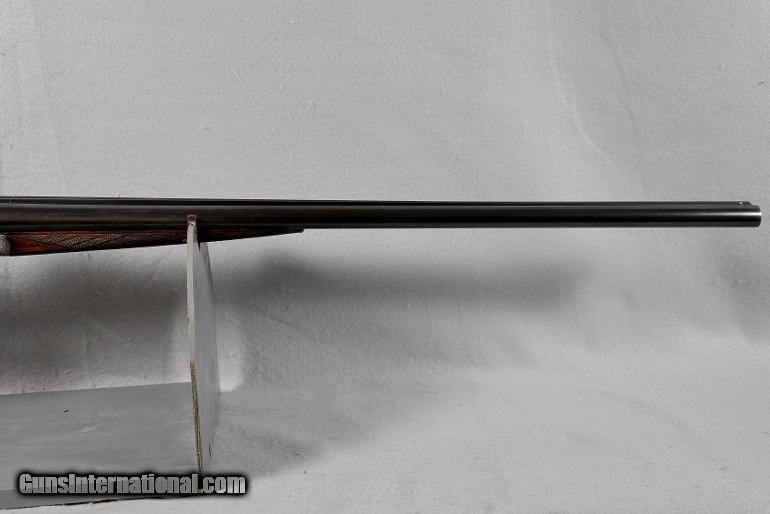 Description: Wincenz (Vinz) Urbas (Ferlach), Austrian double barreled shotgun, Model D, 12 gauge, s/n 36.168 (Mfg. 2/1947), ACCORDING TO THE WATER TABLE AND BARREL FLATS THIS WAS THE 168TH GUN MANUFACTURED BY WINCENZ URBAS FOR FERLACH. IT WAS THE 202ND GUN PROOFED BY FERLACH IN 1947. RECEIVER: double underlocking lugs, hidden crossbolt, scalloped box lock, double triggers, locks up on face tight as a drum, OUTSTANDING SCROLL AND GAME SCENE ENGRAVING ON ACTION AND TRIGGER GUARD (NINE VERY REALISTIC ANIMALS IN GAME SCENES), BARRELS: desirable original 28 ¼” length, 2 ¾” chambers, choked Improved Modified & Xtra Full, AUTOMATIC EJECTORS, excellent bores, hand filed swamped rib, brass bead front sight, marked Vinz Urbas on left barrel and Ferlach on right barrel, barrels retain original blue in excellent condition fading somewhat in areas due to age, barrels touch at end as they should and ring nicely when lightly struck by wooden dowel (no loose soldering issues), STOCK: nicely grained European Walnut, cheekpiece with shadow line, pistol grip with factory grip cap, perfect skip-line checkering on pistol grip and forearm, bone teardrop inlay in buttstock and forearm tip, 14” LOP over factory hard rubber buttplate, DAC 1 1/2”, DAH 3”, comes up nice, long slender splinter forearm with factory Anson & Edge (Deeley) fastener, ORIGINAL FACTORY FINISH IN PERFECT CONDITON, VINZ URBAS IS ONE OF FERLACHS MOST TALENTED, WELL KNOWN, AND RESPECTED GUN MAKERS. THIS GUN IS ORIGINAL AND MECHANICALLY PERFECT HAVING ALL THE DESIRABLE ATRIBUTES THAT ONE WOULD WANT IN A TRUE WORLD CLASS FINE HUNTING OR COLLECTIBLE GUN. Retail value $3500.00, Sale priced at $2995.00 We cater to first time GI buyers. Don't worry, we are real. We provide our phone number as part of our response to your first inquiry. You can purchase from us with total ease and confidence. We will guide you through the purchasing process if need be. We are a Platinum dealer and Verified Seller on GI having placed over 3500 listings so far. GI is the only site on which we advertise. We strive to describe all our sale items accurately and fully and include professional quality photos of each one. Although we offer a 3-day, no questions asked, return policy it has rarely been used the entire 56 years (since 1960) we have been in business under the same ownership. The first potential buyer who states that he definitely wants an item gets it. Those having questions who do not definitely commit to purchase in their first inquiry will have their questions answered but may lose the sale if another buyer e-mails after they do and definitely commits to purchase before we can get back to the first inquirer to answer their questions. This happens almost daily and disappoints a lot of people. If you see something you want- state a definite committment to buy it. You will not be disappointed. WANT TO VISIT A VIRTUAL GUN SHOW ANYTIME RIGHT ON YOUR COMPUTER? The easiest way is to click on the box up in the top right hand side of this ad labelled "SEE ALL LISTINGS BY MARYLAND ARMS COMPANY". Over 100 guns and related items we currently have listed on GI will come up with photos and complete descriptions that are available for purchase right now. USA SALES ONLY UNLESS YOU HAVE PREARRANGED FOR A USA EXPORTER TO RECEIVE THE GUN FROM US AND EXPORT IT TO A DEALER IN YOUR COUNTRY WHO WILL IN TURN TRANSFER TO YOU UNDER YOUR COUNTRIES LAWS AND REGULATIONS. Thank you SOLD Curio/Relic: Yes |