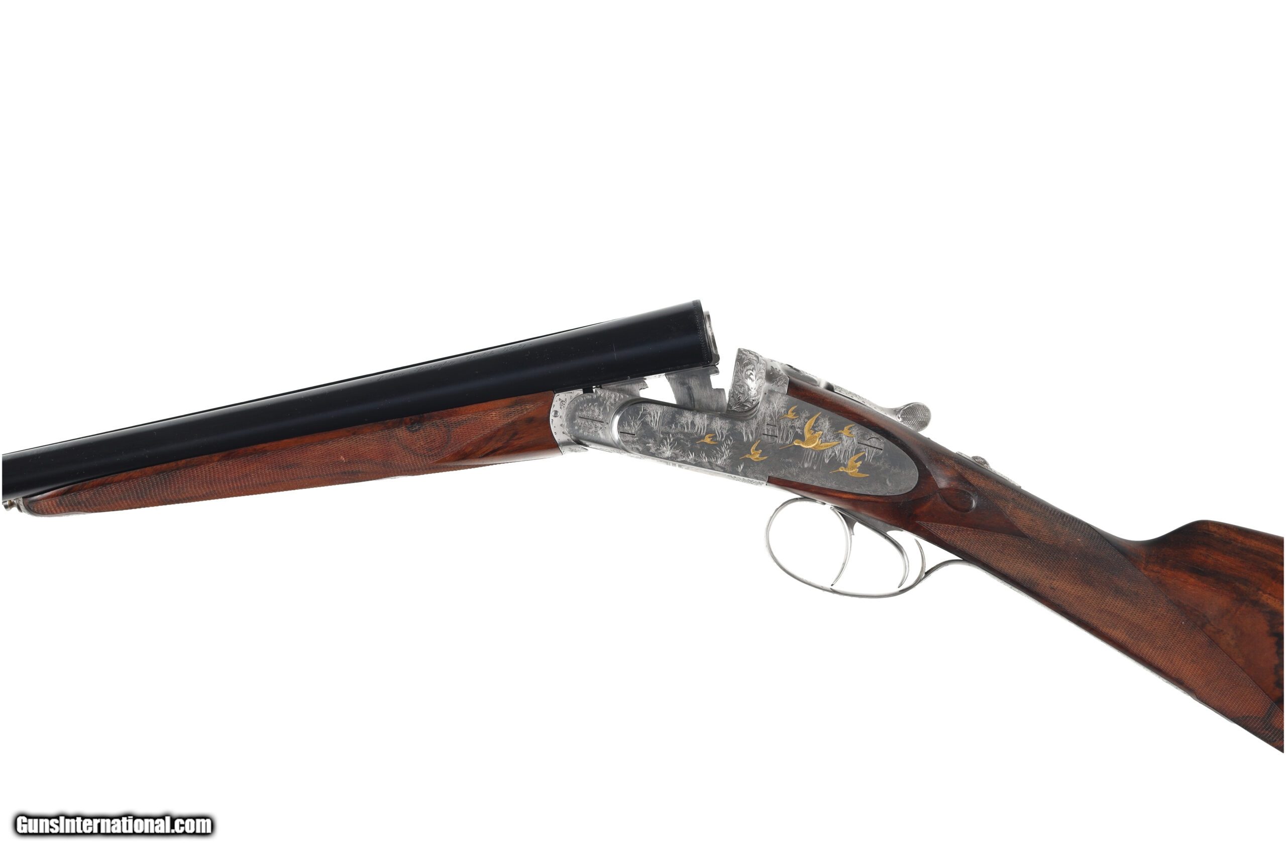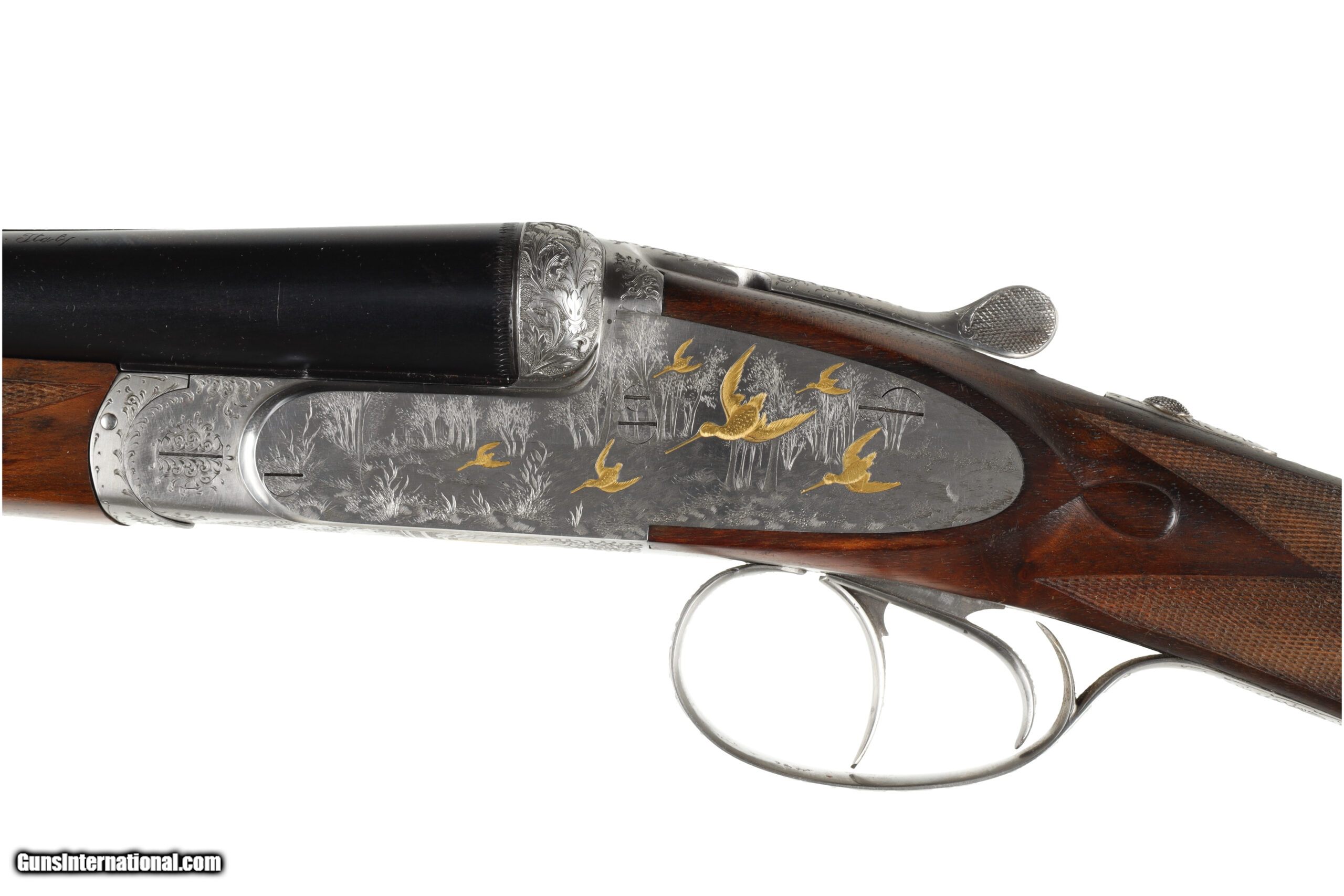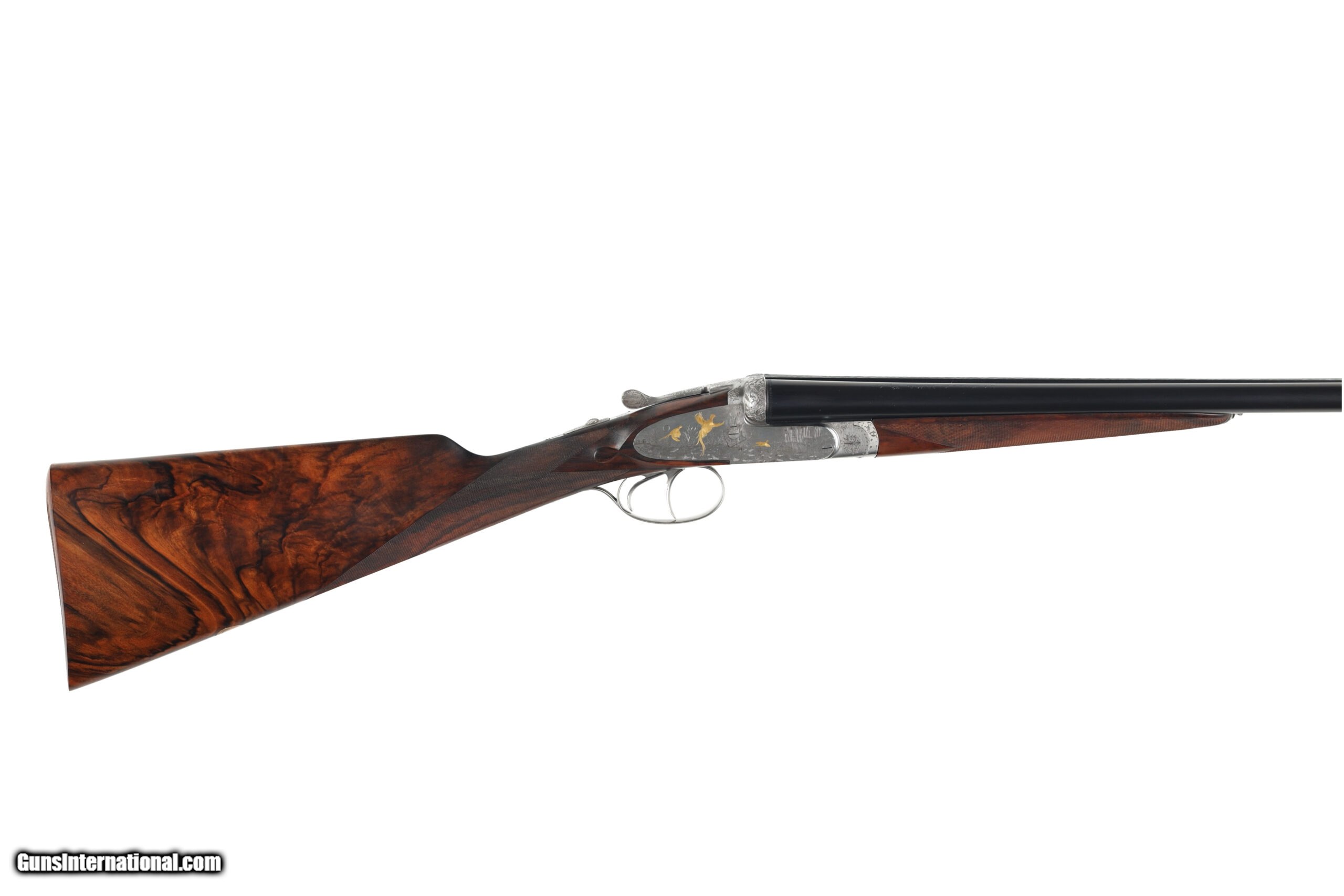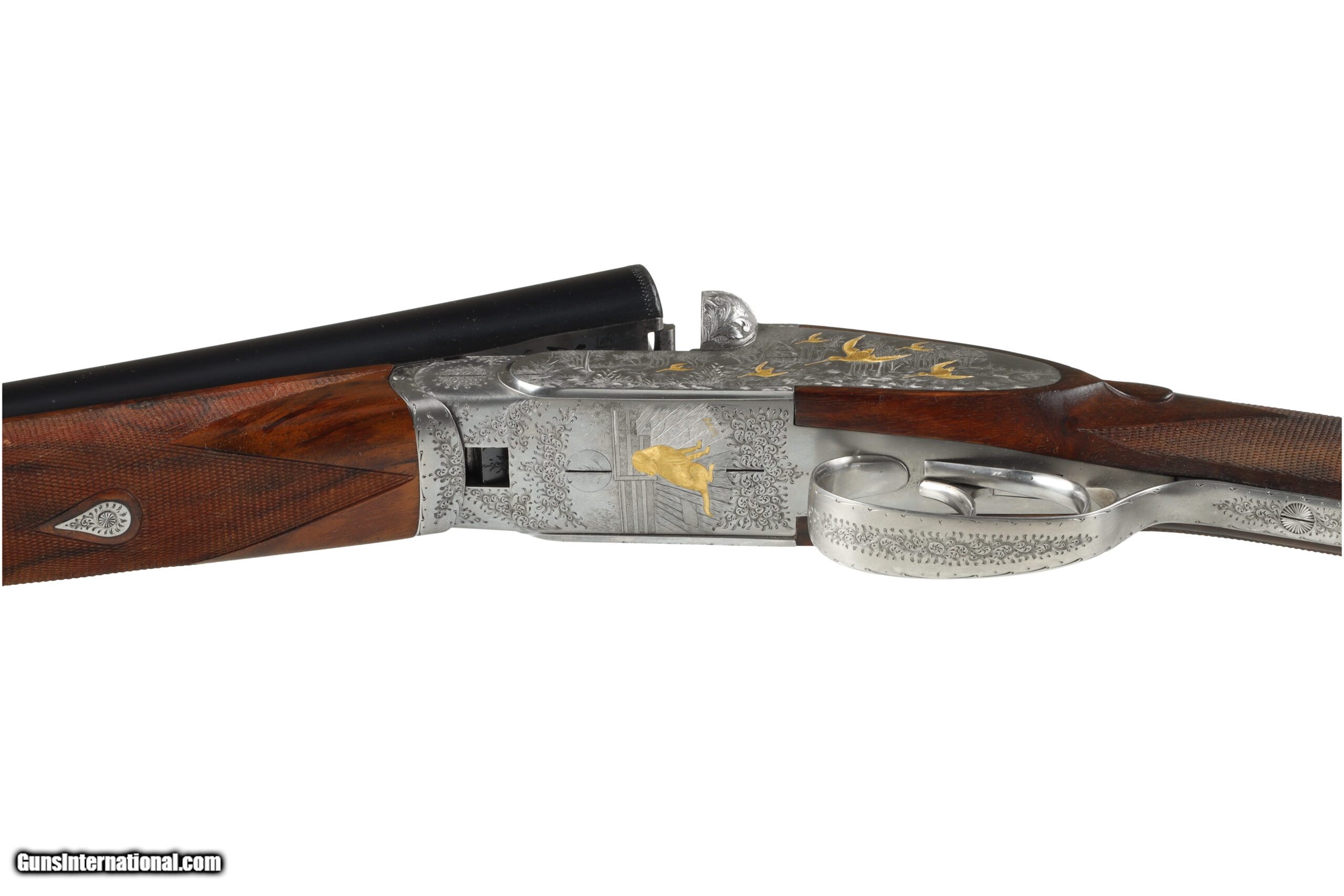 Description: Libero Ferraglio or Ferlib, is an Italian Gunmaker who gas been quietly making excellent quality firearms for many years. This custom side by side made in 1985 is in immaculate condition, and bears all of the hallmarks if fine Italian craftsmanship. Fitted with figured walnut stocks and with a receiver covered in fine game scene engravings and gold inlay, this firearm is truly a sight to behold. Manufactured in: Italy Hand: Right Hand Action Finish: Engraved Metal Finish: Original Barrel Length: 25 Inches Barrel Condition: Very Good Stock Finish: Original Stock Condition: Excellent Type of Butt: Checkered Wood Grip: Straight Grip Forend: Checkered Splinter Cast Amount: 1/2" SOLD Manufacturer: Ferlib Model: Side by Side Chambers: 2 3/4 Ejectors: Yes Condition: Preowned Metal Condition: Excellent Action: Side by Side Triggers: Front Articulated Double Gauge Info: 20 Gauge Stock Comb: 1 3/8 Stock Heel: 2 Stock Cast: Off Fore End: Checkered Splinter LOP: 14 1/4 Rib: Matte Finish: Original Weight: 5.6 lbs Manufacture Date: 1985 Chokes: LM/M Case: Leather Luggage |