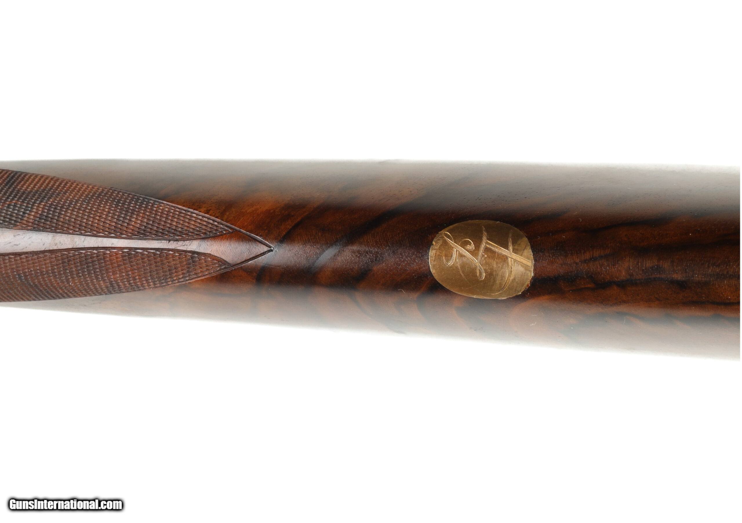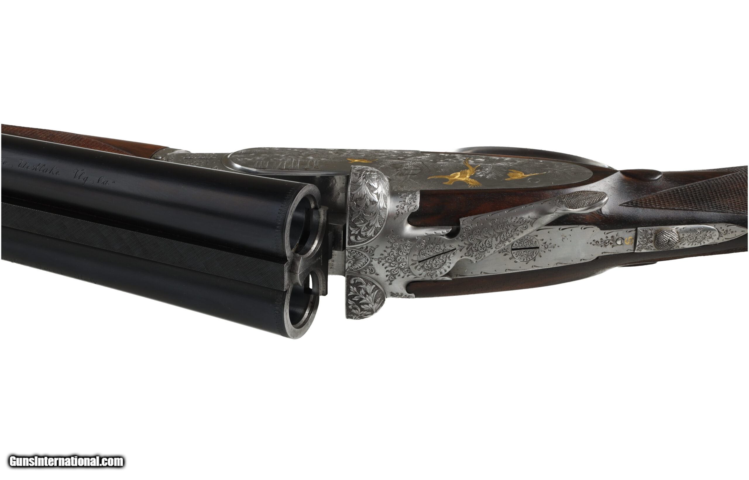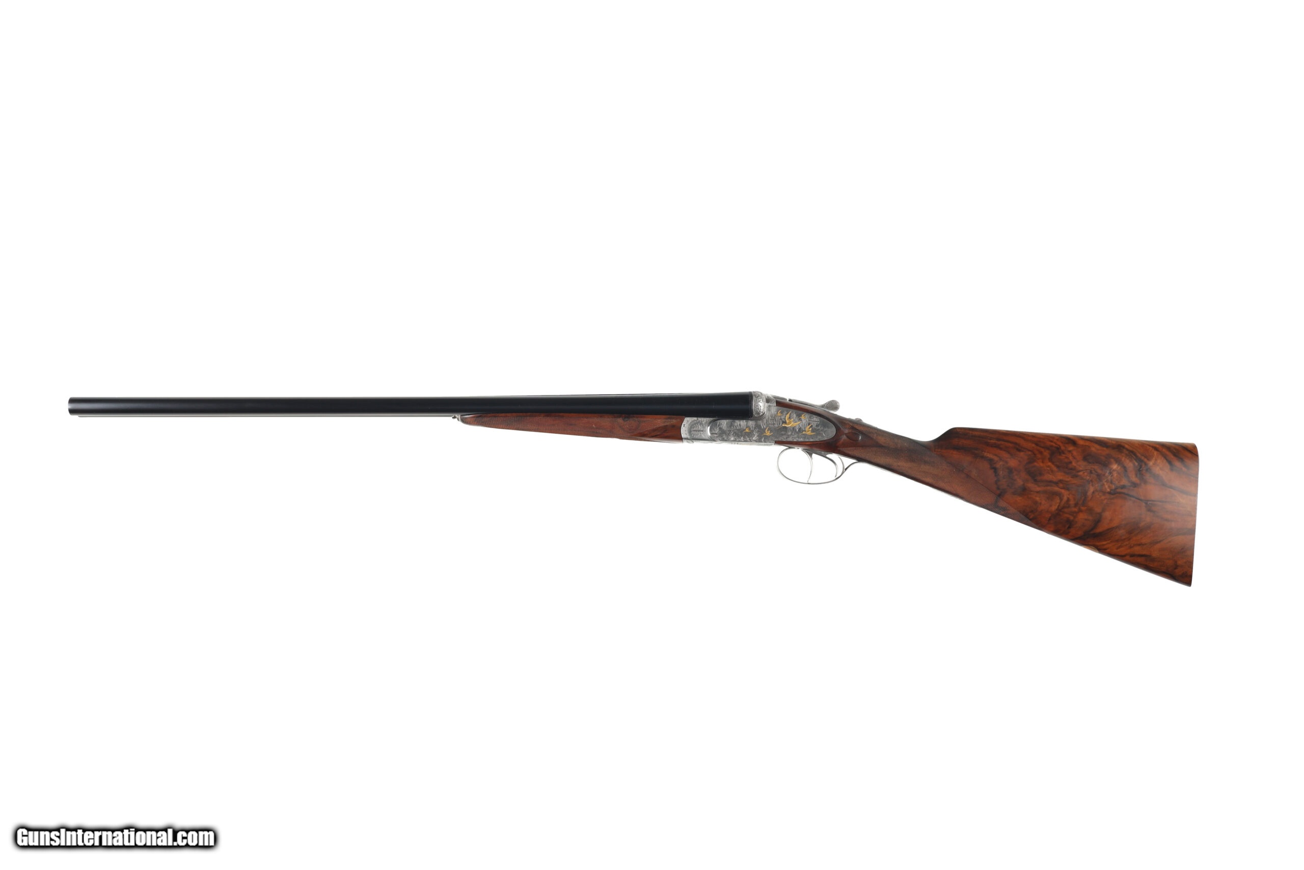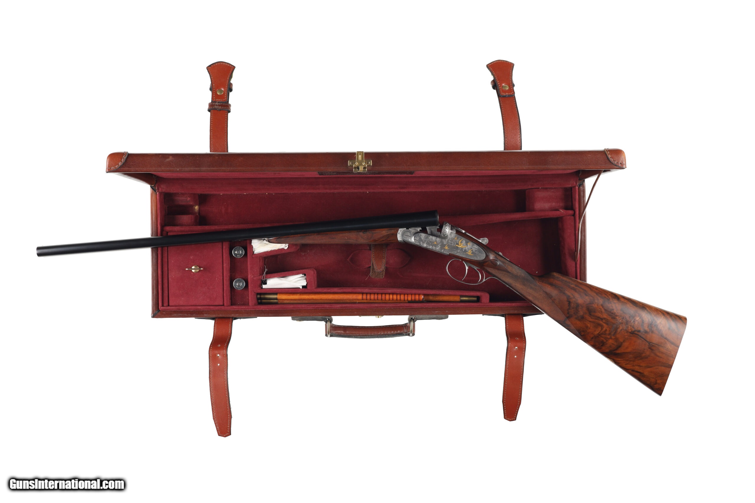 Description: Libero Ferraglio or Ferlib, is an Italian Gunmaker who gas been quietly making excellent quality firearms for many years. This custom side by side made in 1985 is in immaculate condition, and bears all of the hallmarks if fine Italian craftsmanship. Fitted with figured walnut stocks and with a receiver covered in fine game scene engravings and gold inlay, this firearm is truly a sight to behold. Manufactured in: Italy Hand: Right Hand Action Finish: Engraved Metal Finish: Original Barrel Length: 25 Inches Barrel Condition: Very Good Stock Finish: Original Stock Condition: Excellent Type of Butt: Checkered Wood Grip: Straight Grip Forend: Checkered Splinter Cast Amount: 1/2" SOLD Manufacturer: Ferlib Model: Side by Side Chambers: 2 3/4 Ejectors: Yes Condition: Preowned Metal Condition: Excellent Action: Side by Side Triggers: Front Articulated Double Gauge Info: 20 Gauge Stock Comb: 1 3/8 Stock Heel: 2 Stock Cast: Off Fore End: Checkered Splinter LOP: 14 1/4 Rib: Matte Finish: Original Weight: 5.6 lbs Manufacture Date: 1985 Chokes: LM/M Case: Leather Luggage |