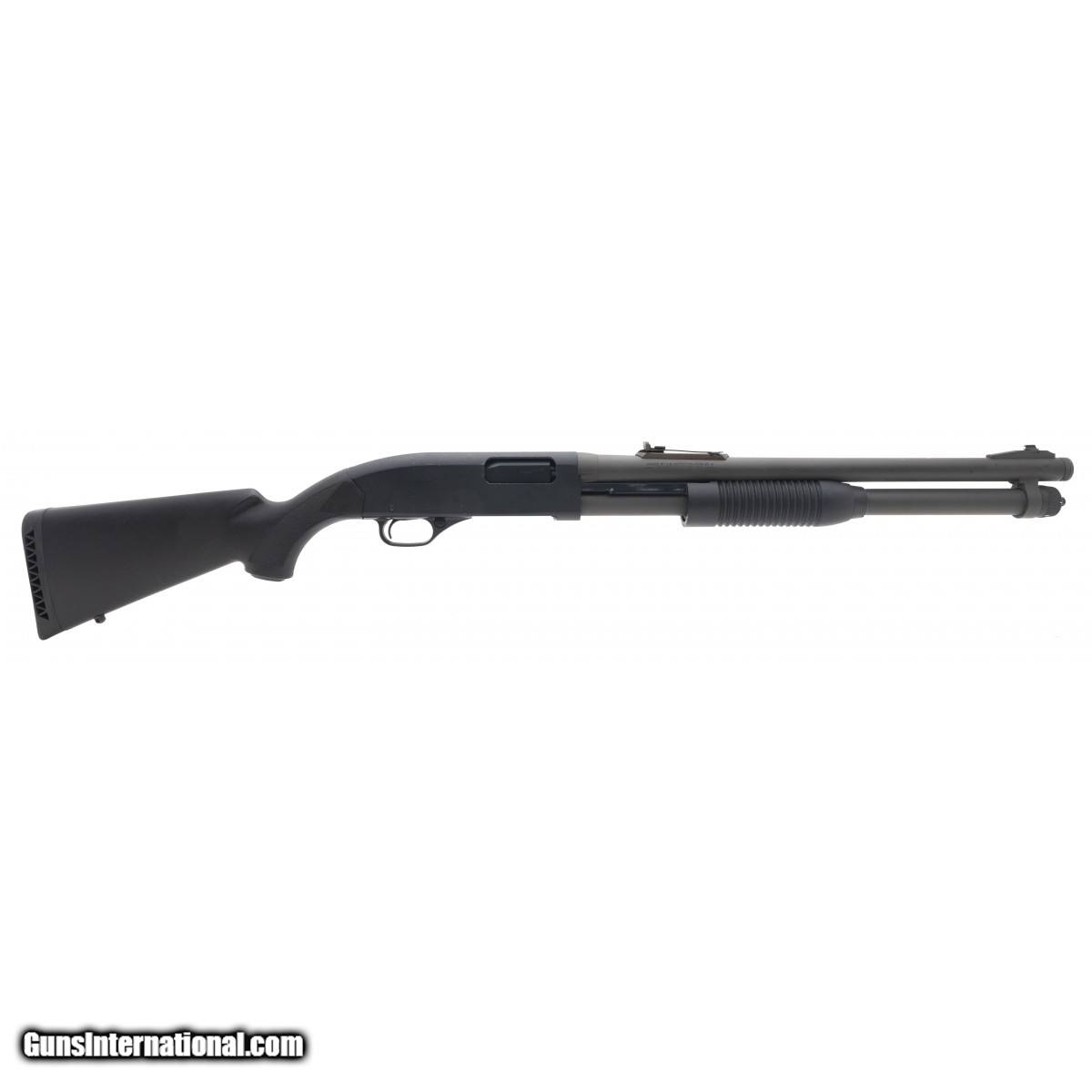 Description: " SN: FL021340. Pump action shotgun with an 18.5 inch barrel, and a ""TAC-choke"" extended modified choke. Has a Rotating bolt. Overall very good condition. SOLD |