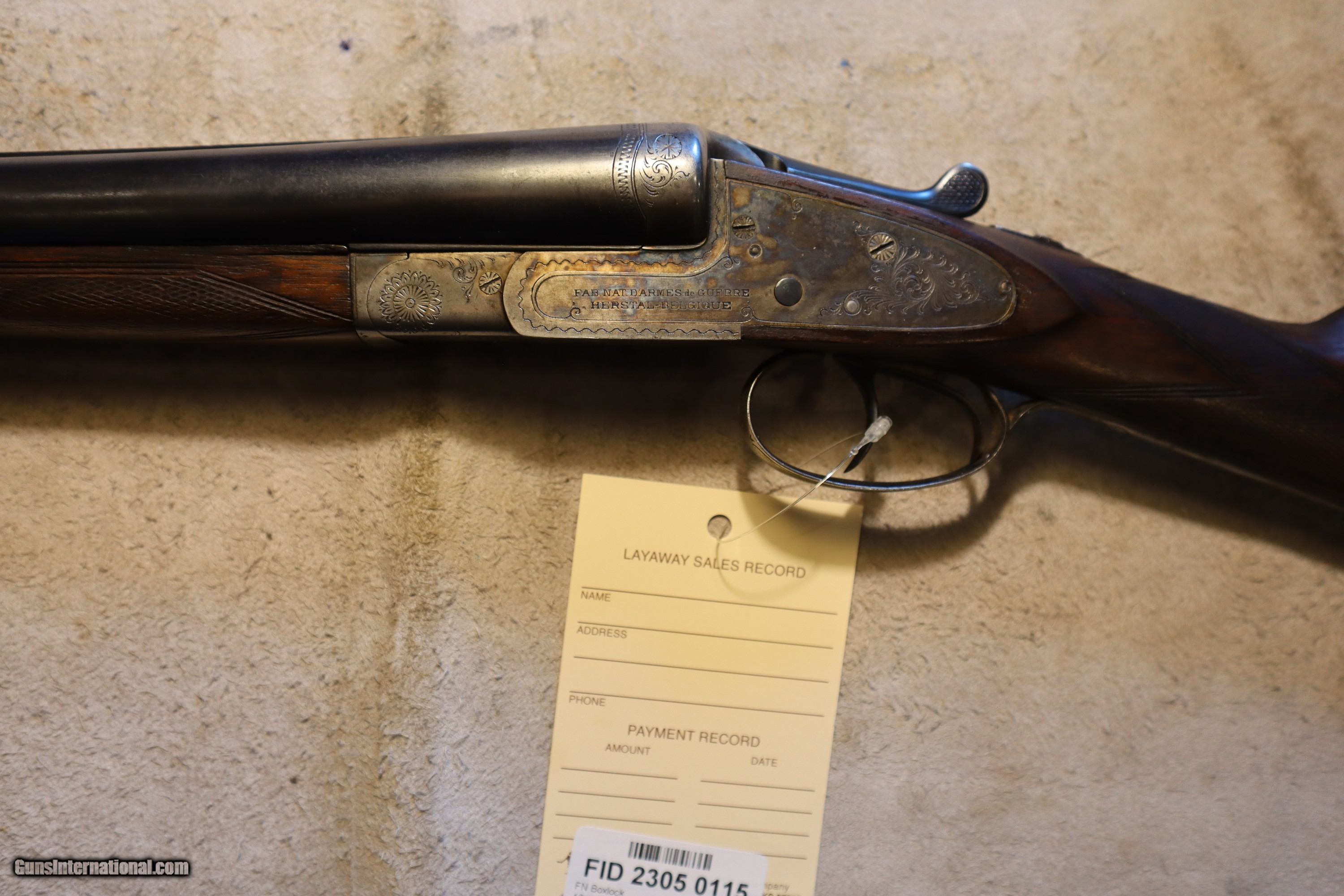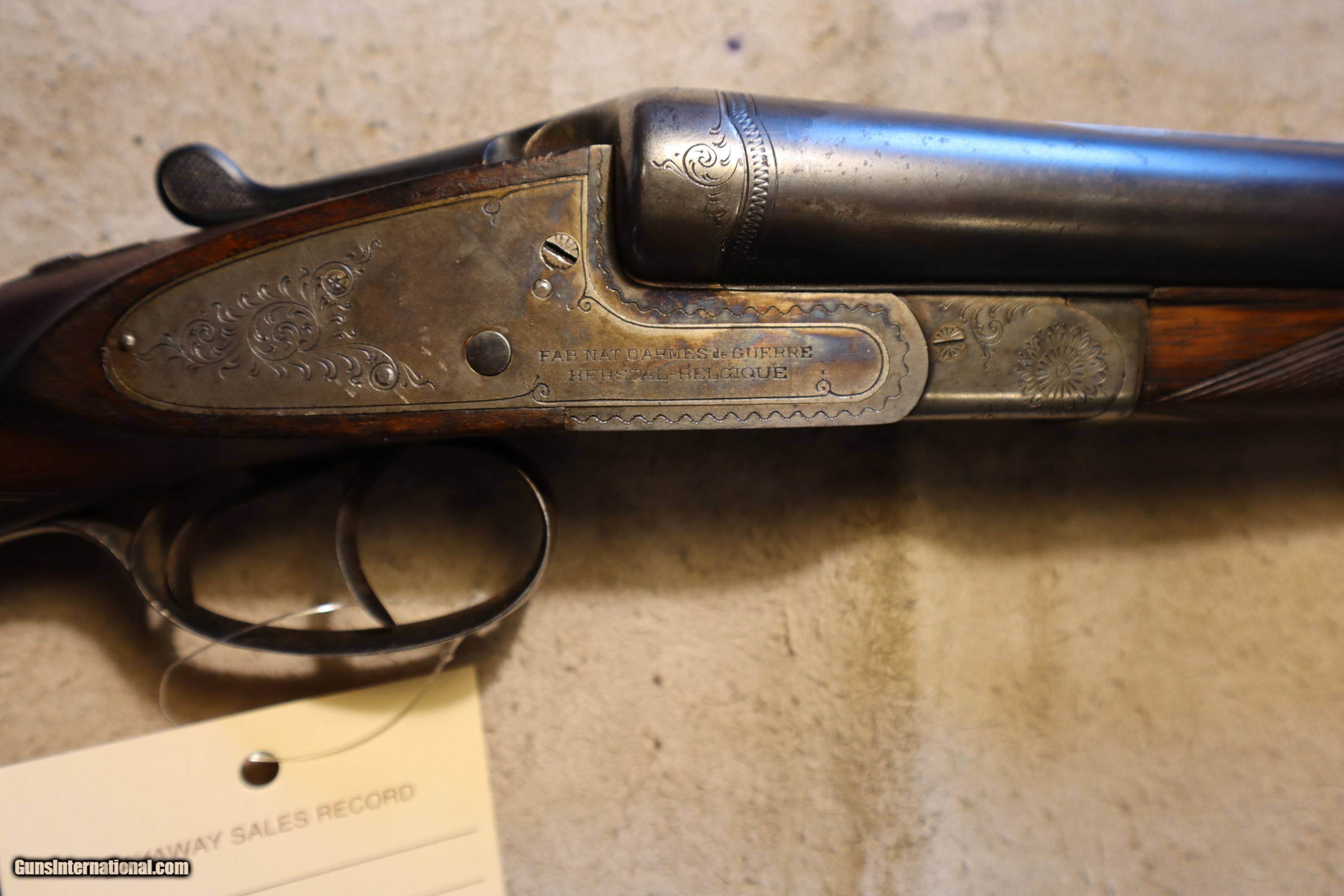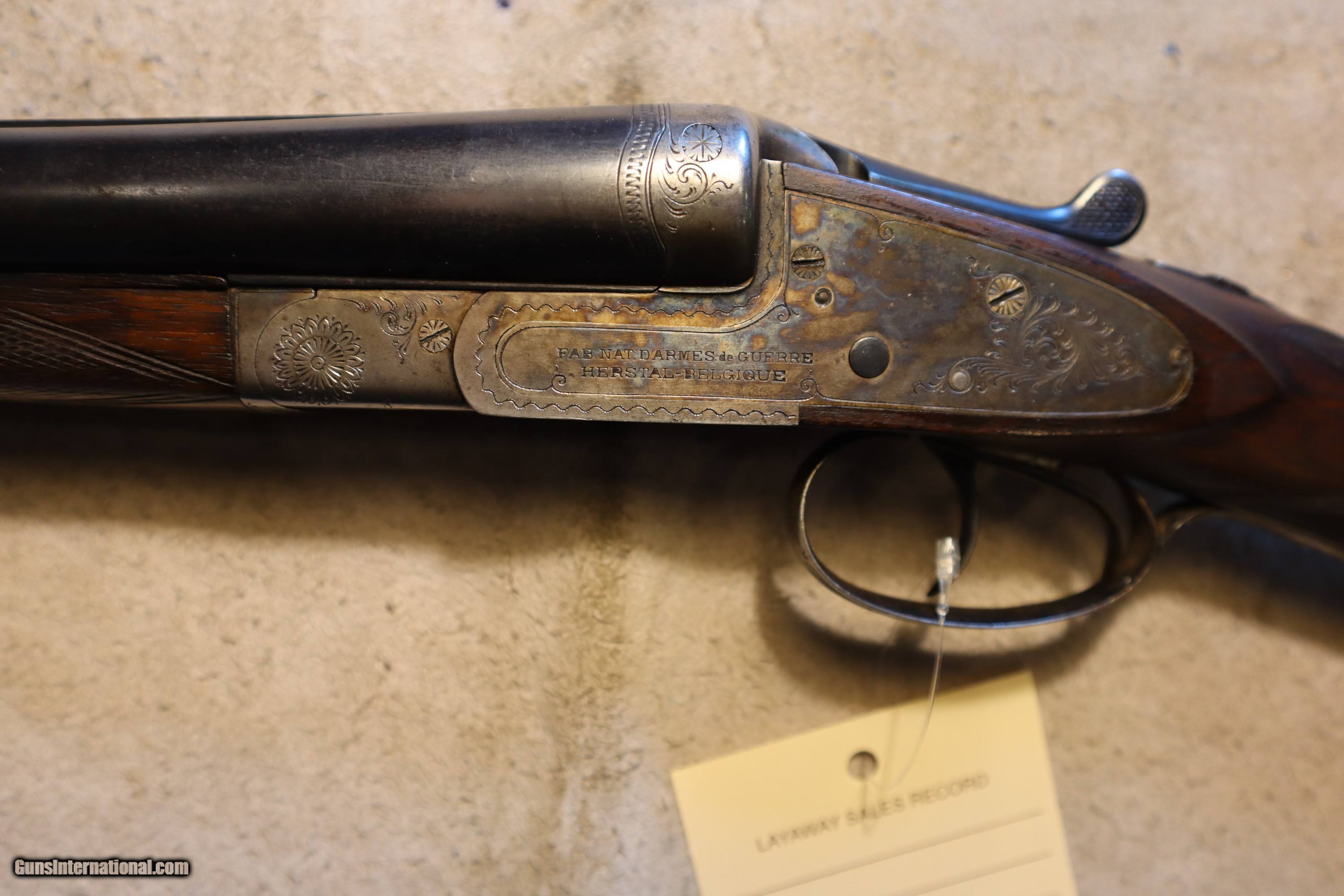 Description: FN Fabrique National Side by Side, Full sidelock, 12ga, 28", double trigger, extractor. SN is 84xx. LOP is 14 3/8" as pictured. Chokes are fixed MOD and FULL (.022/.039). Factory finish on both wood and metal, perfect bores, no rust, no cracks, nice classic gun! We will trade for silver and gold. We accept personal check, any certified funds, Venmo or Zelle. We can also take your credit card, +3%. Email me if you would like these pictures sent to you, they will come through bigger and better than on the listing page here. We do offer Layaway. Our standard terms are 25% down, 90 days. Initial deposit is not refundable. Email me with any questions. Please check your local laws to confirm it is legal to own in your state! Buyer pays $60 shipping and insurance in a brand new PLANO hard case to your FFL in the lower 48. AK, HI or PR is extra. I will ship to California, as long as it is legal, NO PROBLEM! All my guns come with a non-firing, 3 day unconditional return privilege, from the day UPS delivers to your dealer. Buyer pays shipping both ways if the gun comes back. Please make sure to make it to your FFL to inspect within the 3 days. I am a licensed FFL, and will include a copy of my FFL with the gun for your dealer’s records. I will ship to a C&R if the gun is eligible. I will ship to California, but you need to confirm the gun is legal where you are, California or other. WE BUY AND CONSIGN GUNS AND GUN COLLECTIONS! We will travel to pick up collections! I am always looking for good clean, old original Winchesters to buy, consign, or trade, especially Pre '64's model 70's and model 54's. WE ALSO TRADE FOR CLASSIC CARS AND TRUCKS! We also trade for gold and silver. SOLD Shotgun Gauge: 12 Gauge Manufacturer: Fabrique National Model: Sidelock Barrel Length: 28 Condition: Used |