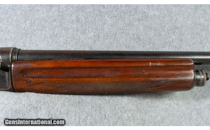 Description: FN marked A5 receiver, 4 digit serial number with an X or Y in a box stamped under the serial. Receiver is blue/gray turning brown in areas English style stock with faded checkering from wear, and swivel hole, (swivel is missing) and FM marked Bone butt plate. 4 digit Serial dates to 1910 (in the 1910-1914 number block) Barrel is 26" from mouth of chamber to end of PolyChoke, nice bright bore. PolyChoke moves freely Barrel has Browning address on top, Cylinder 16 Special Steel on left side, Made in Belgium on right side Serial number on barrel indicates 1926 (number on boss for ring) Belgian proofs all over Handguard is short approximately 1/8 inch, as in is loose at the receiver end Handguard is not marked in any way, usual fine crack most seem to have, not reinforced on the inside. Mag tube cap has swivel installed An interesting mix of old Browning and older FN parts. 16 Gauge SOLD Curio/Relic: Yes Chambers: 16 Ga Metal Condition: Fair/Good Wood Condition: Fair / God Bore Condition: Bright Barrels: 26" Barrel Stock Dimensions: 14" LOP Fore End: Walnut Butt Pad: FN Bone Chokes: Poly Choke Item Location: short pump |