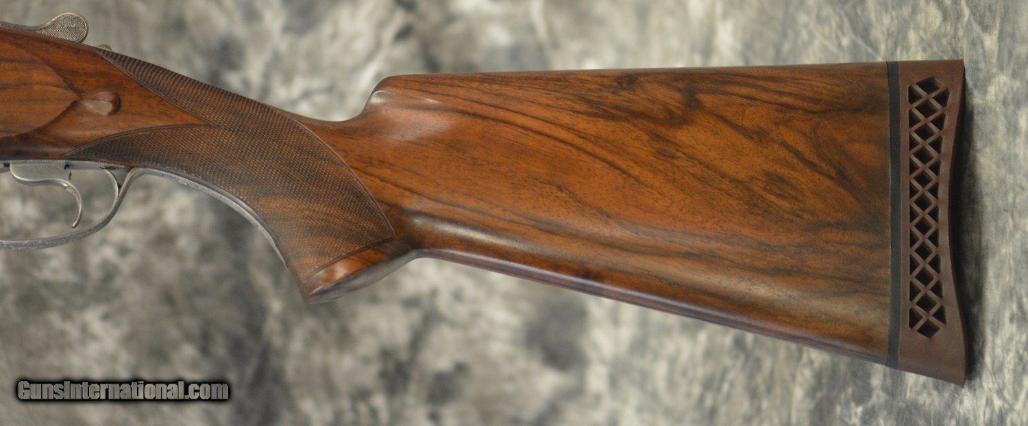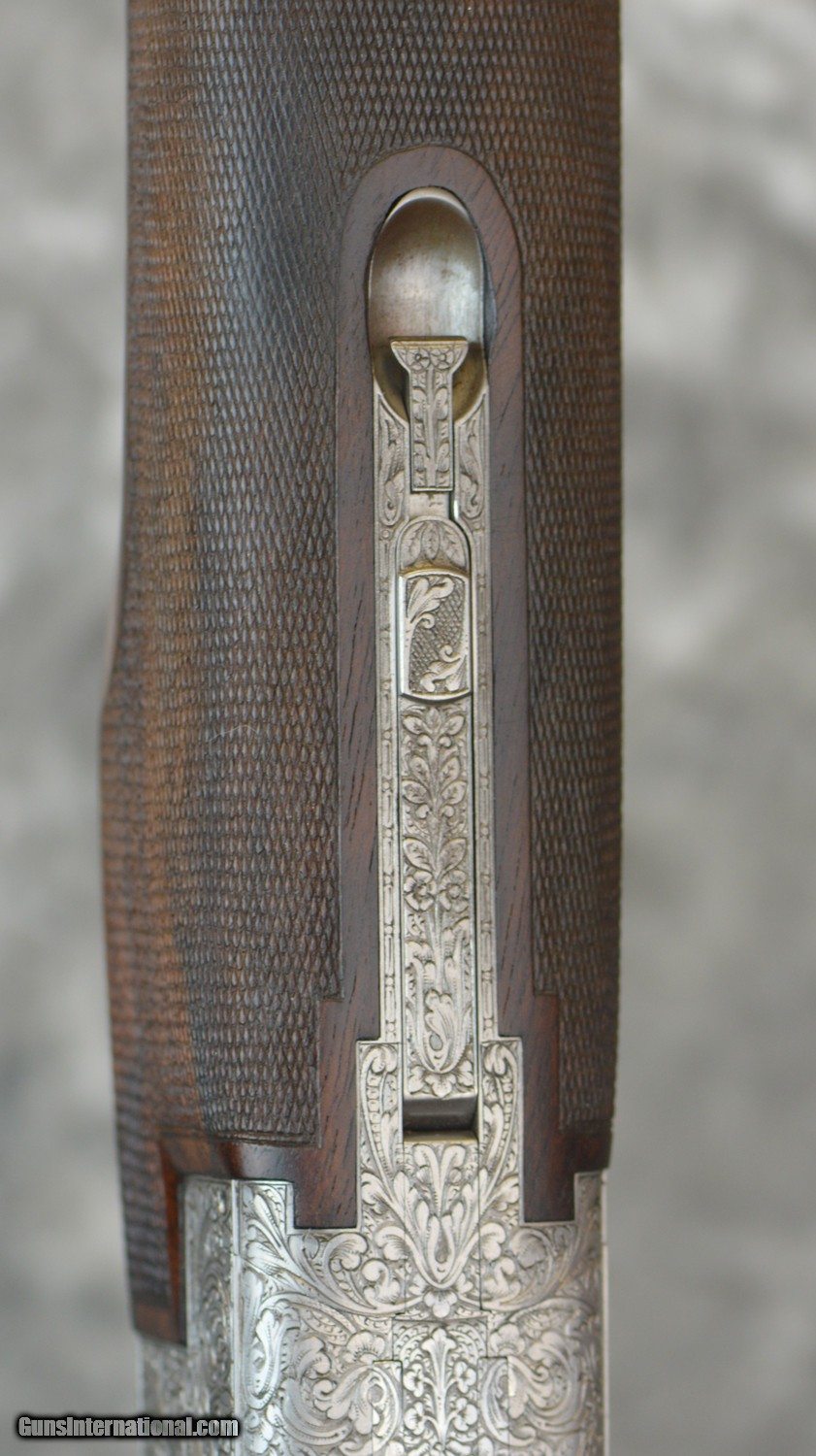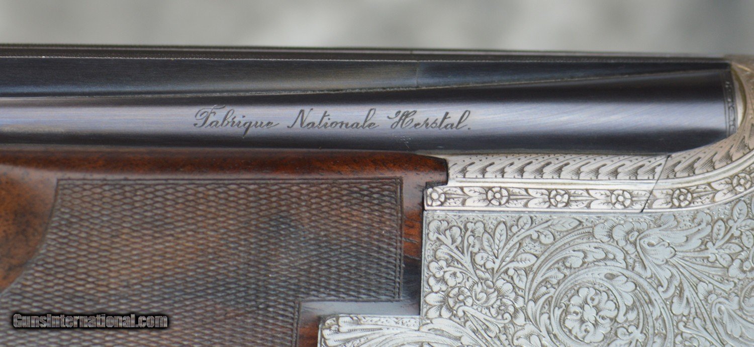 Description: Pre-Owned FN Herstal (Browning) B25 Broadway Trap D5 Grade 12GA with 30" .724 Bore fixed choke (.030/.040) barrels, hand filed "Broadway" rib. Coin finished fully hand engraved "D5" grade action featuring highly detailed ribbons and scrolls by Master Engraver G. Renaers, engraved long tang and trigger guard. Very minor darkening of portions of action, minor bluing wear on barrels. Factory pistol grip stock with no palmswell to the following dimensions: 14" LOP to the center of the concave pad (14 3/8" if the pad were flat) 1 1/2" DAC and 1 5/8" DAH with completely neutral cast and no palmswell, fully checkered beavertail trap forearm. Minor handling marks and finish wear on stock and forearm. Gun weighs 7lbs 12ozs. Does not include factory case, but will be shipped in hard case. SOLD Shotgun Gauge: 12 Gauge |