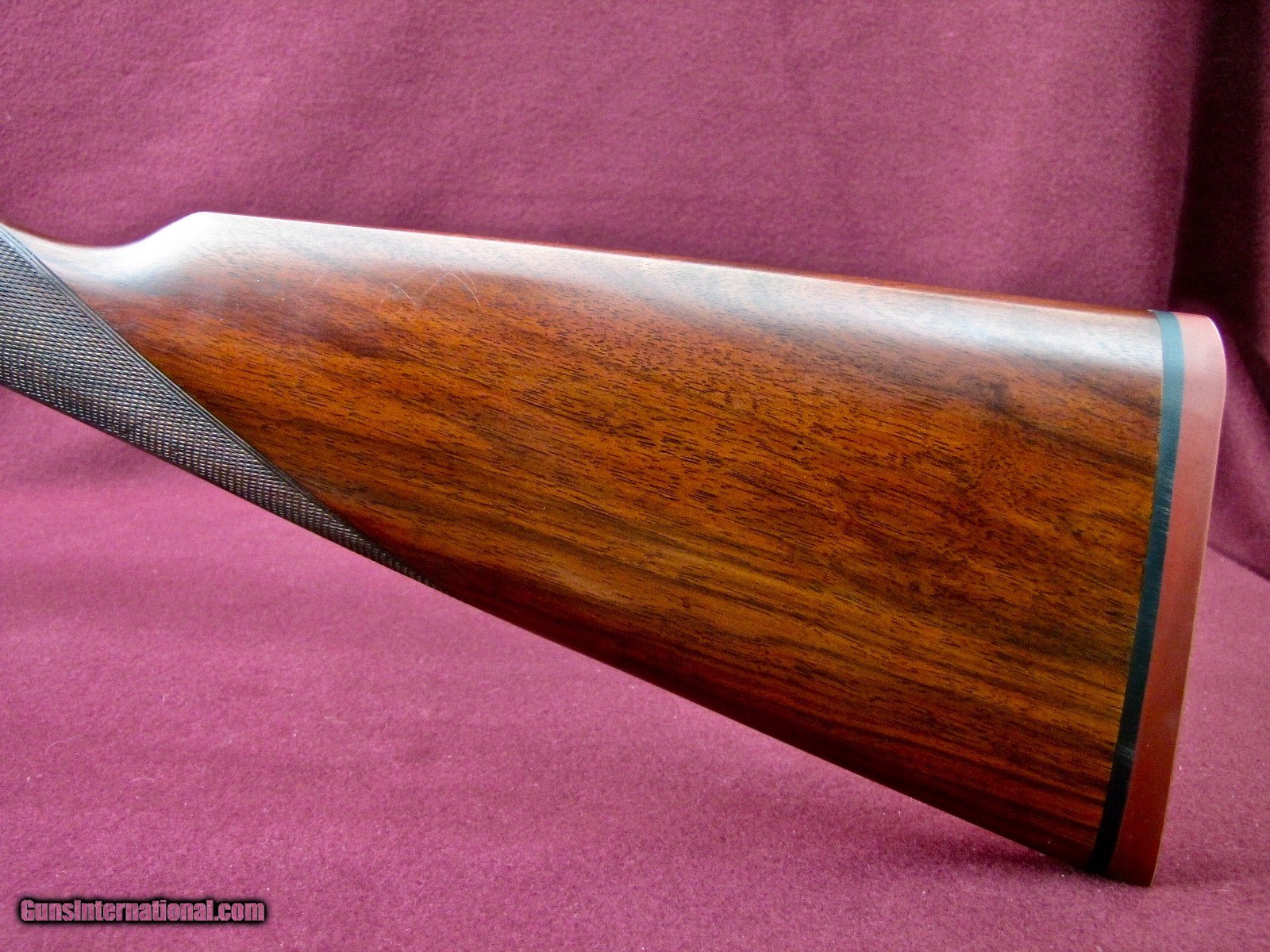 Description: I have for sale a very nice and high quality Fabrique Nationale 7 pin 12 gauge sidelock. These guns while not elaborate in decoration, are very high quality at a modest price. This gun comes with 30 inch barrels and the chambers have been opened to 3 inches. Barrel bores measure .724 right and .723 left. Choke constriction is .009 or improved cylinder right, and .023 improved modified on the left. This gun has ejectors, which are crisp and well timed, double triggers with excellent trigger pulls, bushed firing pins, straight grip and splinter forend with Anson latch. Stock dimensions are 1 1/2 X 2 1/4 X 14 3/4 over a 1/2 inch solid rubber pad. Stock is cast off for the right hand shooter. Gun originally had sling swivels and most Belgium guns did and these have been very nicely removed. Weight of the gun is 7 pounds 4 ounces and balance is just forward of the hinge pin giving great balance and follow through on shots. Condition of the gun is excellent with only a few light marks to metal and wood. Price of the gun is $2900 plus $50 shipping to your FFL. You will be hard pressed to find a higher quality gun at this price point. Contact me at with any questions. As always there is a three day non-firing inspection period with the buyer paying shipping charges if returned. SOLD Manufacturer: Fabrique Nationale Model: Sidelock Chambers: 3 Ejectors: Yes selective well timed Metal Condition: Excellent Wood Condition: Excellent Bore Condition: Excellent Barrels: 30 inches Action: Full Sidelock Triggers: Double Gauge Info: 12 Stock: Straight English Stock Comb: 1 1/2 Stock Heel: 2 1/4 Stock Cast: Off for Right Hand Shooter Fore End: Splinter LOP: 14 3/4 Over Solid Pad Weight: 7 pounds 4 ounces Choke Left: Improved Modified Choke Right: Improved Cylinder |