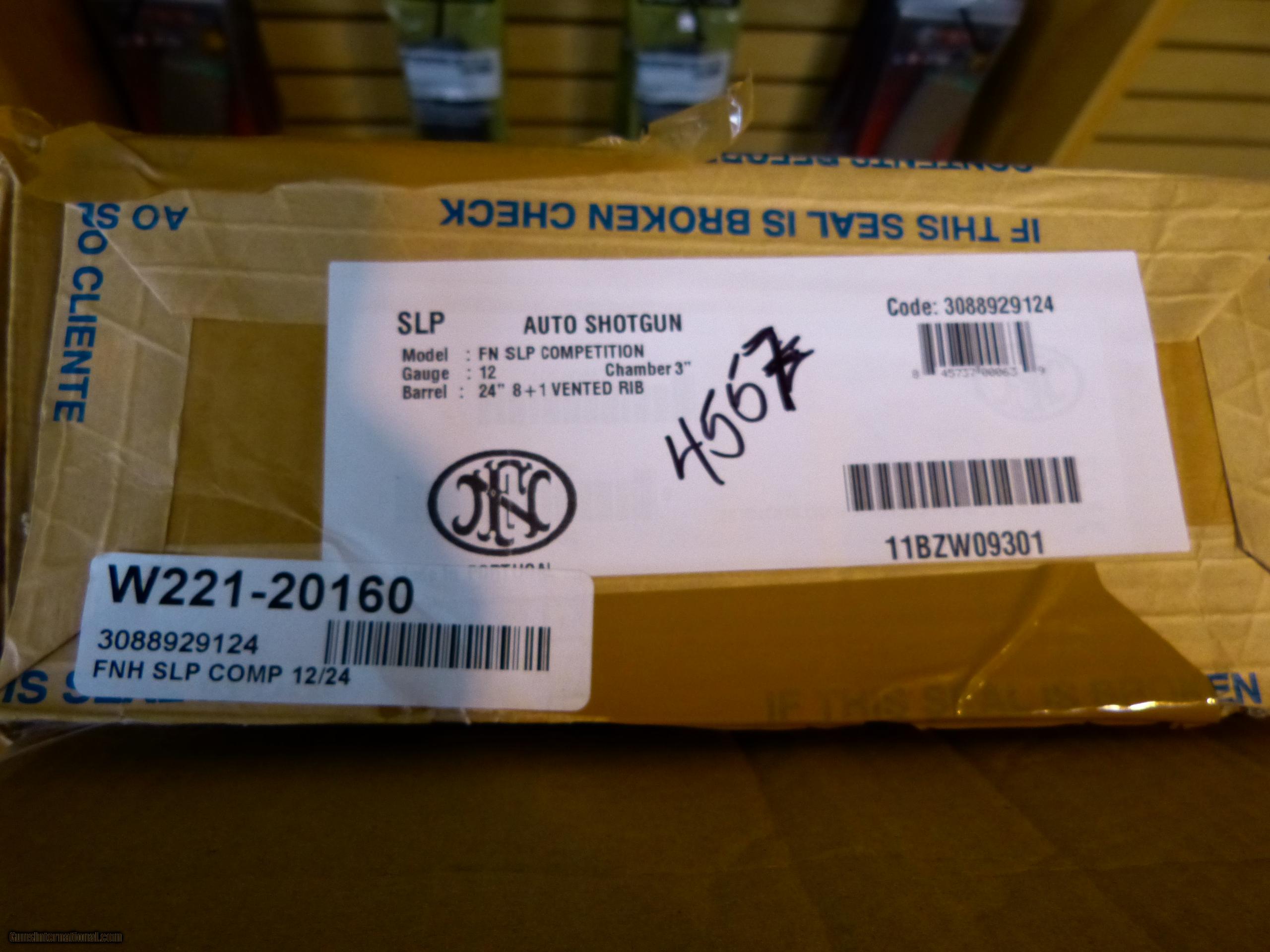 Description: NEW -- With legendary reliability and enhanced features ideal for practical shotgun sports, the FN SLP Competition shotgun is engineered to win. Holding the enviable reputation as the world’s fastest cycling shotgun, the FN SLP Competition offers a 3” chamber, extended magazine tube, and enlarged loading port. The FN SLP Competition Shotgun features a blue, hard-anodized receiver, 8+1 capacity, 24” back-bored vent-rib barrel with flip-up rear sight, fiber-optic front sight and interchangeable, extended Invector-Plus choke tube, making it ideal for 3-gun practical competition. The flip-up rear sight enables precise engagement with slugs at further distances. AMAZING Shotgun for 3-Gun! FEATURES: