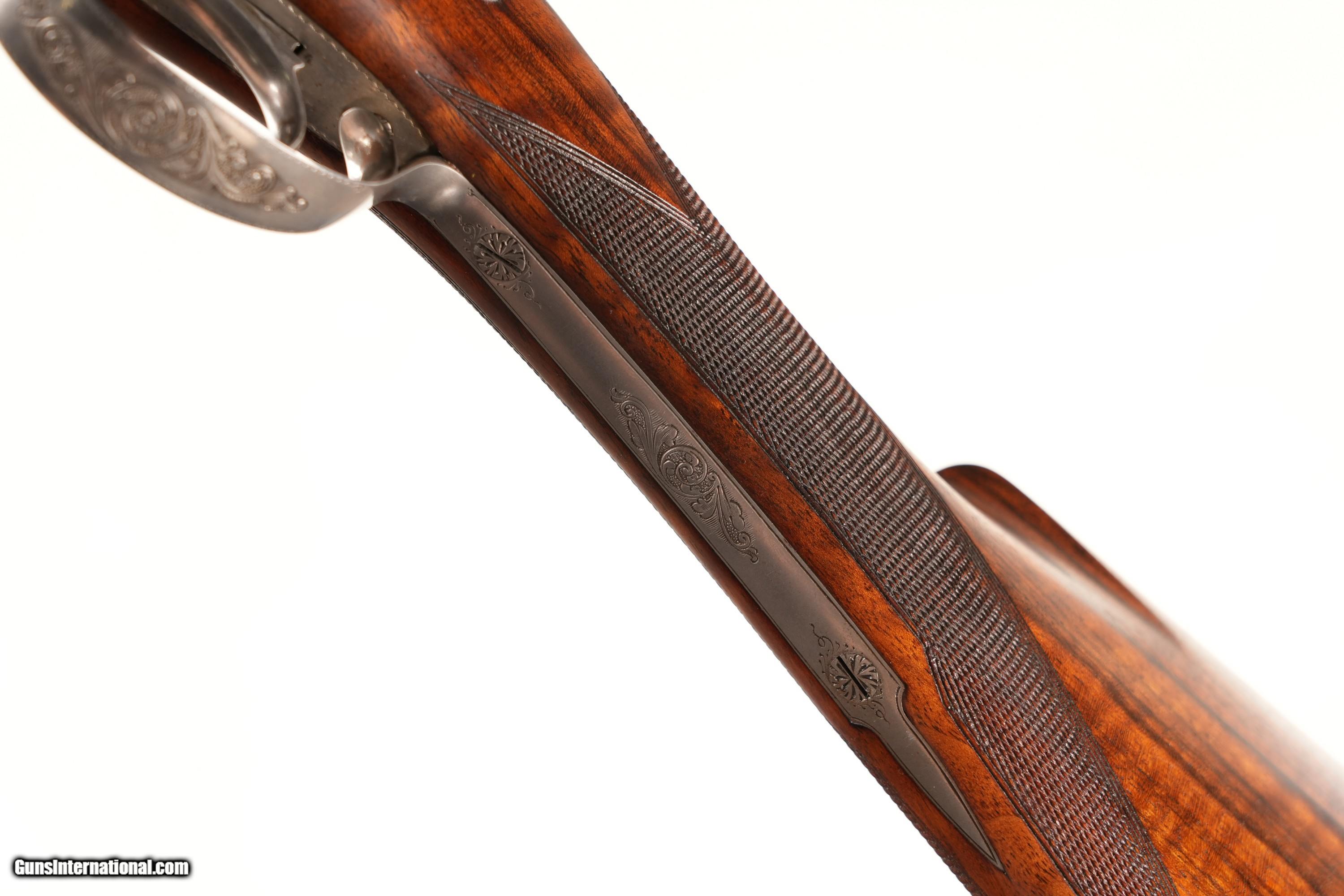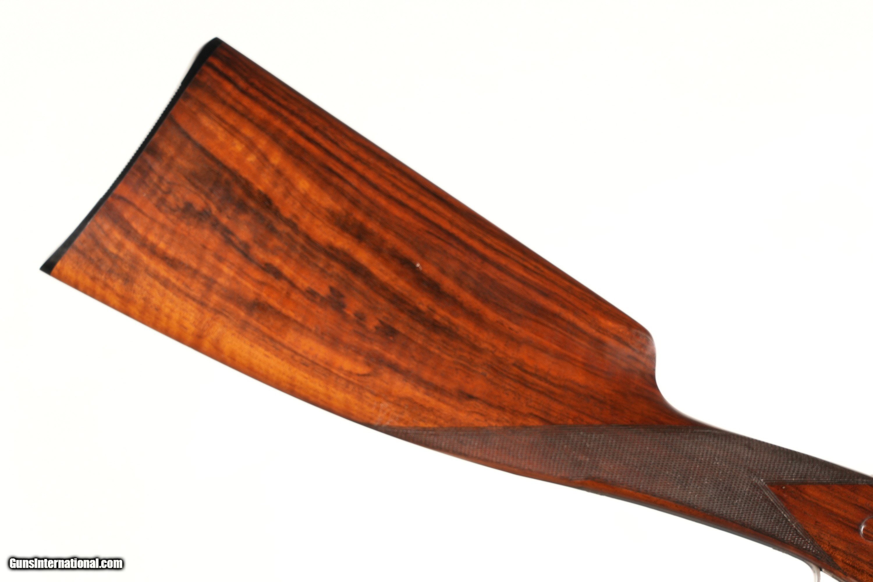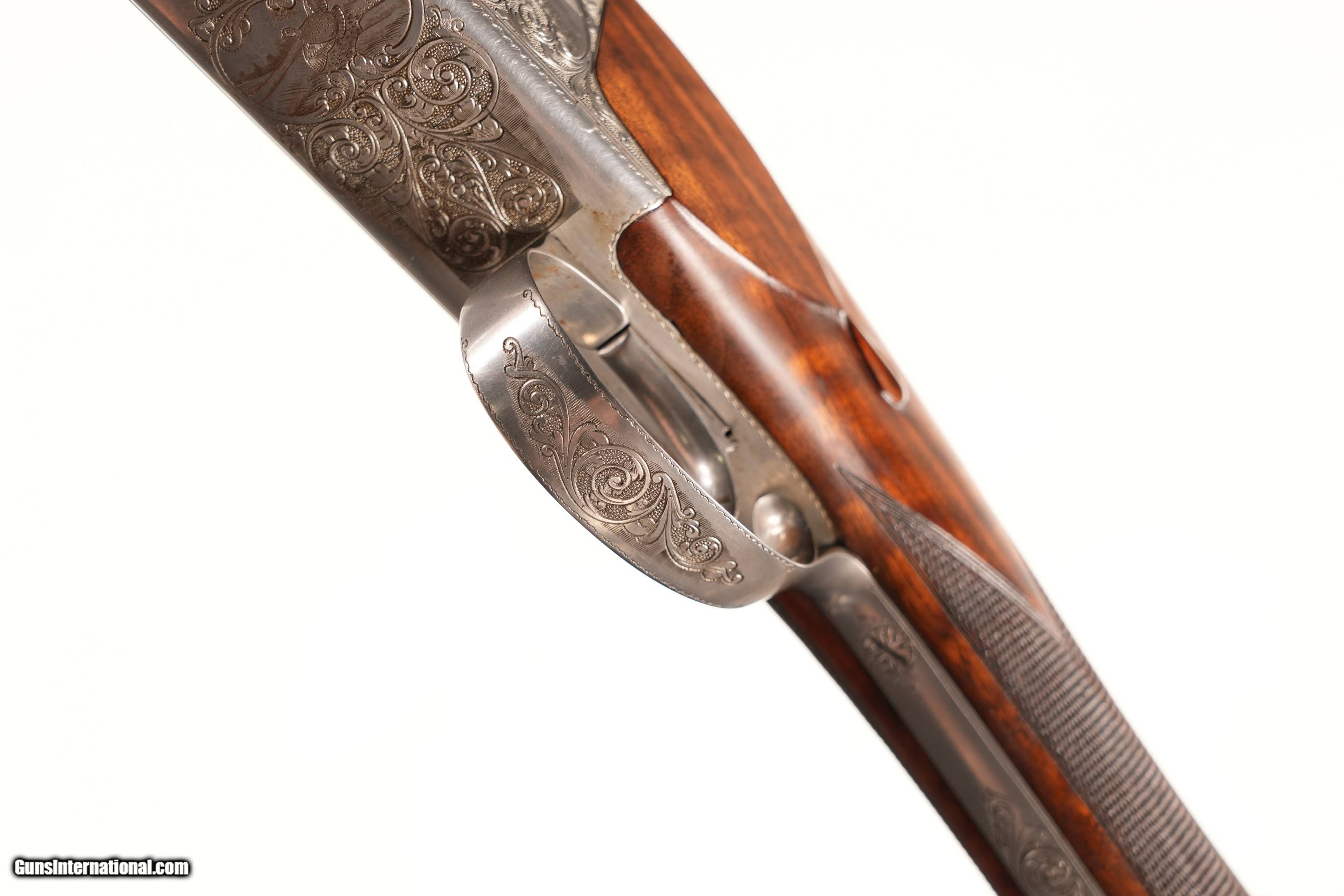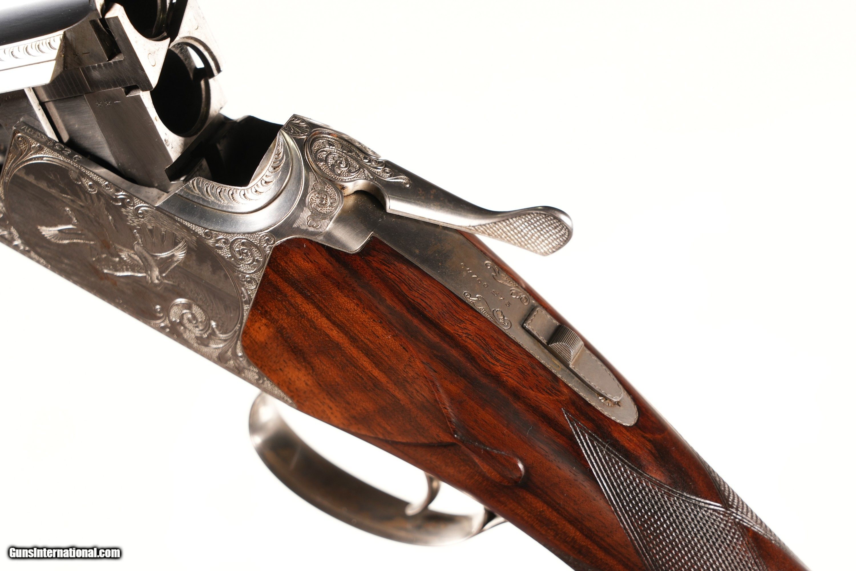 Description: R. Coenen Engraved Fabrique Nationale C2G Superposed 12 ga with 28"vent rib Bbl choked IM & IC with single selective trigger and ejectors. French grey finished receiver masterfully engraved with game scene vignettes of waterfowl, pheasants,and quail. Scarce oil finished finely checkered straight grip stock with factory butt plate. Mfd 1975.14 1/4" LOP 1 1/2" DAC 2 1/4" DAH Cast off 5mm 6 lbs 12 oz Condition, Extremely fine with excellent finishes and light use. Mechanically fine • Free Shipping, No Credit Card Fees. • Lay-a-way available for this firearm. • 1/3 Down, a 1/3 in 30 Days 1/3 in 60 Days. SOLD Shotgun Gauge: 12 Gauge Manufacturer: FN Browning Model: C2G Serial Number: 54760S75 Barrel Length: 28 |