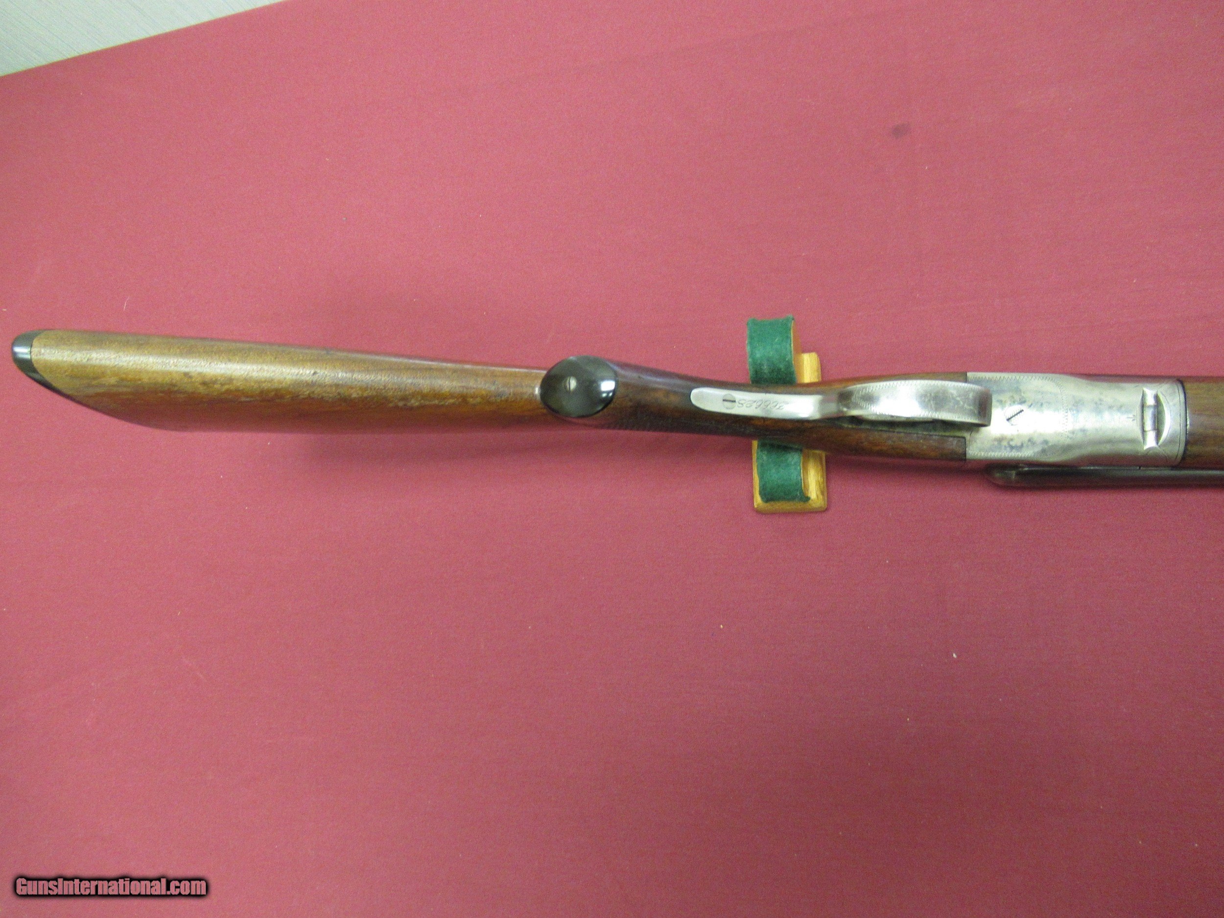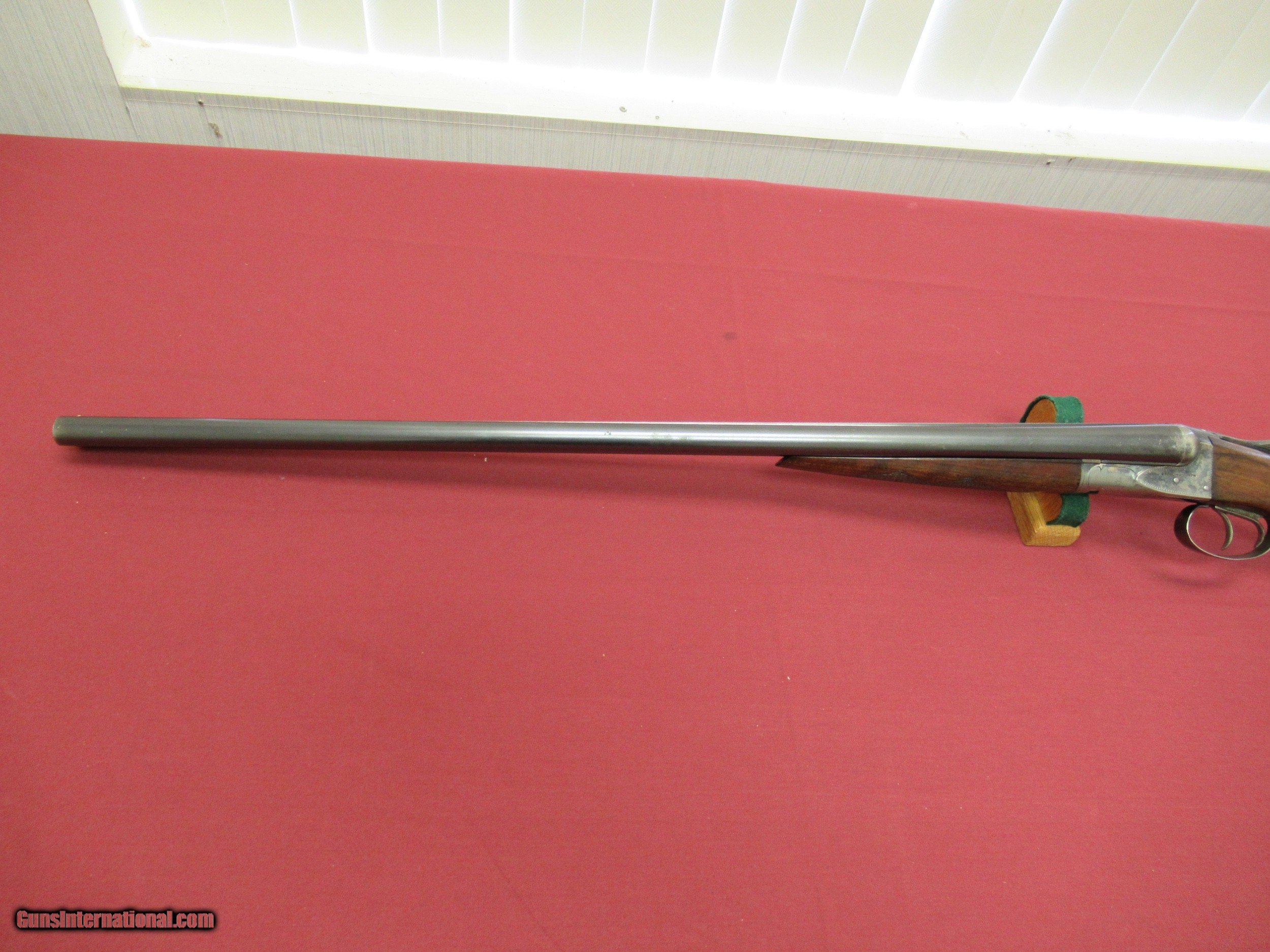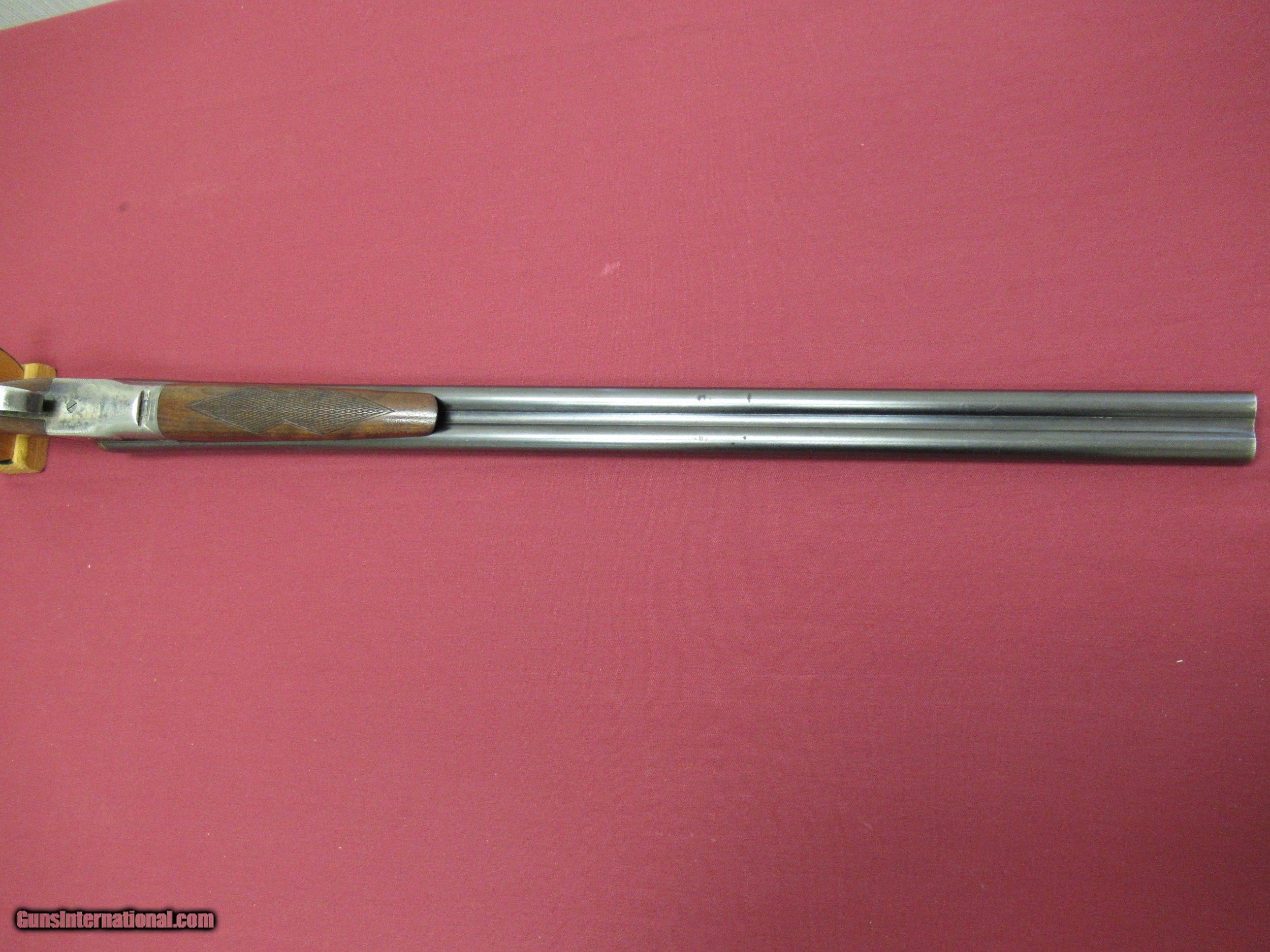 Description: Fox Sterlingworth 16 Ga. Shotgun. 28" Barrels choked tight Improved Mod. and Full. Excellent Bores. Gun has been hunted and appears to have had less than proper storage. Barrel Blue shows handling wear with slight blossums in two spots on left barrel ( See Photos ). Blue is 90+% with minor muzzle wear and breach wear near blossums next to receiver. Receiver retains 50-60% Case Colors on sides, tang and bottom. No pitting there. Wood 80% Original Finish with three minor hairline cracks at rear of tang, left upper cheek and one from the lower tang to the checkering on the right side of butt. Checkering has minor wear but still sharp on Butt and Forend. Handling marks on buttstock. ( all pictured ). Would make a good shooter. Not minty by any means but still a solid gun. SOLD Curio/Relic: Yes |