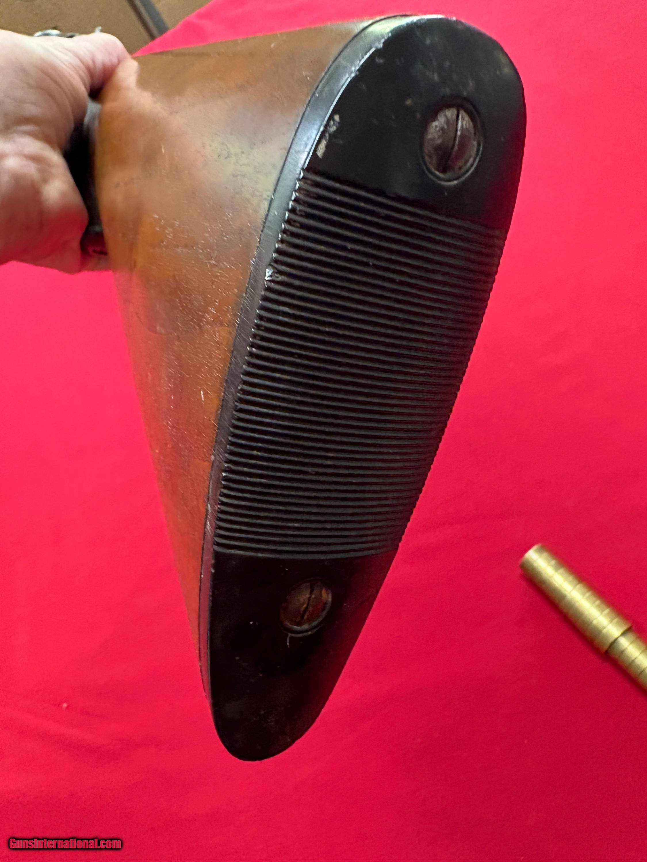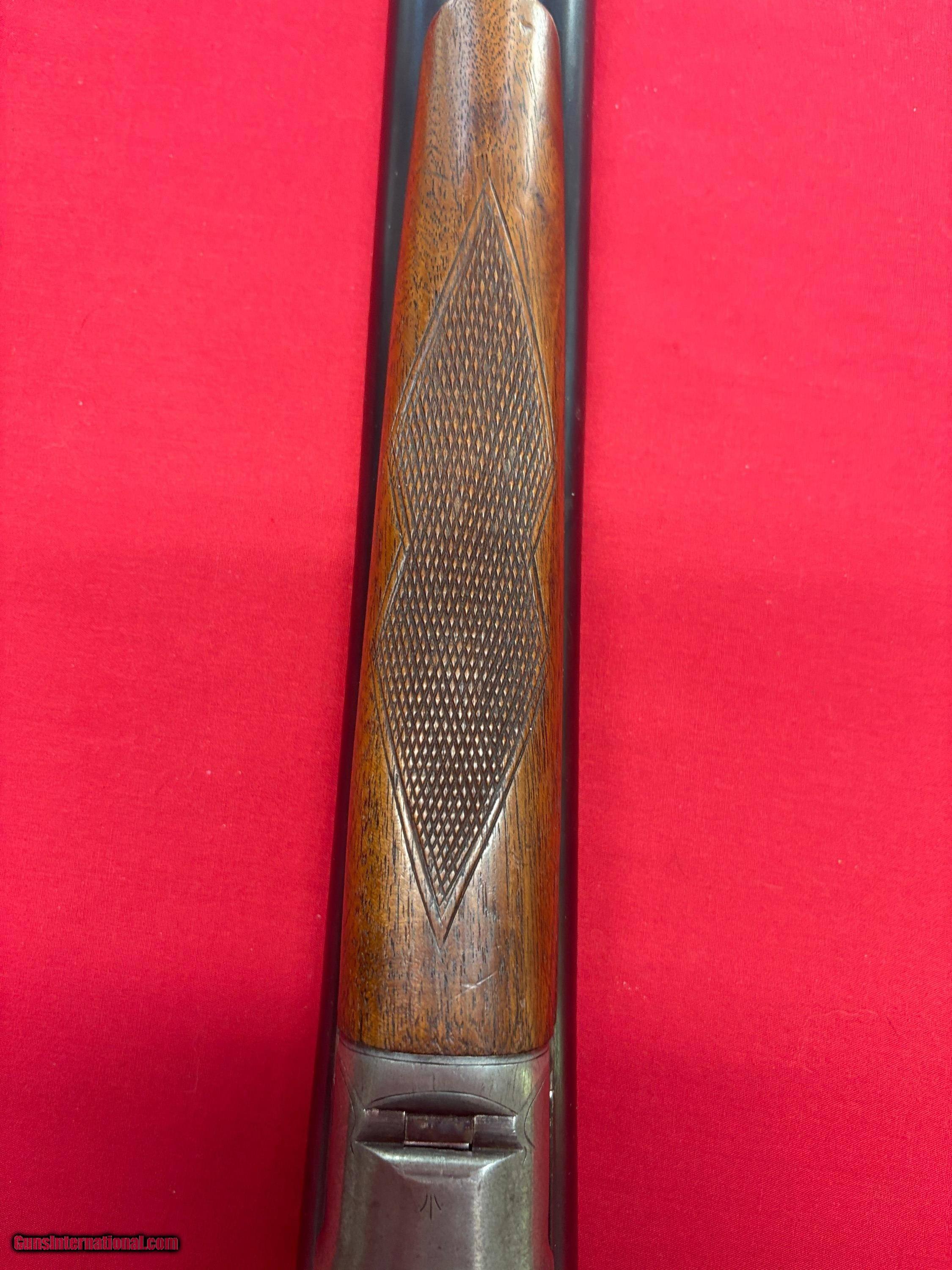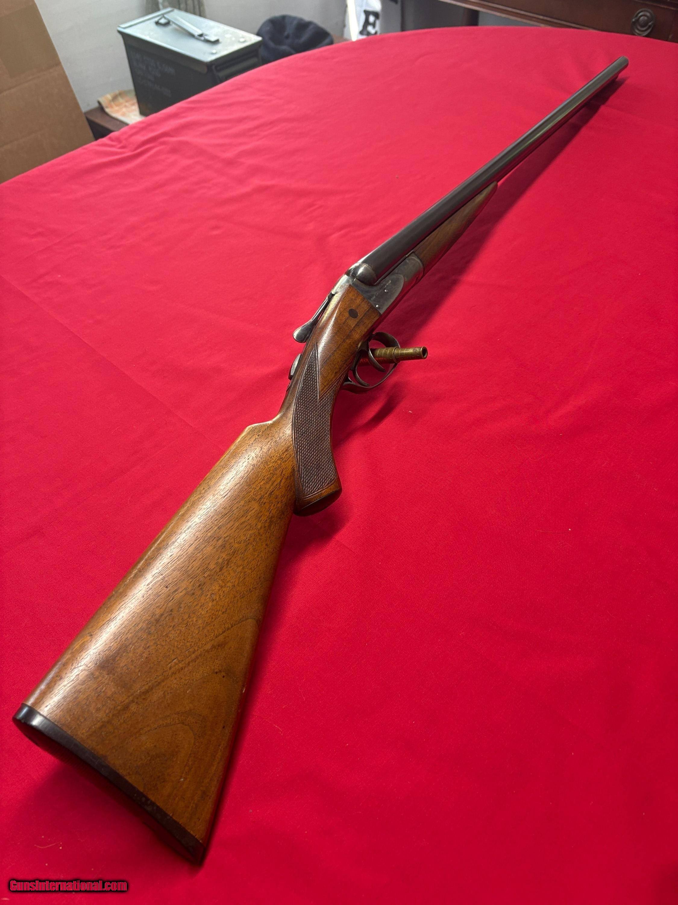 Description: 28" barrels are choked mod and imp mod. 2 ¾" chambers with excellent bores…14" length of pull with drops of 1 5/8 and 2 ¾"…Weighs just 6 pounds, 4 ounces…This is a very nice Utica made gun in very fine all original condition, with lots of cases colors showing…A reinforcing pin has been added to the stock head. There is no evidence of cracking. This practice was often part of prepping a gun for use in remote areas…Nice to see one of these in this fine condition…C&R eligible… Curio/Relic: Yes Price: $1,295.00 Contact Seller |
