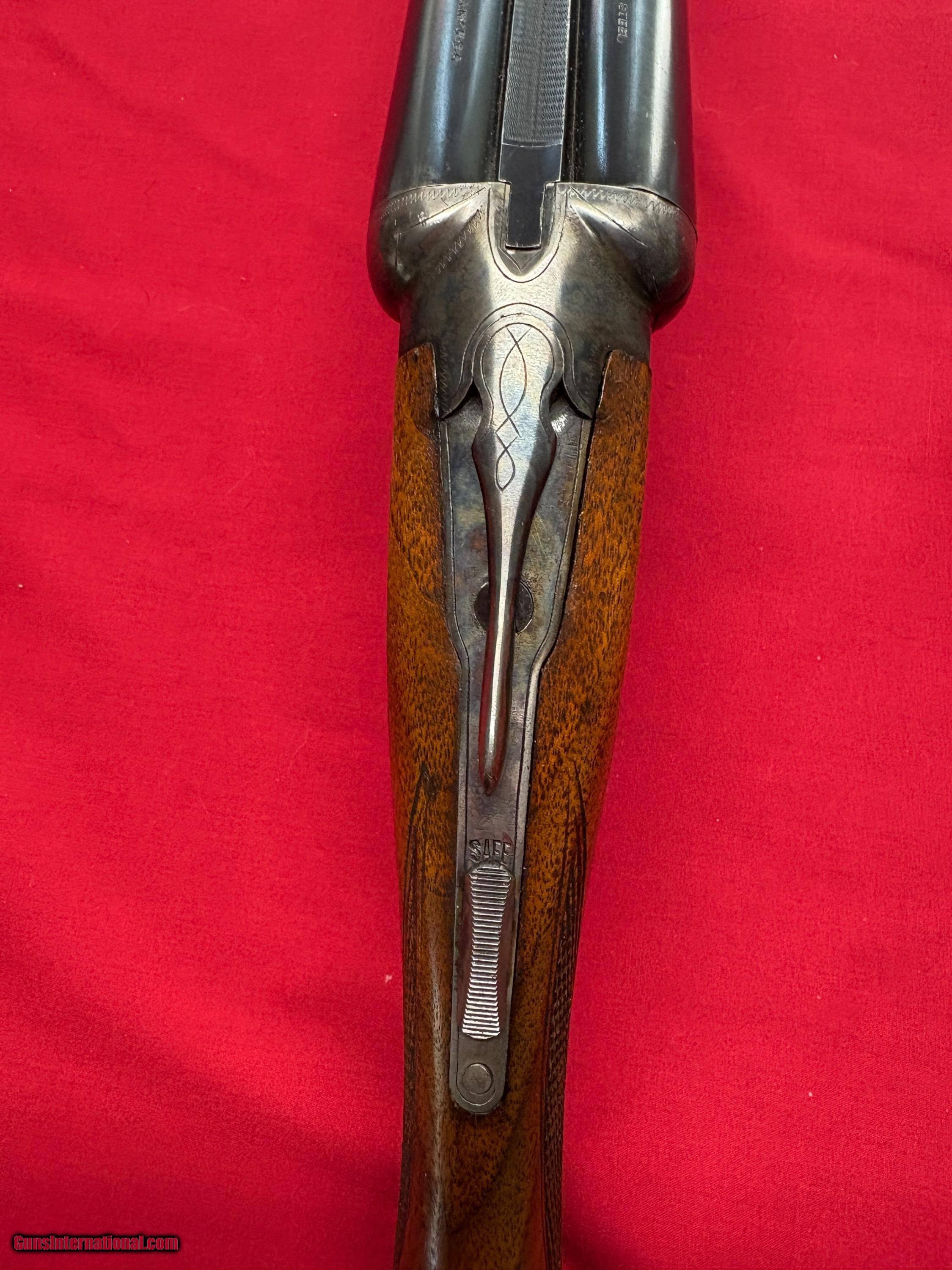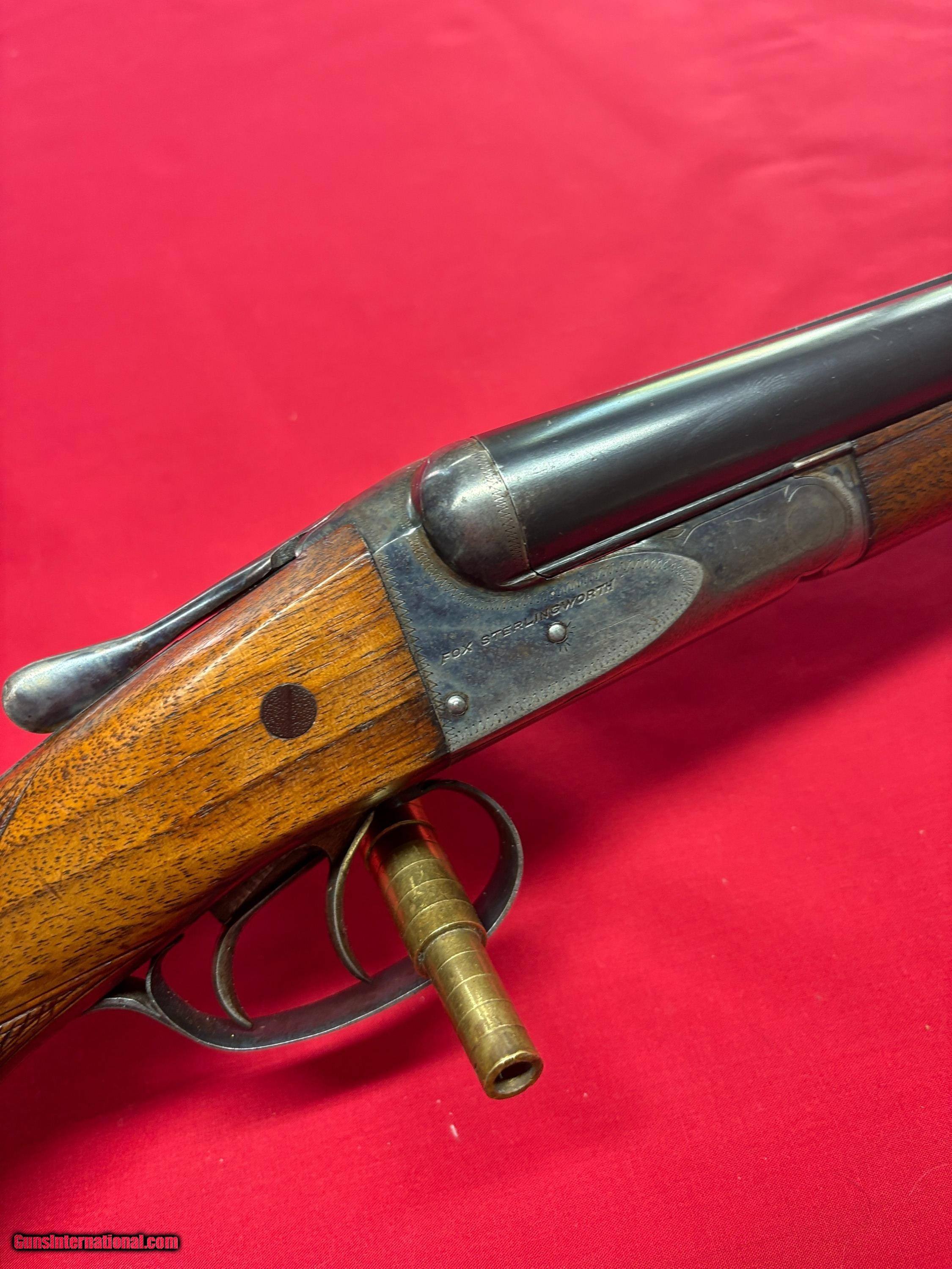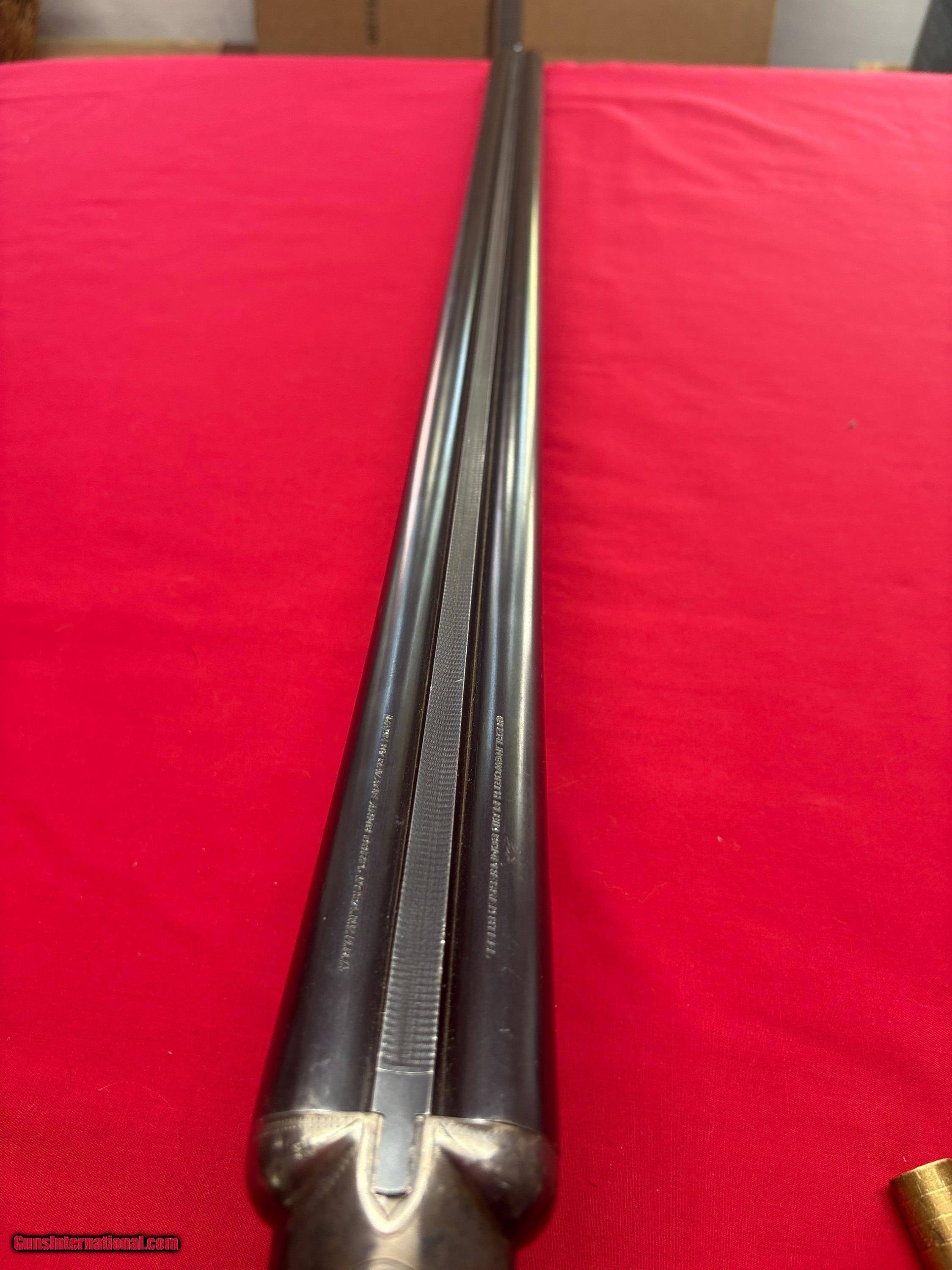 Description: 28" barrels are choked mod and imp mod. 2 ¾" chambers with excellent bores…14" length of pull with drops of 1 5/8 and 2 ¾"…Weighs just 6 pounds, 4 ounces…This is a very nice Utica made gun in very fine all original condition, with lots of cases colors showing…A reinforcing pin has been added to the stock head. There is no evidence of cracking. This practice was often part of prepping a gun for use in remote areas…Nice to see one of these in this fine condition…C&R eligible… Curio/Relic: Yes Price: $1,295.00 Contact Seller |