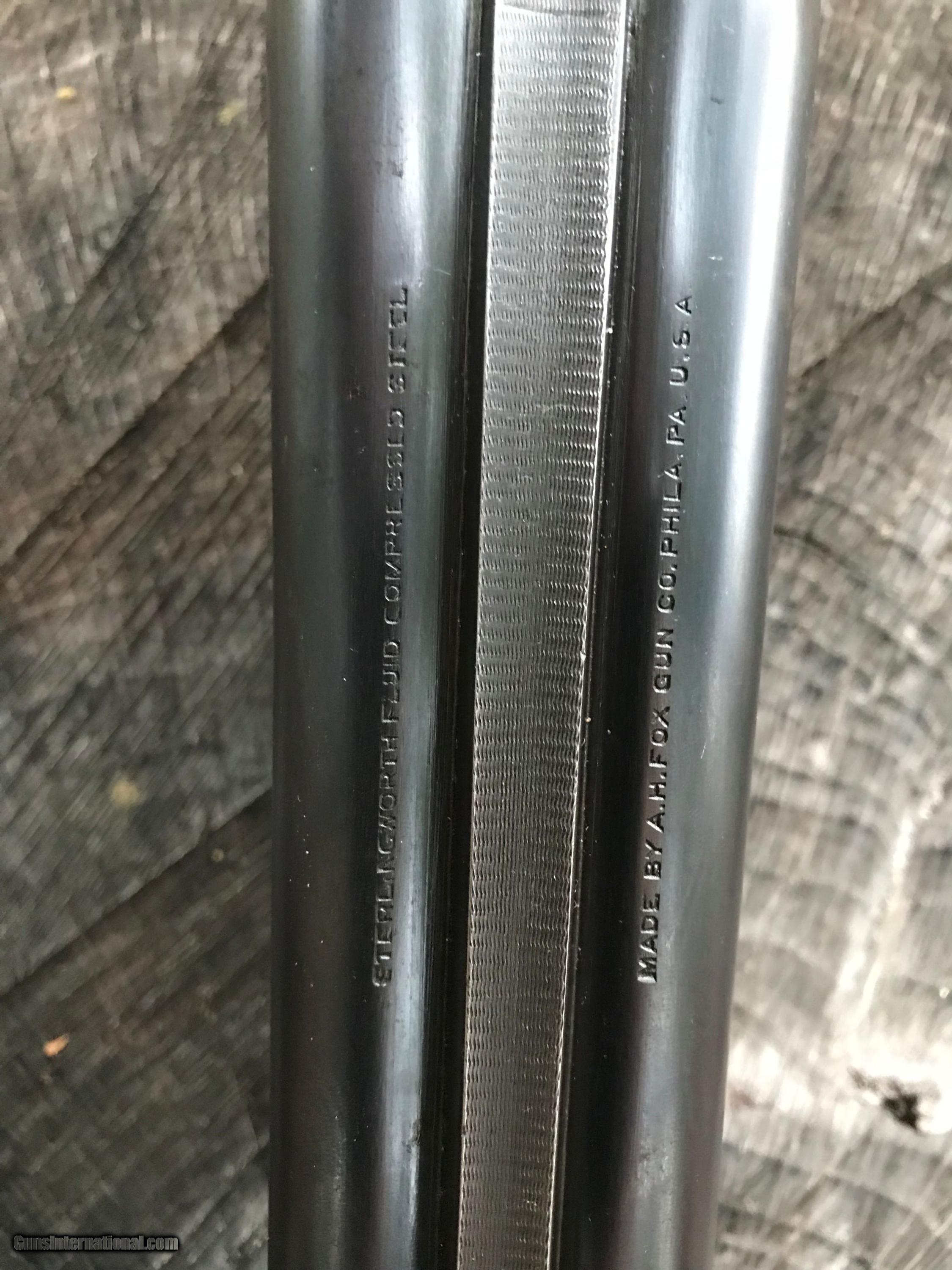Description: 16 gauge Fox Sterlingworth with ejectors. 28" barrels choked Mod/Full, excellent bores, bluing around 80%. Very nice case colors with good wood. DAC is 1 3/4" and DAH is 2 7/8" with a 14 1/8" LOP. Weight is 6lbs 2oz. Ejectors are strong. SOLD Curio/Relic: Yes Manufacture Date: 1930 |