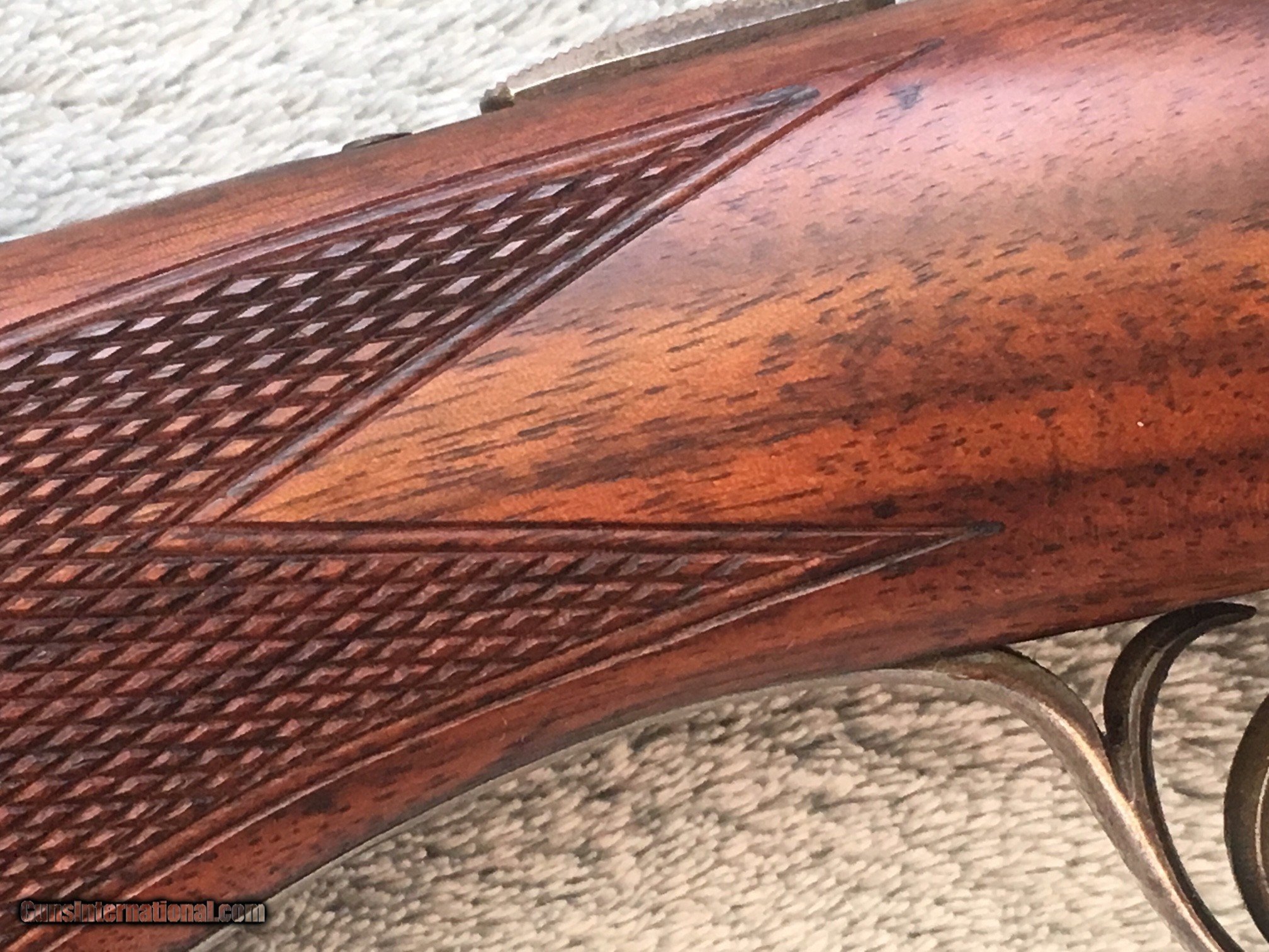 Description: For sale: Philidelphia Fox Sterlingworth 16 ga. with 28-inch barrels, Mod / Full. 14 1/2" LOP to new clays pad. Retains 90% original case colors. Stock is the original Fox Trap beavertail with the schnable tip removed and professionally refinished (see the photo of the trap beavertail forend on the McIntosh book on A.H. Fox shotguns). Excellent blue and finish throughout. $50 insurance and shipping. SOLD |