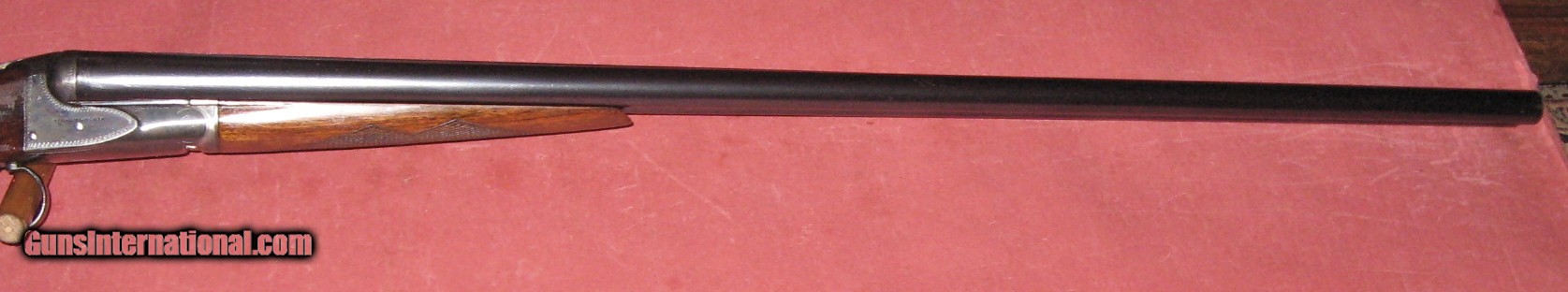 Description: A.H.Fox 16 gauge Sterlingworth in all original condition.Built in Philadelphia in 1926,this gun has 30" Sterlingworth compressed fluid steel barrels with mint bores.The chokes are light modified .015" and full .035".The barrels are #3 weight barrels with 25/8" chambers.The gun is in outstanding all original unaltered condiiton.It retains 95% of the original case colors,100% of the original barrel blue and 95% of the original wood finish.All screws are unturned and clean.All roll marks are sharp and crisp.The wood is sound with no cracks or damage.With its light weight and great barrels,this would make an ideal dove or pheasant gun.The stock dimensions are 141/4"LOP over the bakelite buttplate,15/8" at comb,and 23/4" at heel.Very hard to find in this condition.C&R eligible. SOLD Curio/Relic: Yes Manufacturer: A.H.Fox (Phildelphia) Model: Sterlingworth Serial Number: 361327 Chambers: 25/8 Ejectors: extractors Metal Condition: mint Wood Condition: excellent Bore Condition: mint Barrel Type: Sterlingworth Compressed Steel Action: double barrel Triggers: Double Stock Dimensions: 141/4"x15/8"x23/4 Butt Pad: factory buttplate Weight: 6-2 Manufacture Date: 1926 Choke Left: full .035 Choke Right: Mod .015 |