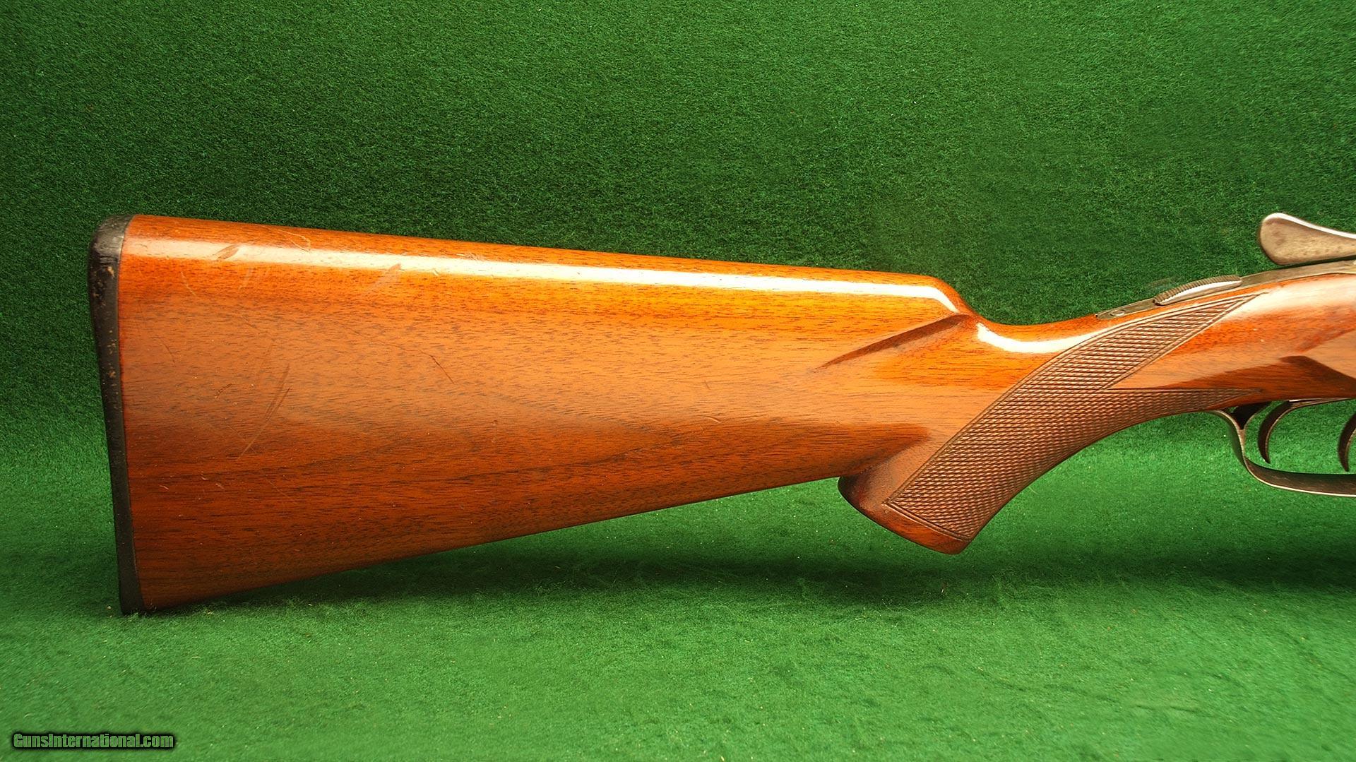 Description: This is a Sterlingworth double manufactured by A.H. Fox ...a Philadelipia manufactured gun in the saught after 16 GA. The length of pull is 14 1/4" over a fajen buttplate (possibly restocked). The forend appears to be refinished at some point with the checkering freshened. The bores are bright however stained from light corrosion. The top of the right barrel about 1/3 of the way back from the muzzle has a light compresion mark, but has not affected the bore. The top lever is left of center but the barrels are tight on face. This is a lovely splinter of a gun that would be a joy to carry in the field while working over your favorite bird dog. SOLD Manufacturer: A.H. Fox Model: Sterlingworth Caliber Info: 16 GA Barrels: 28 |