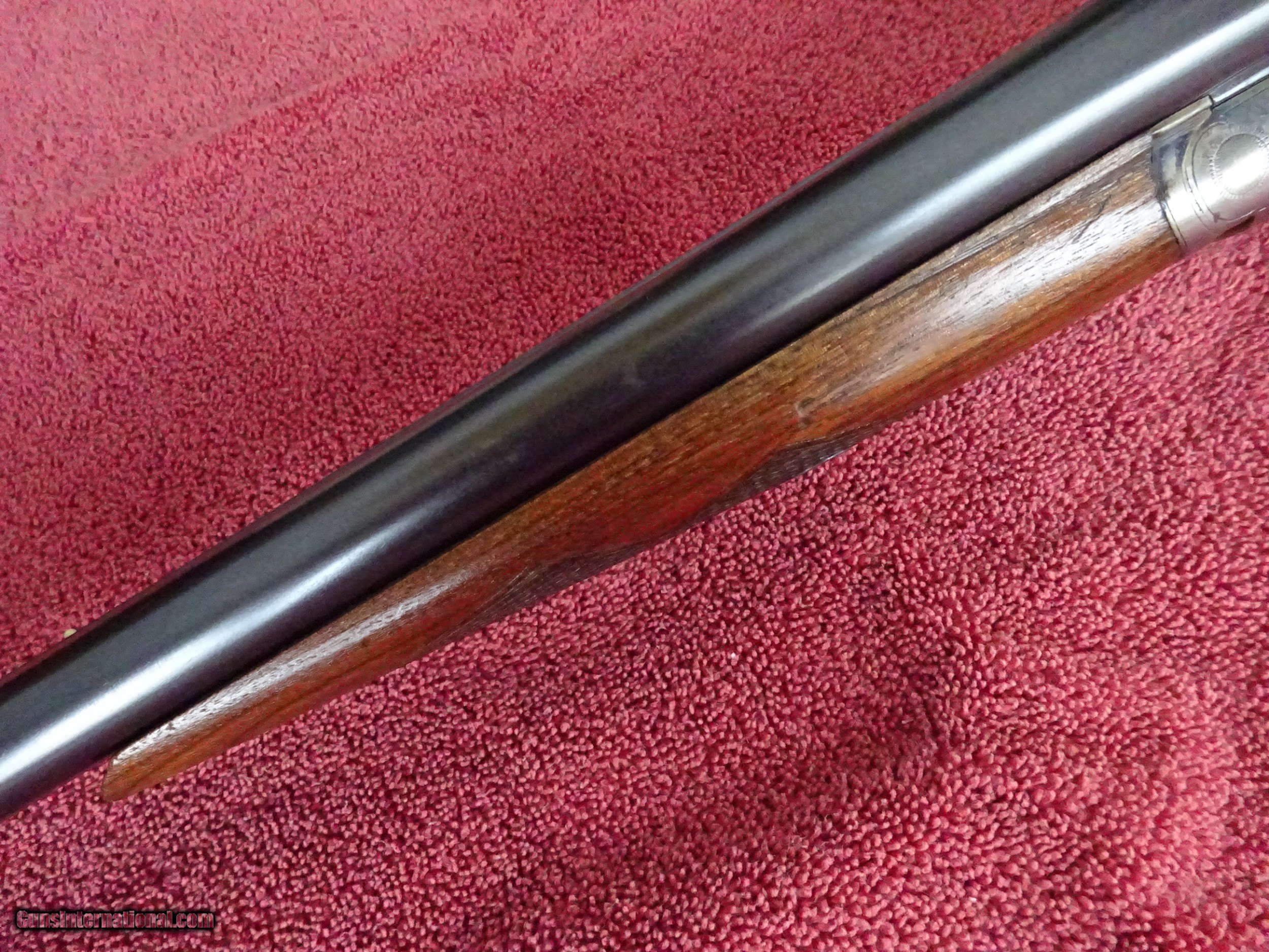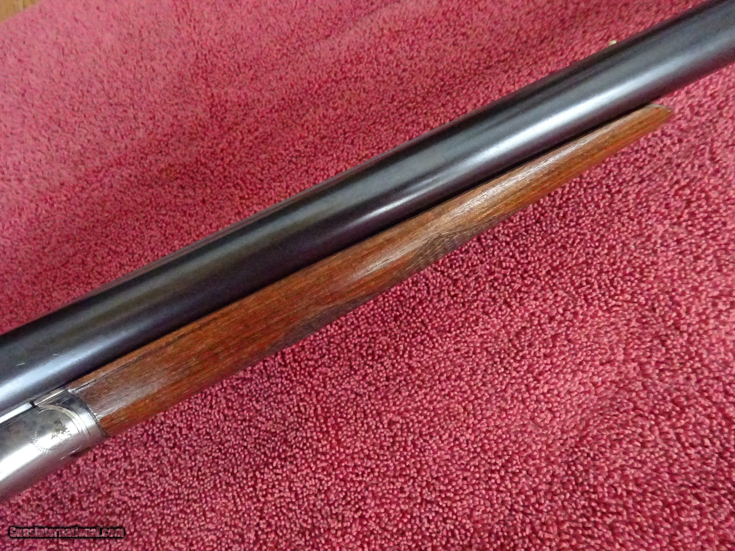 Description: A H FOX, PHIL., STERLINGWORTH 16 GAUGE. 26" BARRELS CLEARLY MARKED NUMBER 3 WEIGHT, IMPROVED MODIFIED AND FULL, EXCELLENT BLUE, MIRROR BRIGHT BORES, TWIN SIGHTS, AUTOMATIC EJECTORS, BARRELS RING NICELY. TIGHT ON FACE, GOOD VIVID CASE COLOR, 98% TRIGGERGUARD BLUE. PISTOL GRIP STOCK, SPLINTER FOREARM, EXCELLENT WOOD AND CHECKERING, ORIGINAL GRIP CAP AND FACTORY JOSTAM PAD, 1 1/2" X 2 3/4" X 14 1/8", 6 POUNDS EVEN. NICE LITTLE FOX MADE IN 1923, 100% ORIGINAL CONDITION. $2950.00 + $50.00 Insured shipping to an FFL address. See all Pats gun listings on this site! We also have hundreds of pieces of ORIGINAL gun company advertising & memorabilia available for sale on oursite SPORTINGCOLLECTIBLES. We have no reprints or reproductions. Email for more information. SOLD Curio/Relic: Yes |