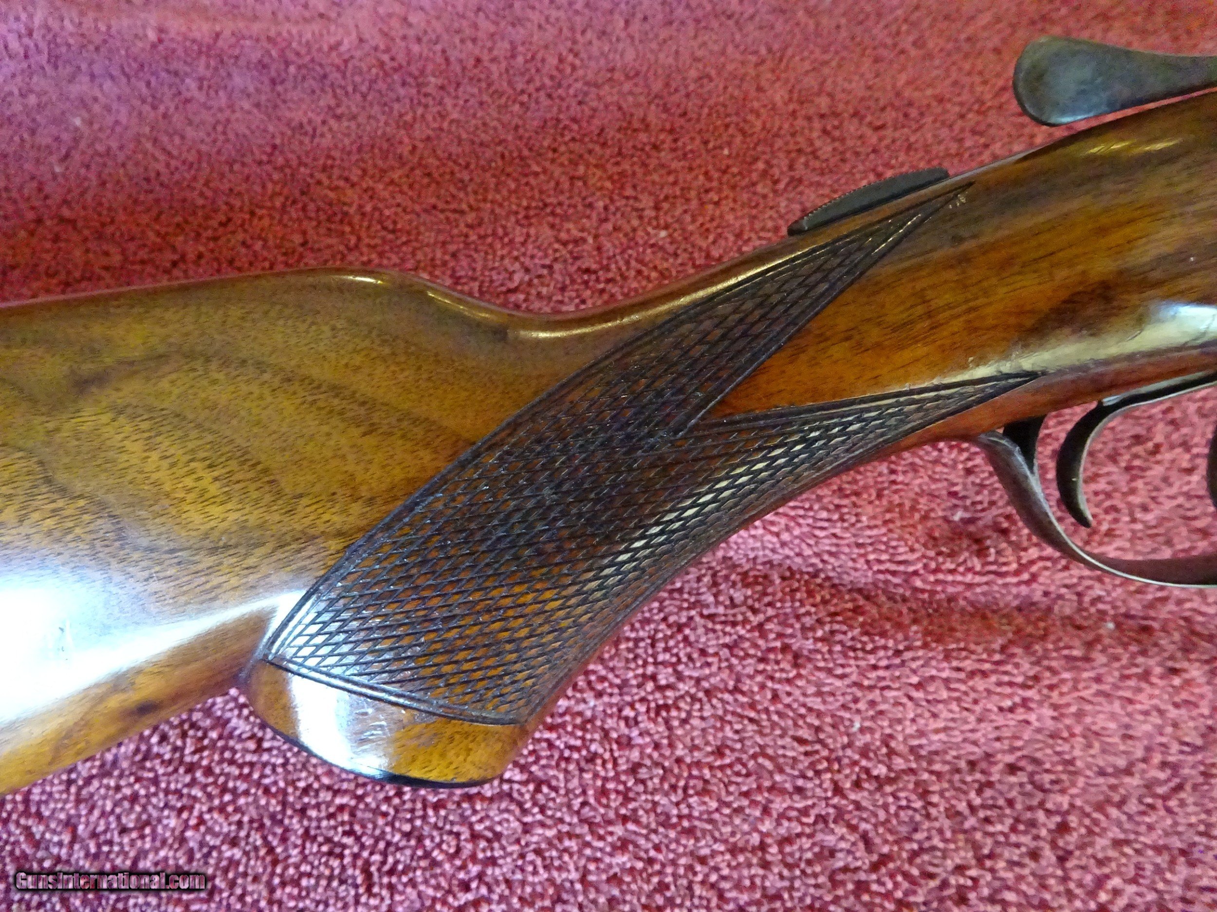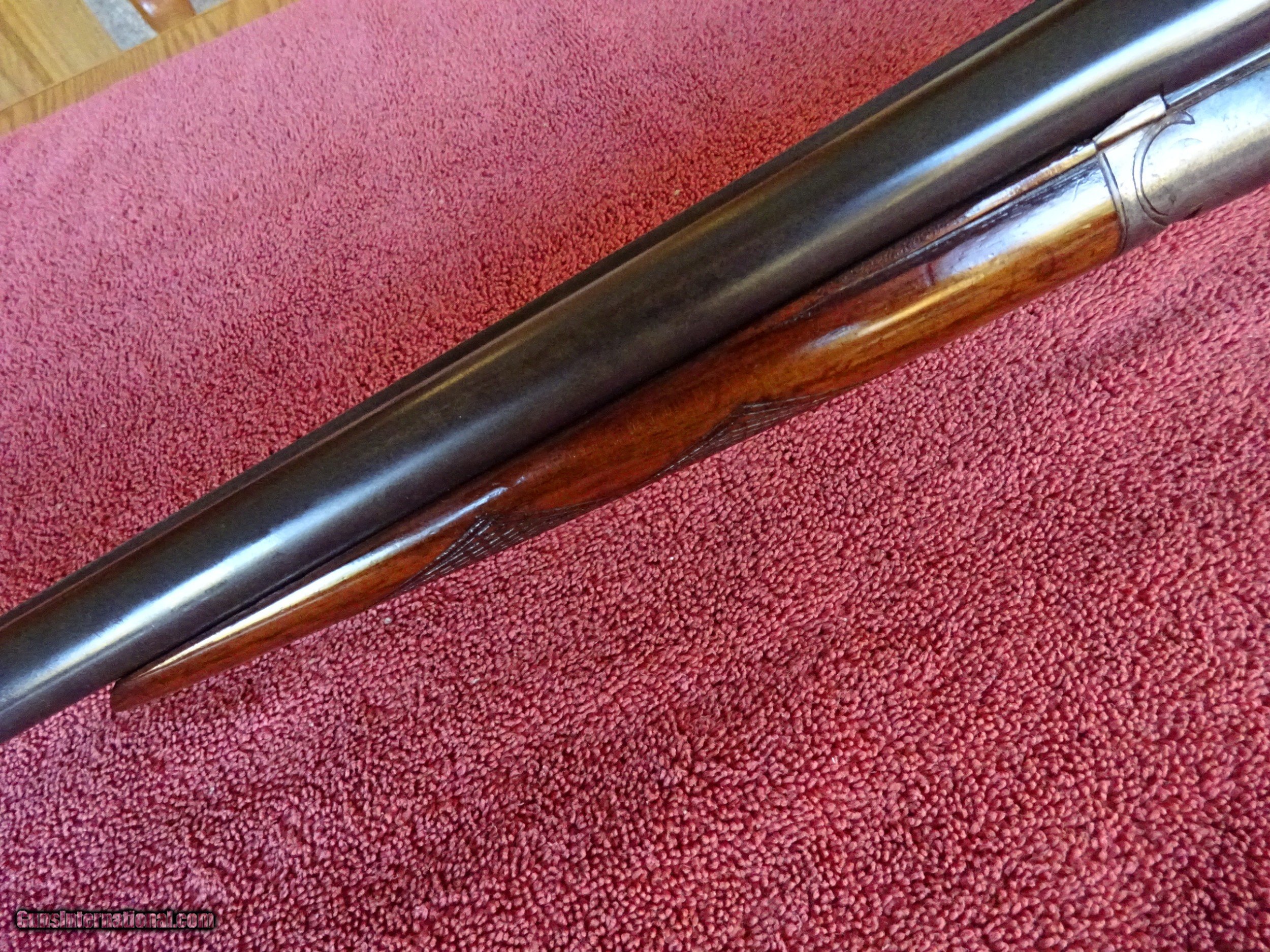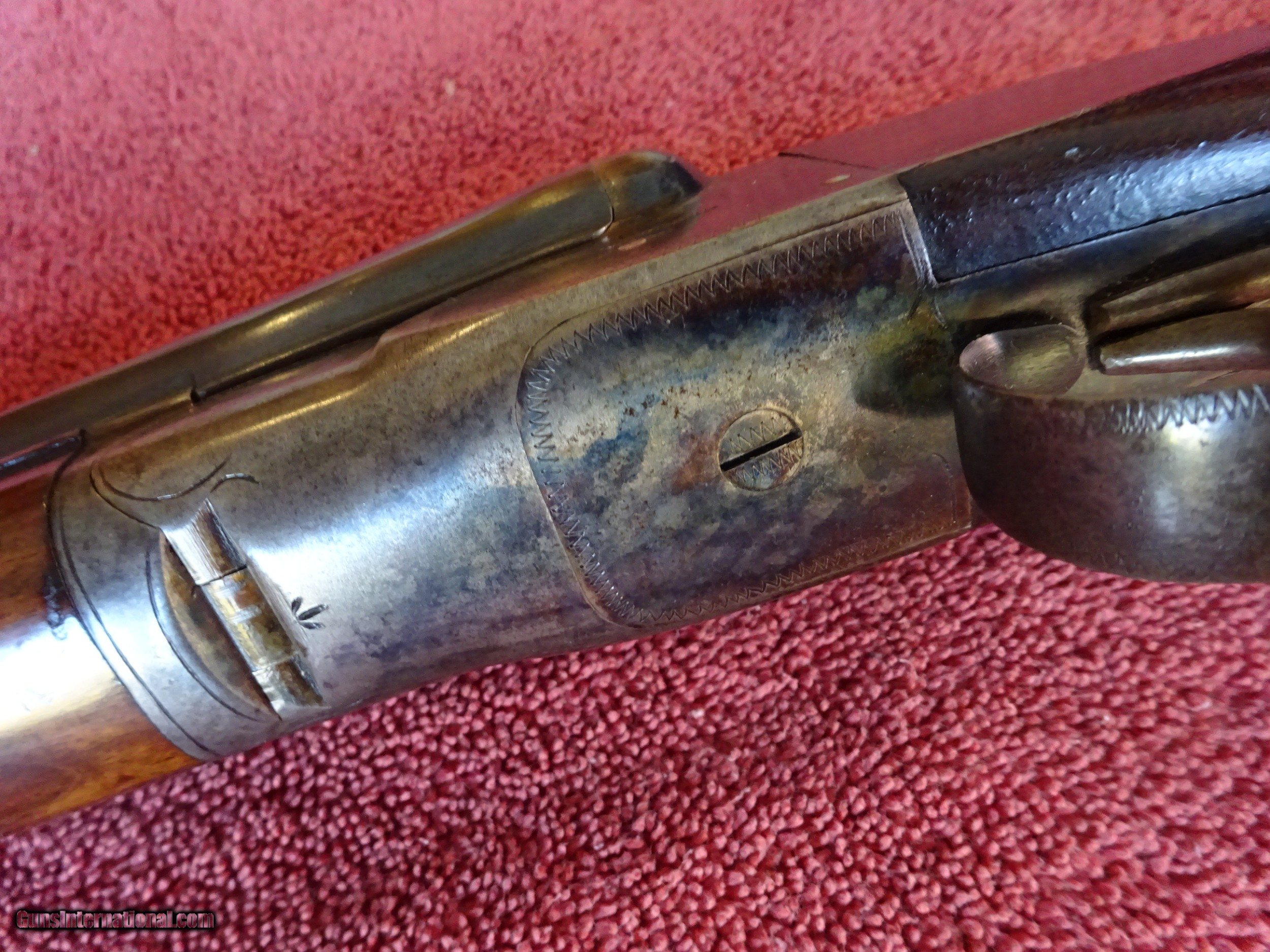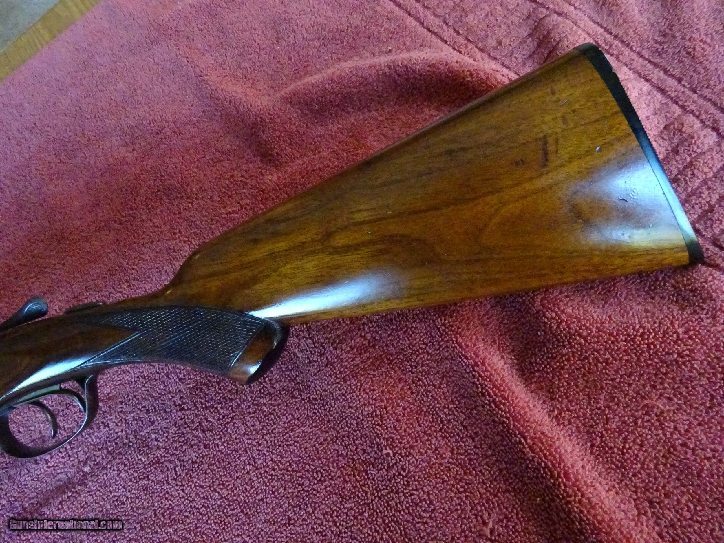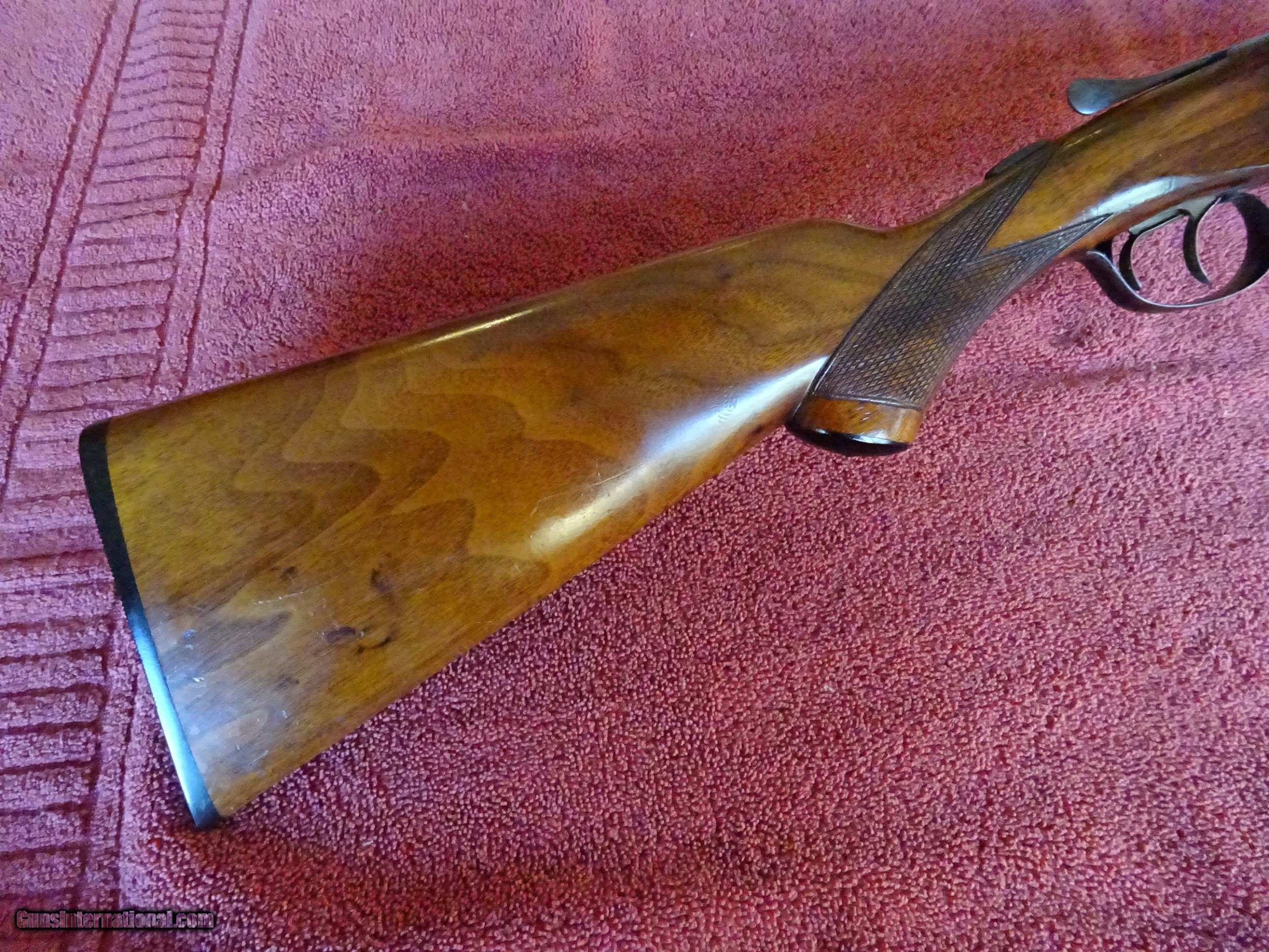 Description: A H FOX, PHIL. STERLINGWORTH 20 GAUGE. 28" BARRELS, 99% BLUE, MIRROR BRIGHT BORES, MODIFIED AND FULL, SINGLE SIGHT, 2 1/2" CHAMBERS, NO. 4 WEIGHT BARRELS. BOLD VIVID CASE COLOR, NEAR 100% COVERAGE, TOP LEVER TO THE FAR RIGHT, TIGHT AS NEW, PERFECT UNTURNED SCREWS. PISTOL GRIP STOCK, SPLINTER FOREARM, EXCELLENT WOOD FINISH AND CHECKERING. ORIGINAL GRIP CAP AND BUTTPLATE, 1 1/2" X 3" X 14 1/4", 5 POUNDS 14 OUNCES. MADE IN 1929. $2500.00 + Insured shipping to an FFL address. See all Pats gun listings on this site! We also have hundreds of pieces of ORIGINAL gun company advertising & memorabilia available for sale on our site SPORTINGCOLLECTIBLES. We have no reprints or reproductions. Email for more information. SOLD Curio/Relic: Yes |