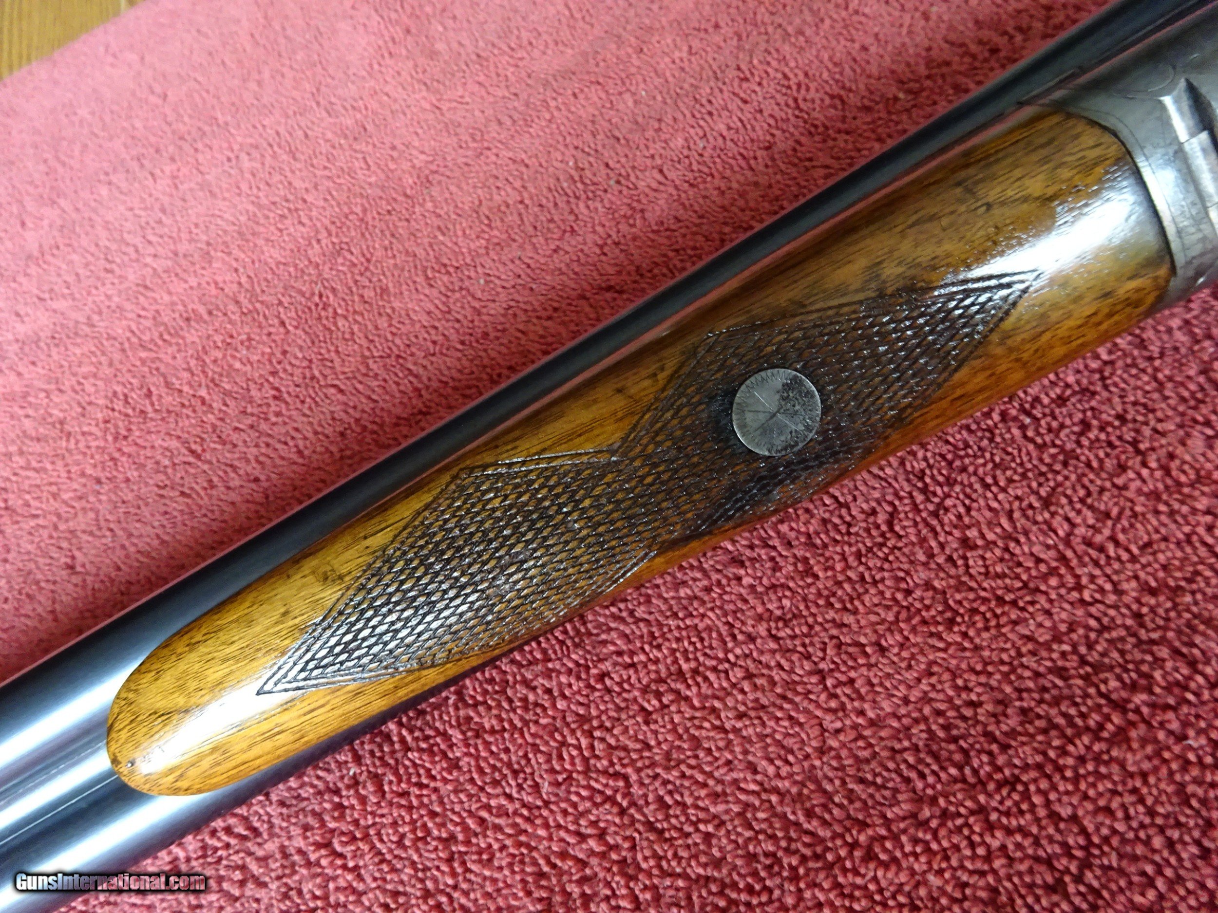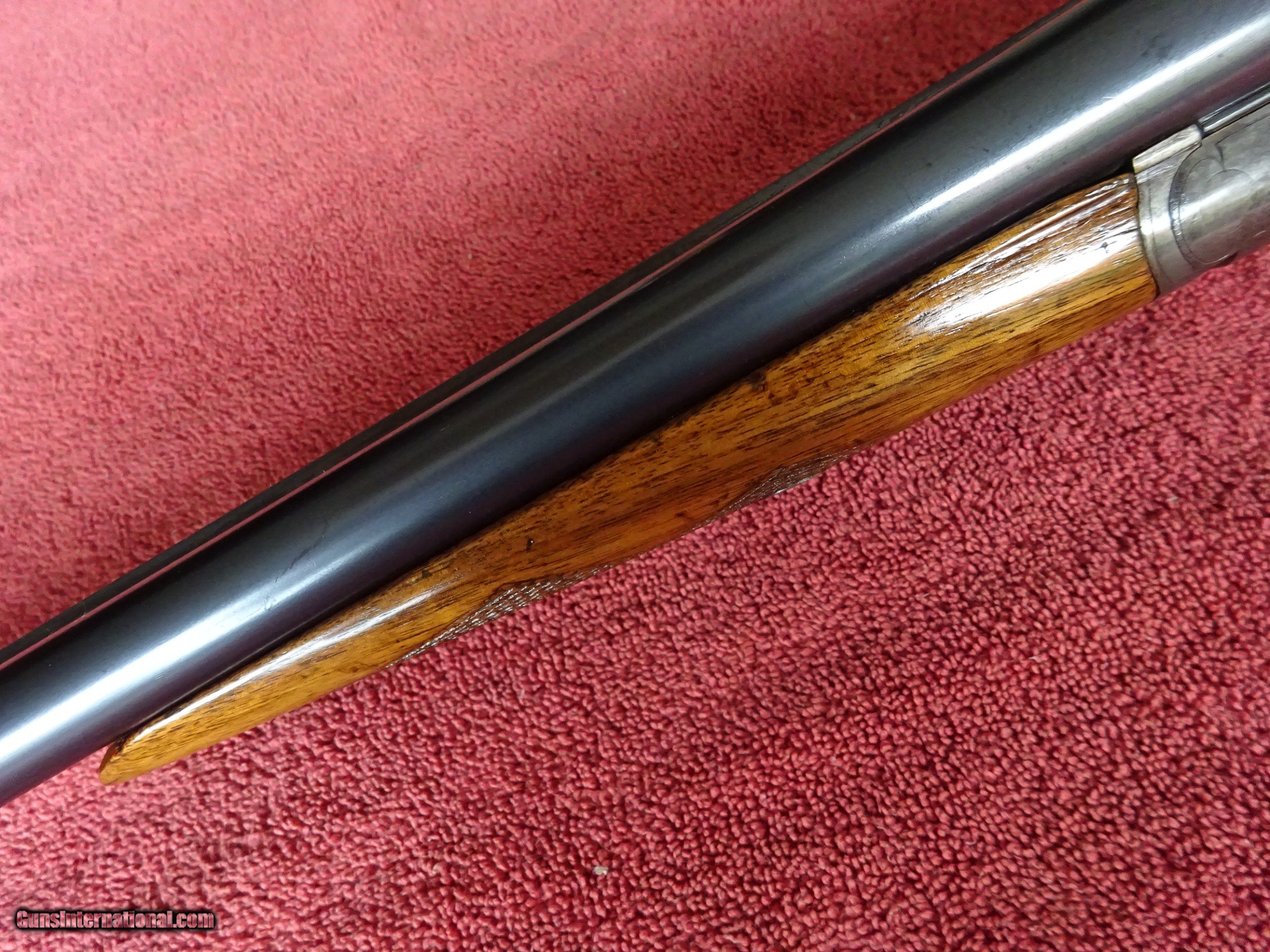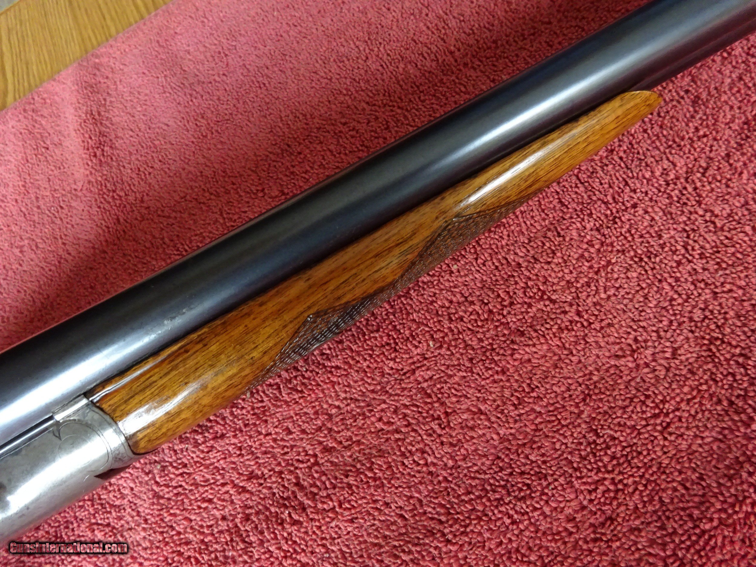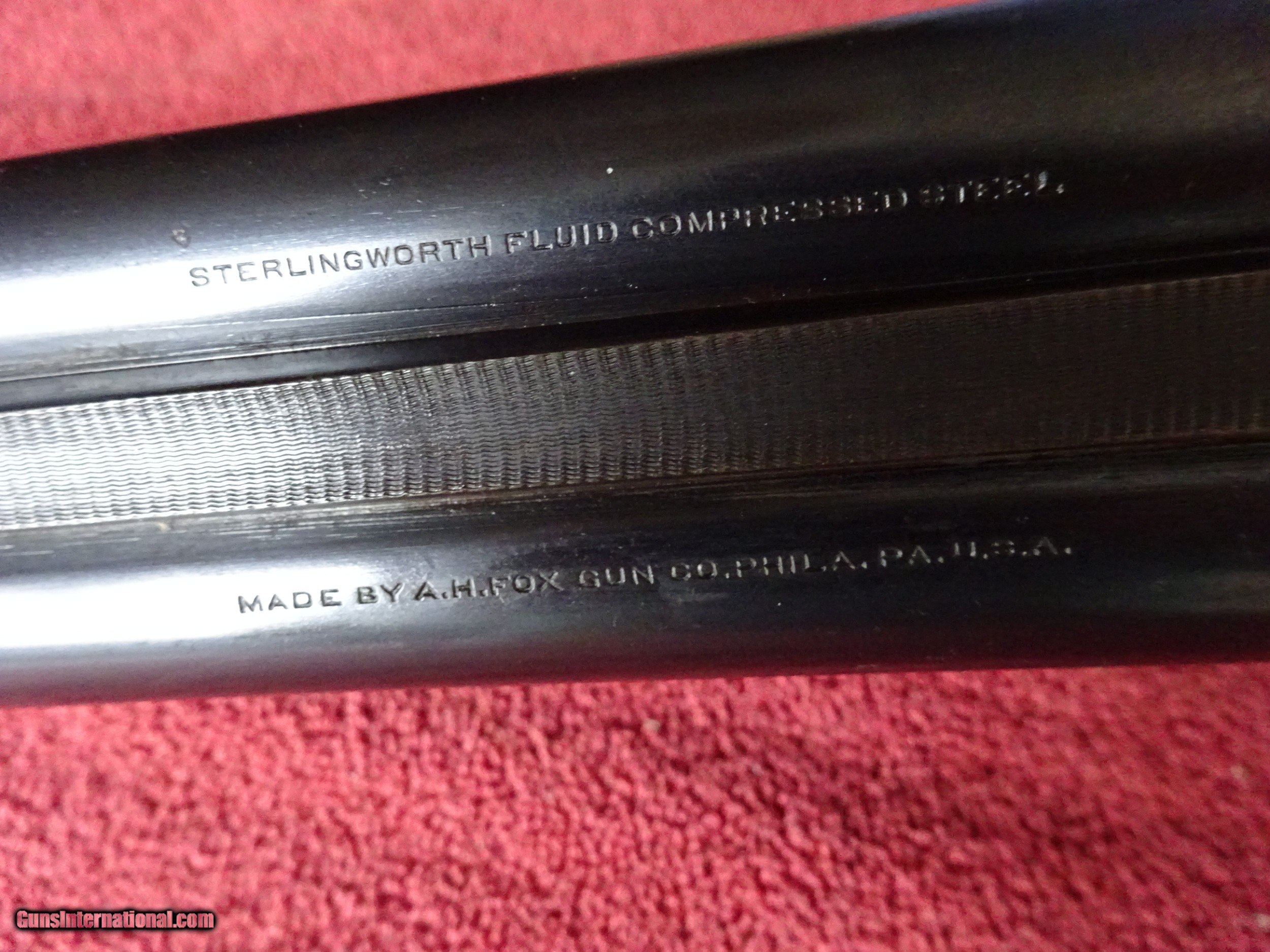 Description: A H FOX, PHIL., STERLINGWORTH 12 GAUGE. 26" STERLINGWORTH FLUID COMPRESSED STEEL NUMBER 3 WEIGHT BARRELS, IMCYL. AND MODIFIED .005 AND .015, VERY GOOD BLUE, MIRROR BRIGHT BORE, BARRELS RING NICELY, SINGLE SIGHT, AUTOMATIC EJECTORS. GOOD VIVID CASE COLOR, 2 3/4" CHAMBERS, PERFECT UNTURNED SCREWS, TIGHT ON FACE. PISTOL GRIP STOCK, SPLINTER FOREARM, VERY GOOD WOOD AND CHECKERING, 1 5/8" X 3" X 14 1/8, 6 3/4 POUNDS. NICE CLOSE COVER UPLAND GAME GUN, 100% ORIGINAL CONDITION. MADE IN 1928. STERLINGWORTHS WITH AUTOMATIC EJECTORS ARE SCARCE. $1375.00 + $50.00 Insured shipping to an FFL address. See all Pats gun listings on this site! We also have hundreds of pieces of ORIGINAL gun company advertising & memorabilia available for sale on our site SPORTINGCOLLECTIBLES. We have no reprints or reproductions. Email for more information. SOLD Curio/Relic: Yes |