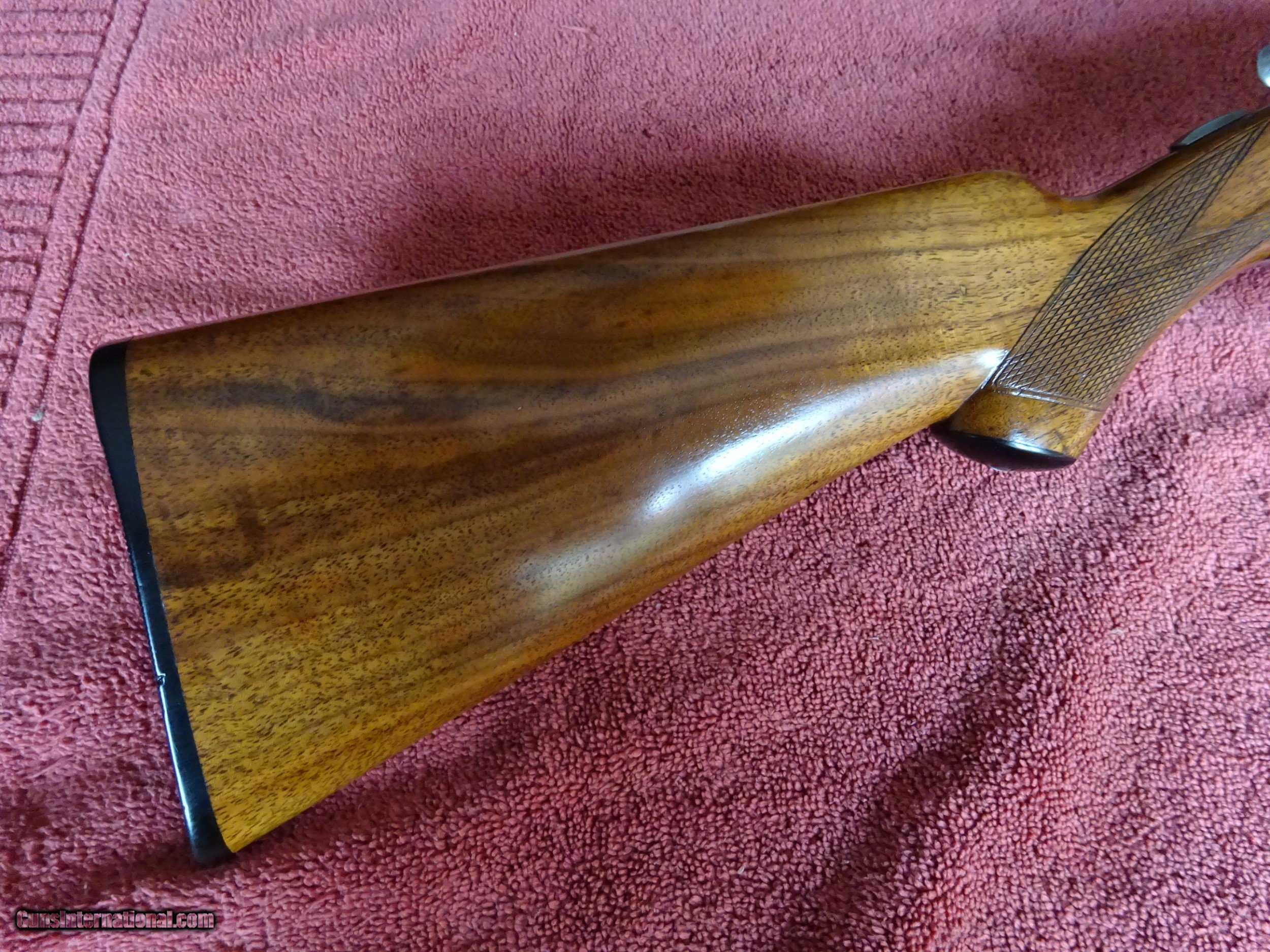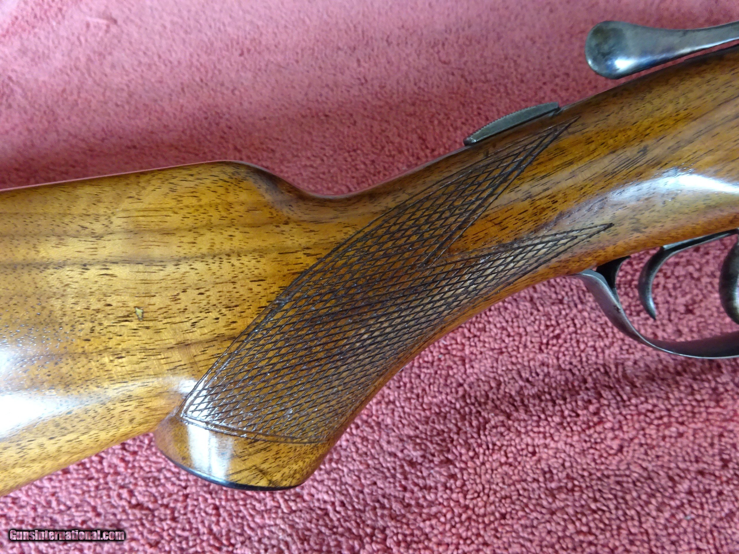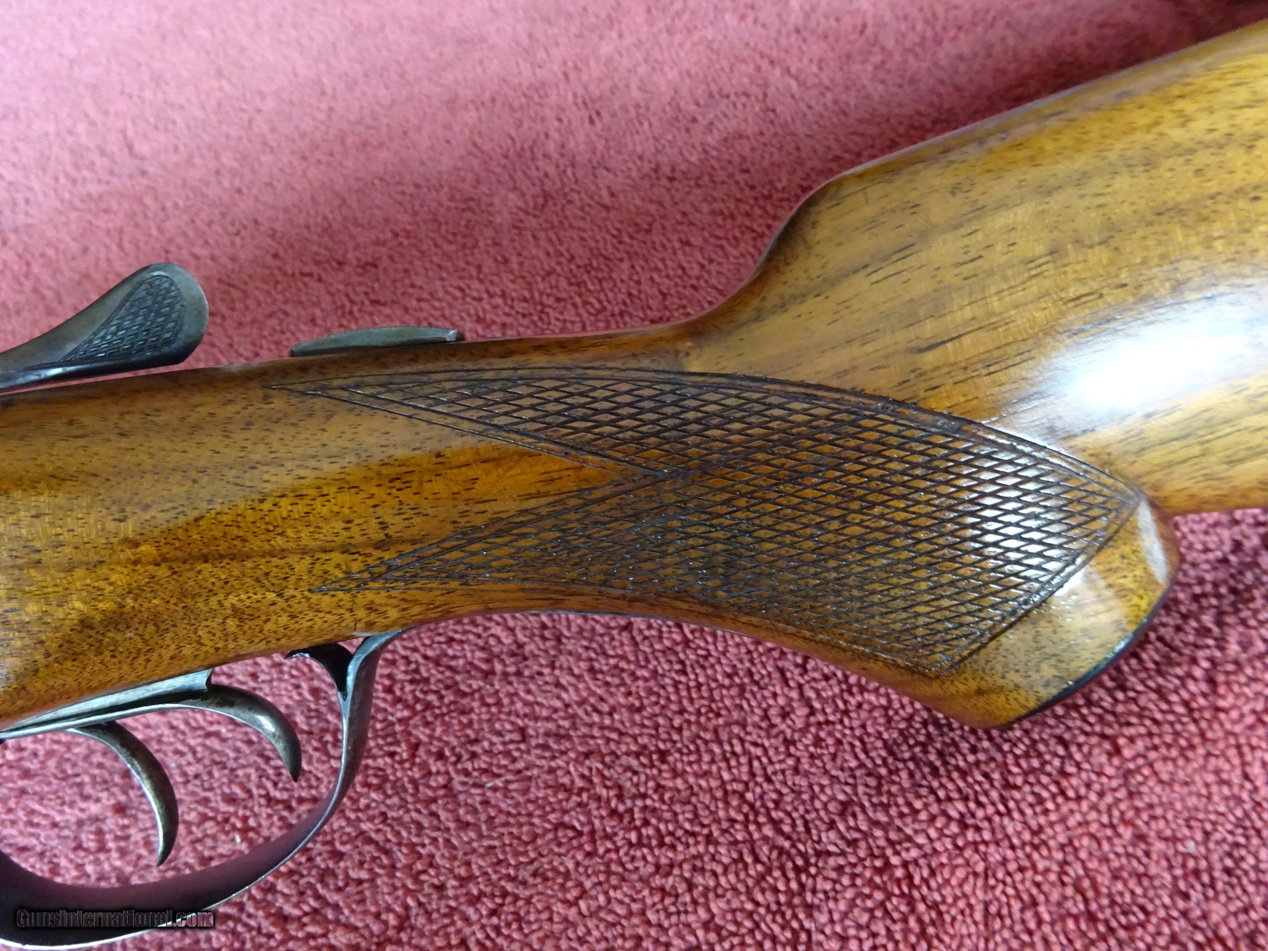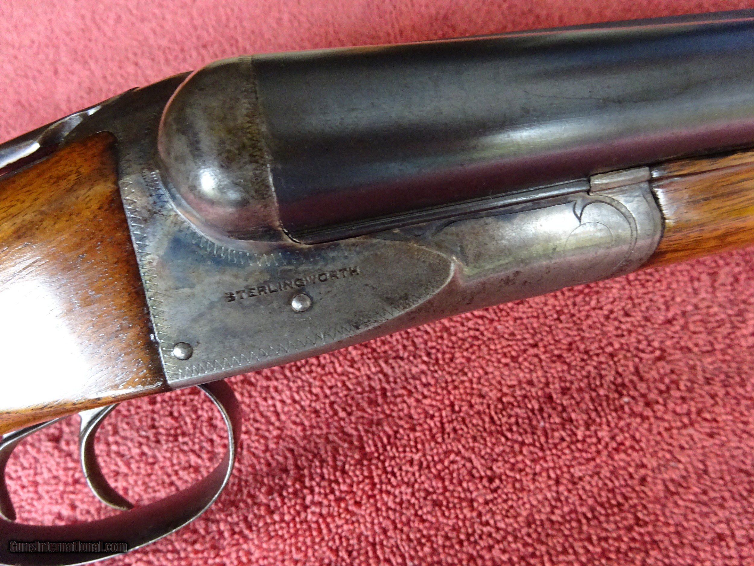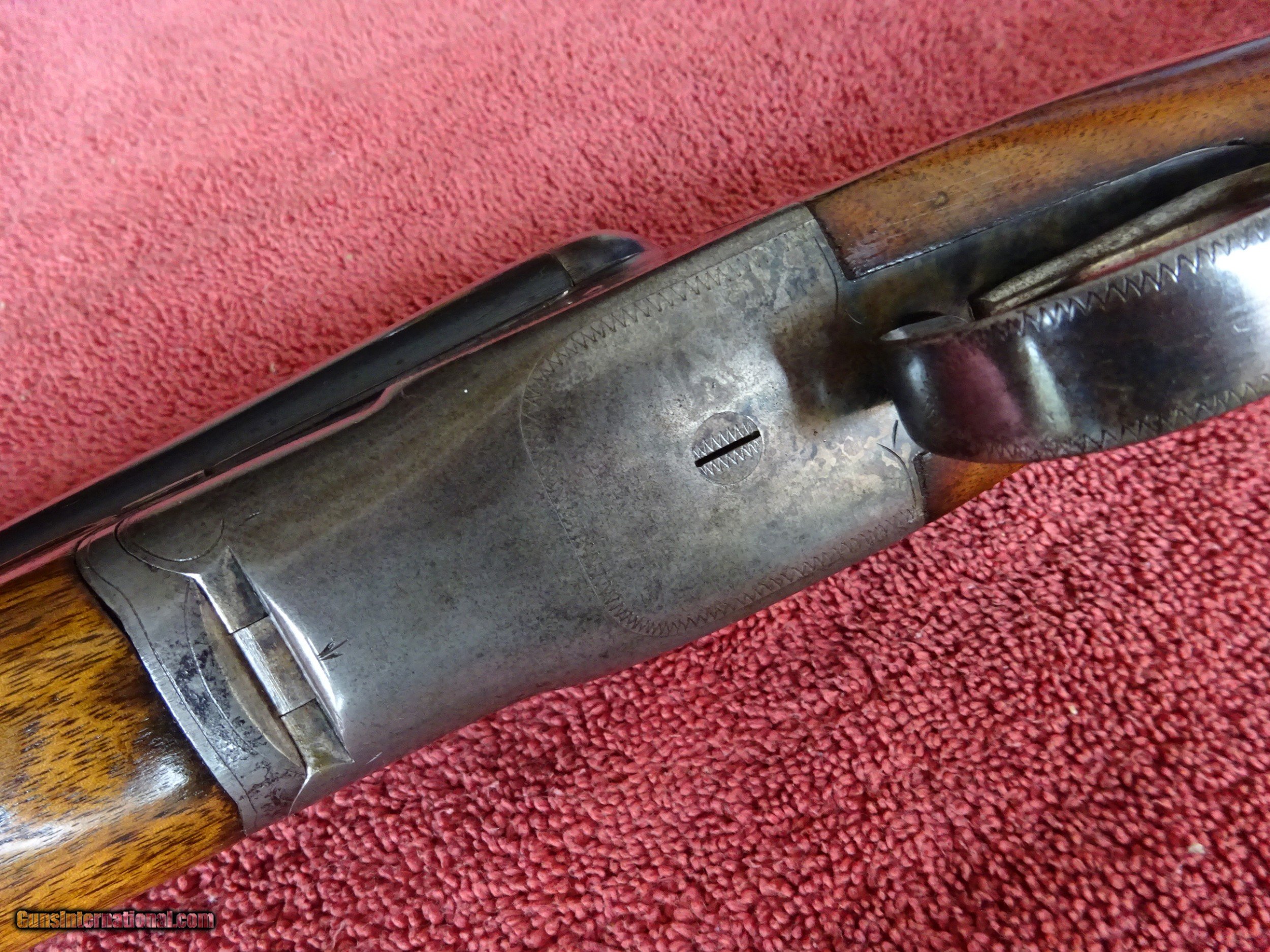Description: A H FOX, PHIL., STERLINGWORTH 12 GAUGE. 26" STERLINGWORTH FLUID COMPRESSED STEEL NUMBER 3 WEIGHT BARRELS, IMCYL. AND MODIFIED .005 AND .015, VERY GOOD BLUE, MIRROR BRIGHT BORE, BARRELS RING NICELY, SINGLE SIGHT, AUTOMATIC EJECTORS. GOOD VIVID CASE COLOR, 2 3/4" CHAMBERS, PERFECT UNTURNED SCREWS, TIGHT ON FACE. PISTOL GRIP STOCK, SPLINTER FOREARM, VERY GOOD WOOD AND CHECKERING, 1 5/8" X 3" X 14 1/8, 6 3/4 POUNDS. NICE CLOSE COVER UPLAND GAME GUN, 100% ORIGINAL CONDITION. MADE IN 1928. STERLINGWORTHS WITH AUTOMATIC EJECTORS ARE SCARCE. $1375.00 + $50.00 Insured shipping to an FFL address. See all Pats gun listings on this site! We also have hundreds of pieces of ORIGINAL gun company advertising & memorabilia available for sale on our site SPORTINGCOLLECTIBLES. We have no reprints or reproductions. Email for more information. SOLD Curio/Relic: Yes |