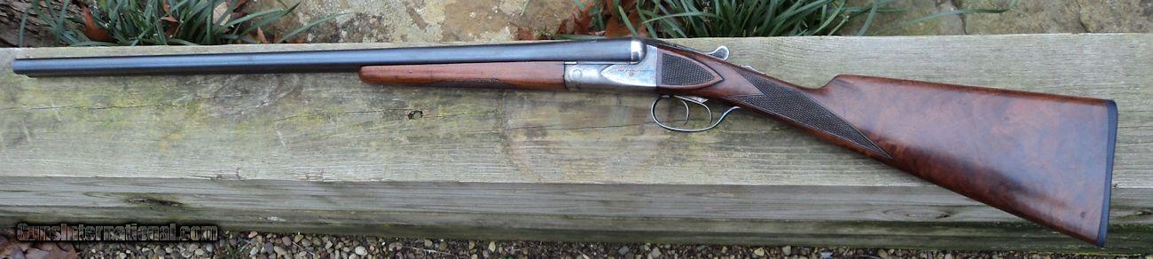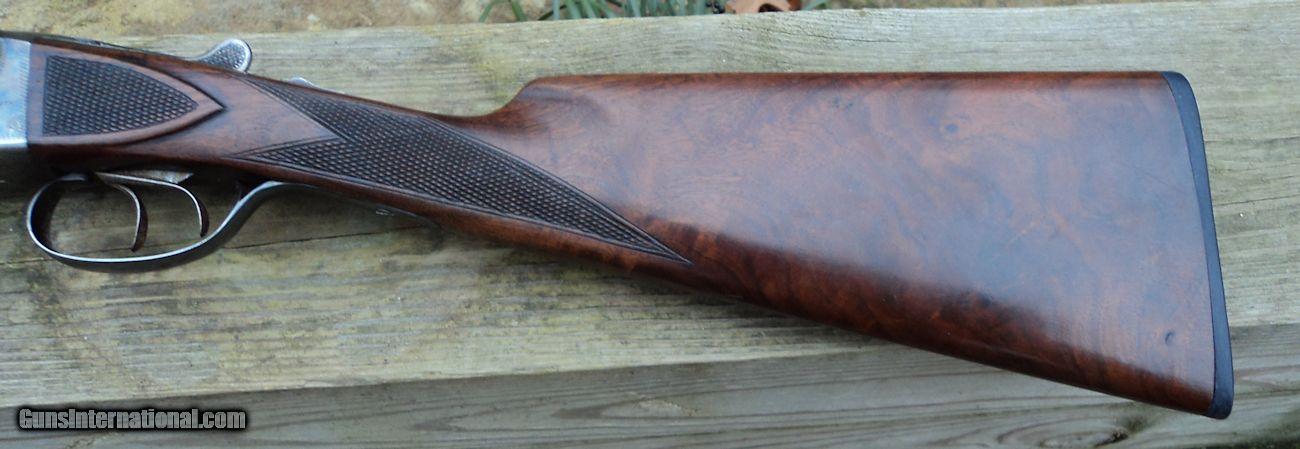 Description: Especially hard to find A H Fox Sterlingworth Skeet & Upland 20 gauge (serial #270421) made in 1939 (according to factory letter) with 26" double beaded barrels choked cylinder & improved cylinder. One of only thirty four 20 gauge Skeet & Upland known. What a great close cover woodcock & grouse gun this Fox double would make! Barrel lock up is tight to the receiver with the forearm off and the top lever is a little to the right. It has a good amount of original case color remaining on the receiver bottom, top and sides. It has good bluing with some thinning here & there and the wood is not bad with some light handling marks. The bores are shiney with no pitting and this little Fox has 2 3/4" chambers. LOP measures 14 1/8" with a DAH at 2 1/2". It weighs in at 5 lb 14 oz. $70 SH&I to most of the lower 48. Eight far west states at $80 SH&I. Postal money orders for payment. No warranty stated or implied by the seller. Consignment gun-no return. Lay-a-way is available! Call Tom at 724-667-2345 SOLD Curio/Relic: Yes Manufacturer: A H Fox Model: Sterlingworth Skeet & Upland Serial Number: 270421 Metal Condition: good Wood Condition: good Barrel Type: SxS Action: boxlock Triggers: double Gauge Info: 20 Stock Heel: 2 1/2 Fore End: snap on LOP: 14 1/8 Rib: solid raised Weight: 5 lb 14 oz Sights: double bead Manufacture Date: 1939 Choke Left: improved cylinder Choke Right: cylinder Extras: rare |